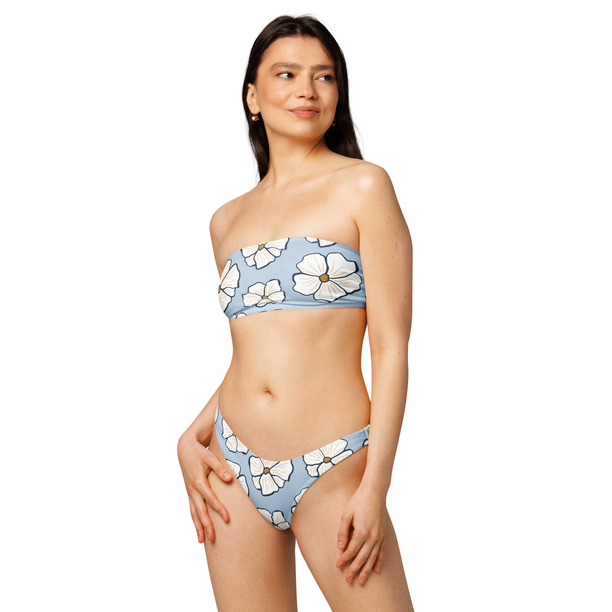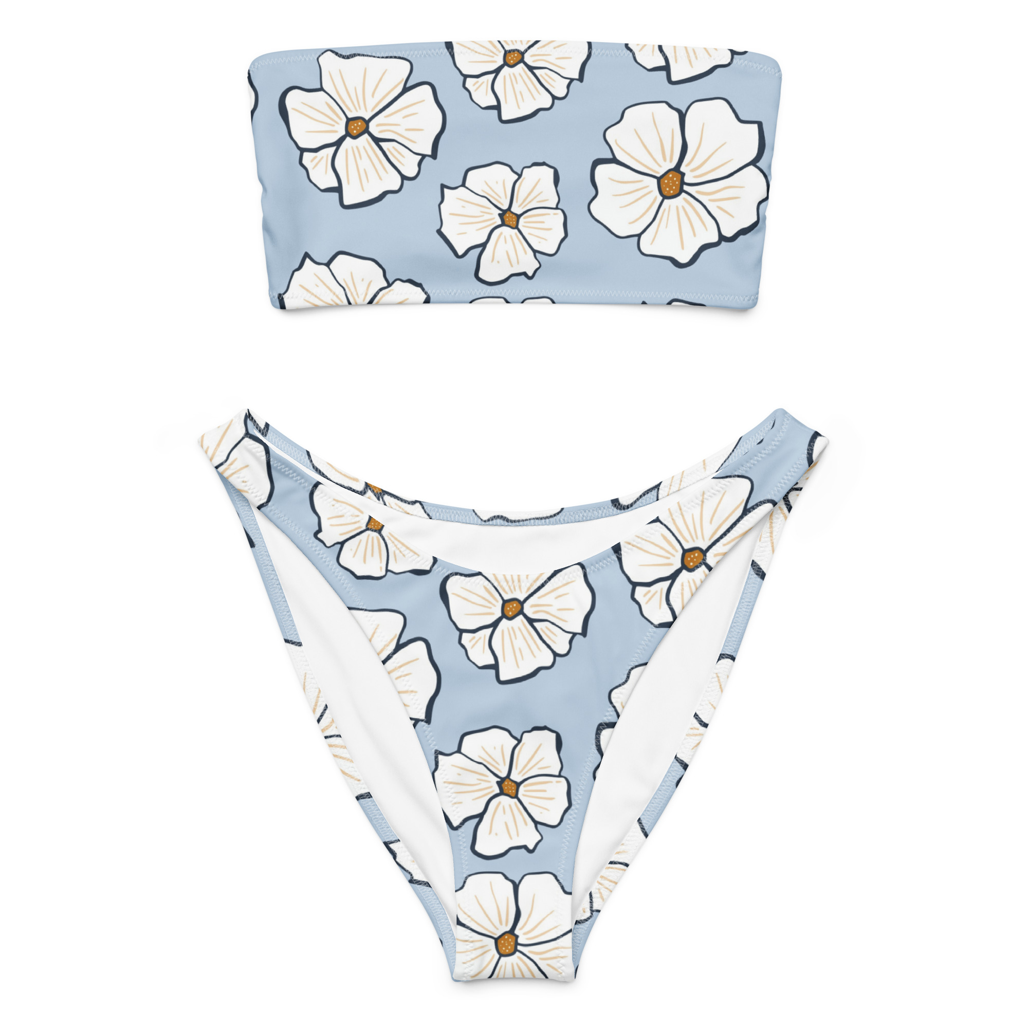 Bikini bandeau reciclado – BLUE – Flowers