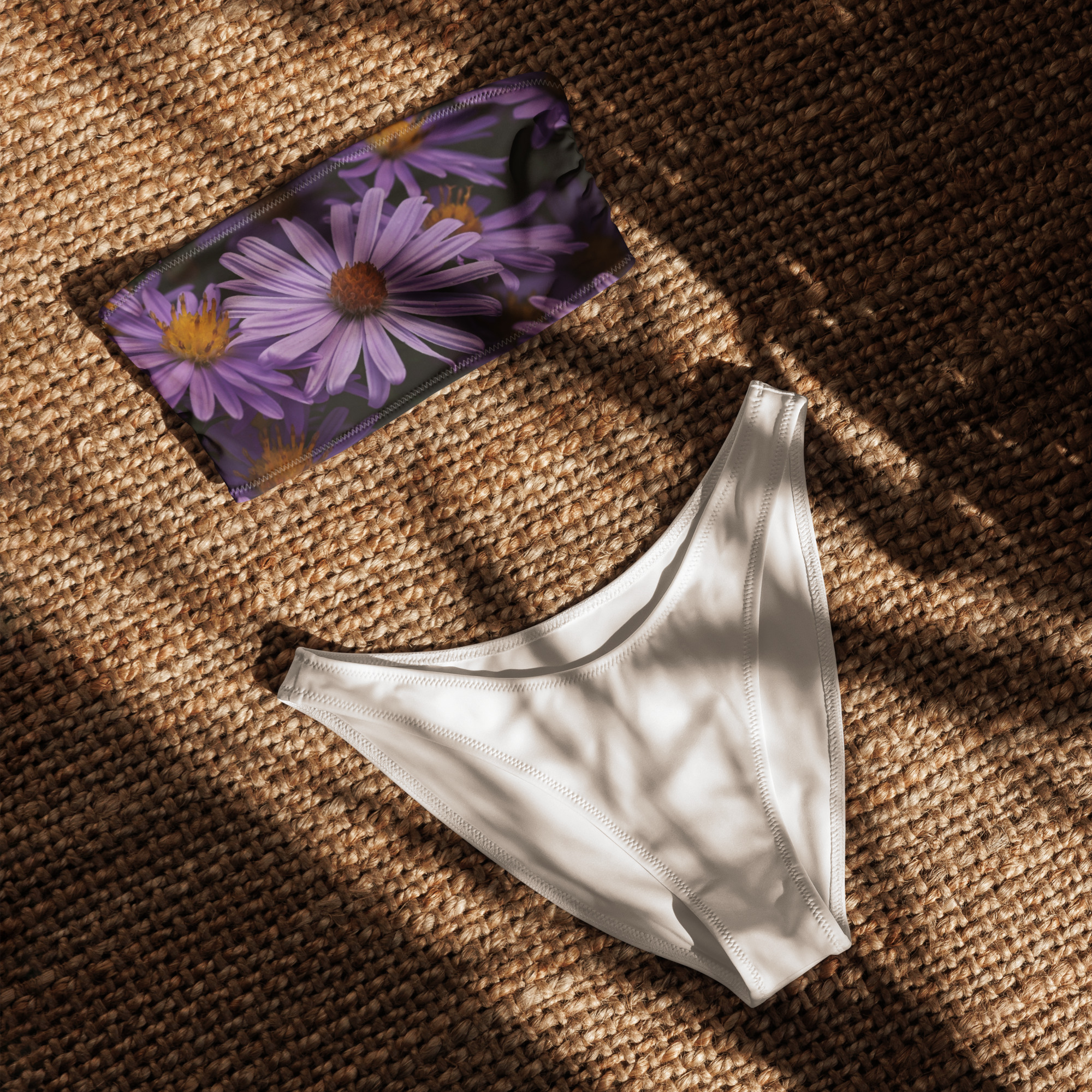 Bikini bandeau reciclado – flowers purple