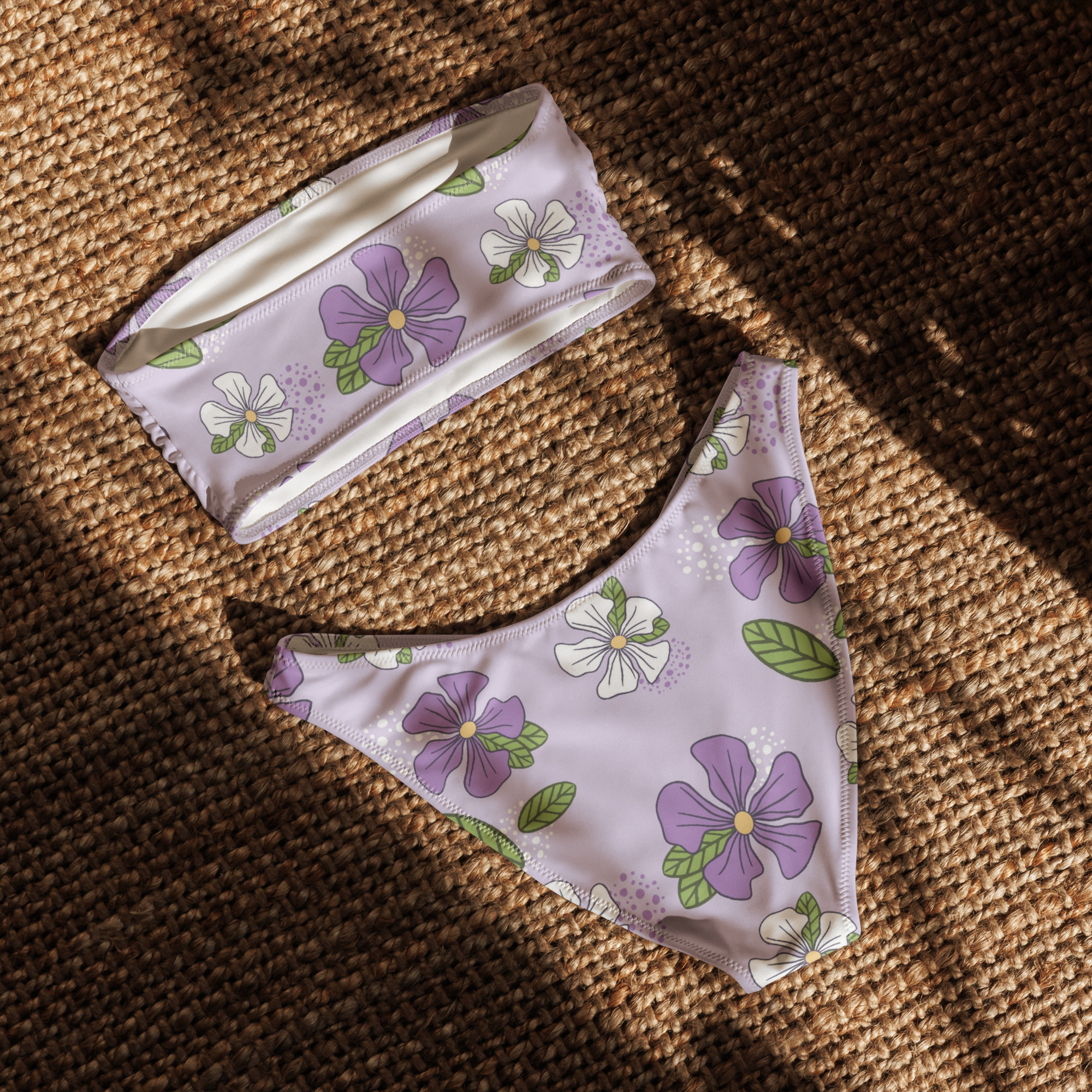 Bikini bandeau reciclado – purple flower