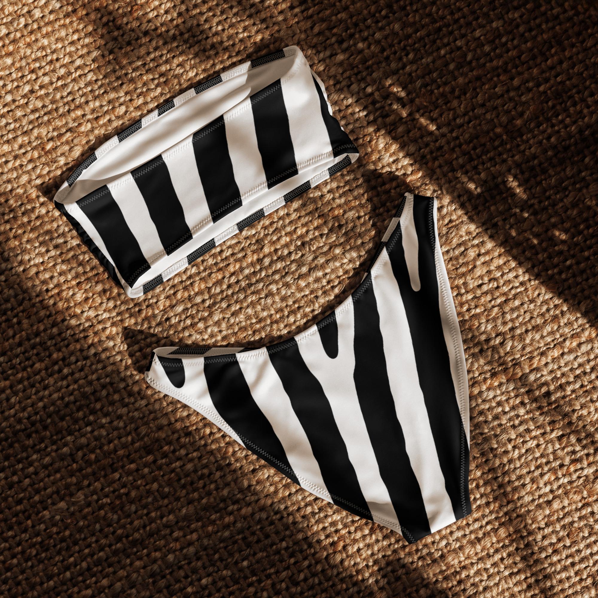Liberta o teu lado selvagem com este bikini bandeau de padrão zebra, feito com materiais reciclados e pensado para quem procura estilo, conforto e consciência ambiental. Ideal para dias de praia, festas à beira da piscina ou escapadelas tropicais.