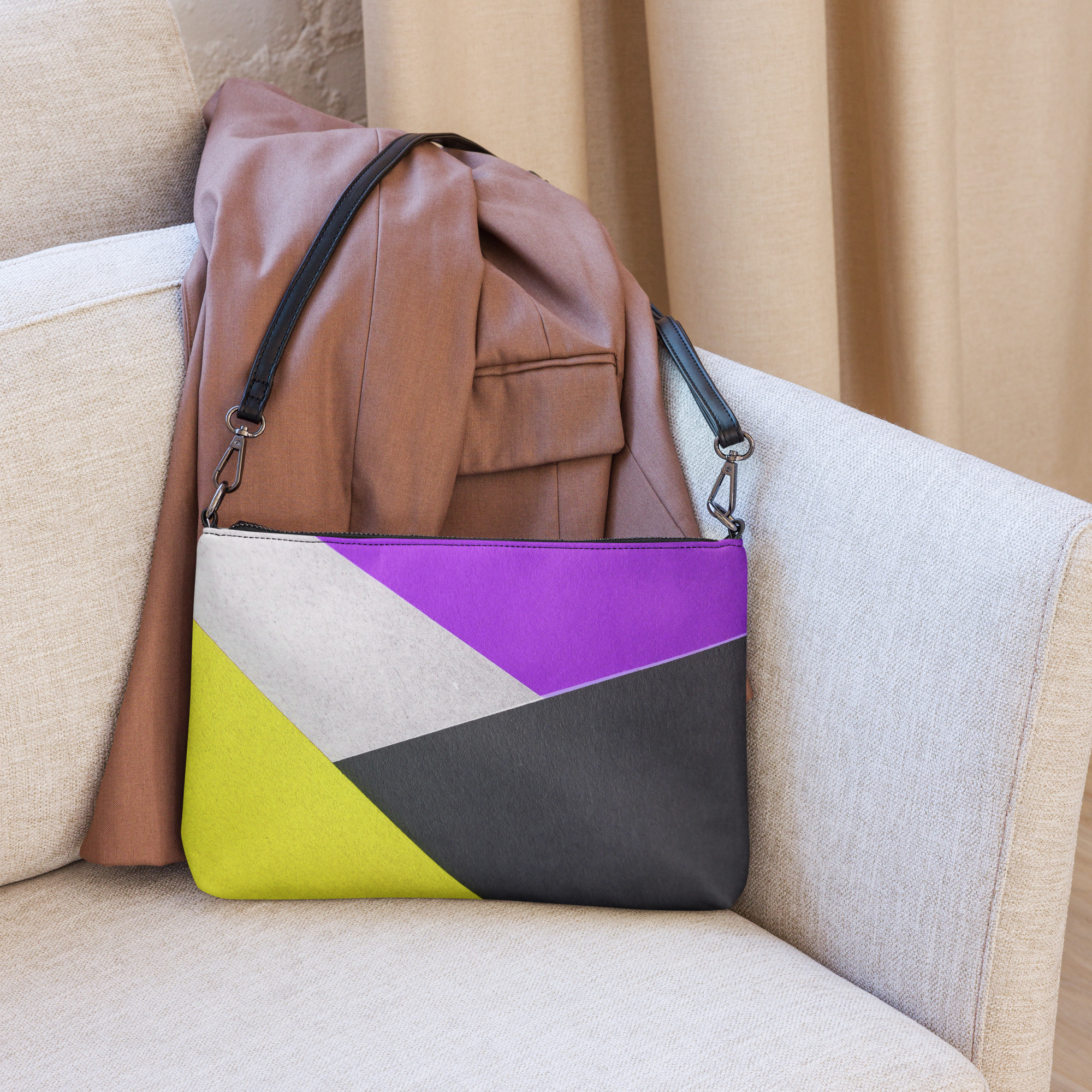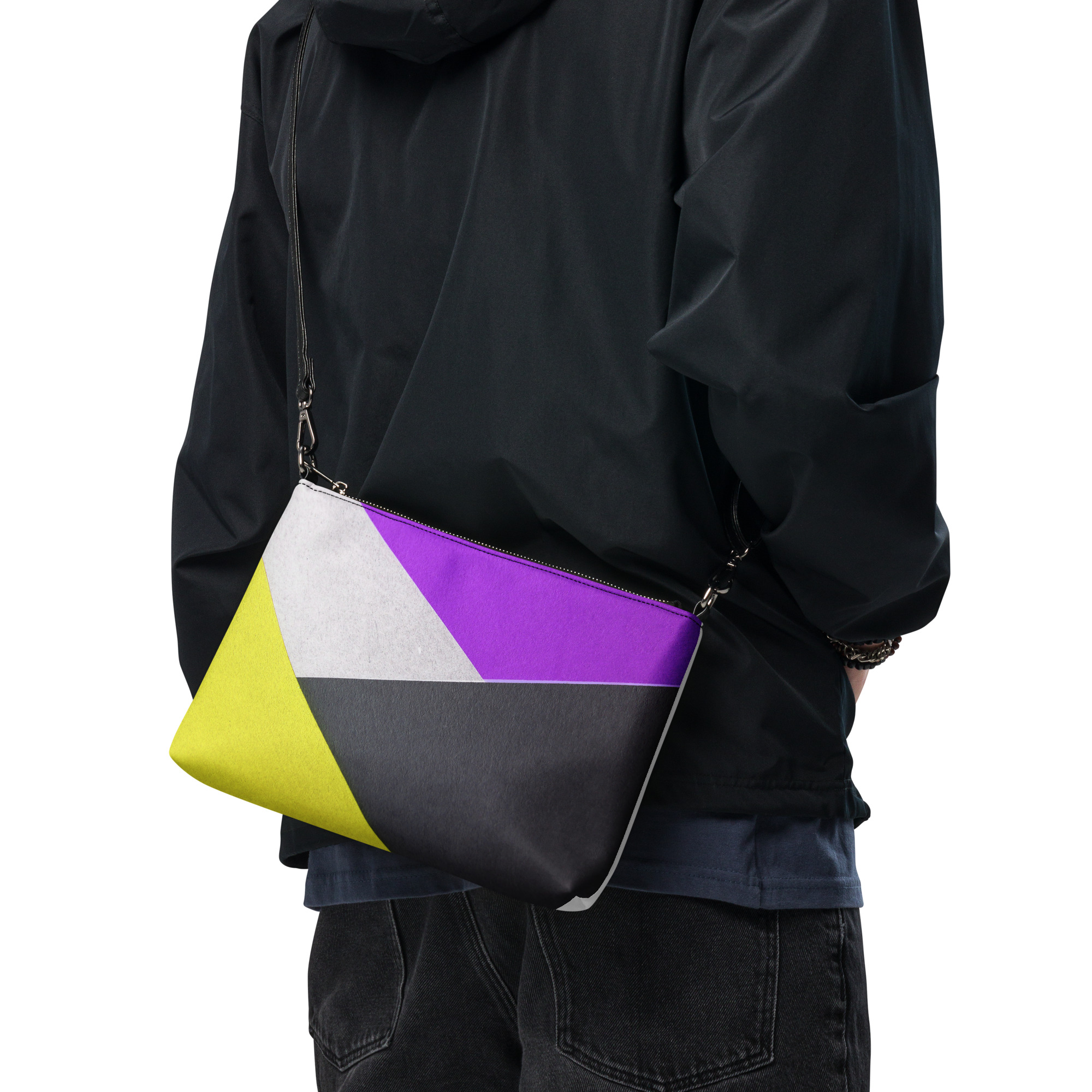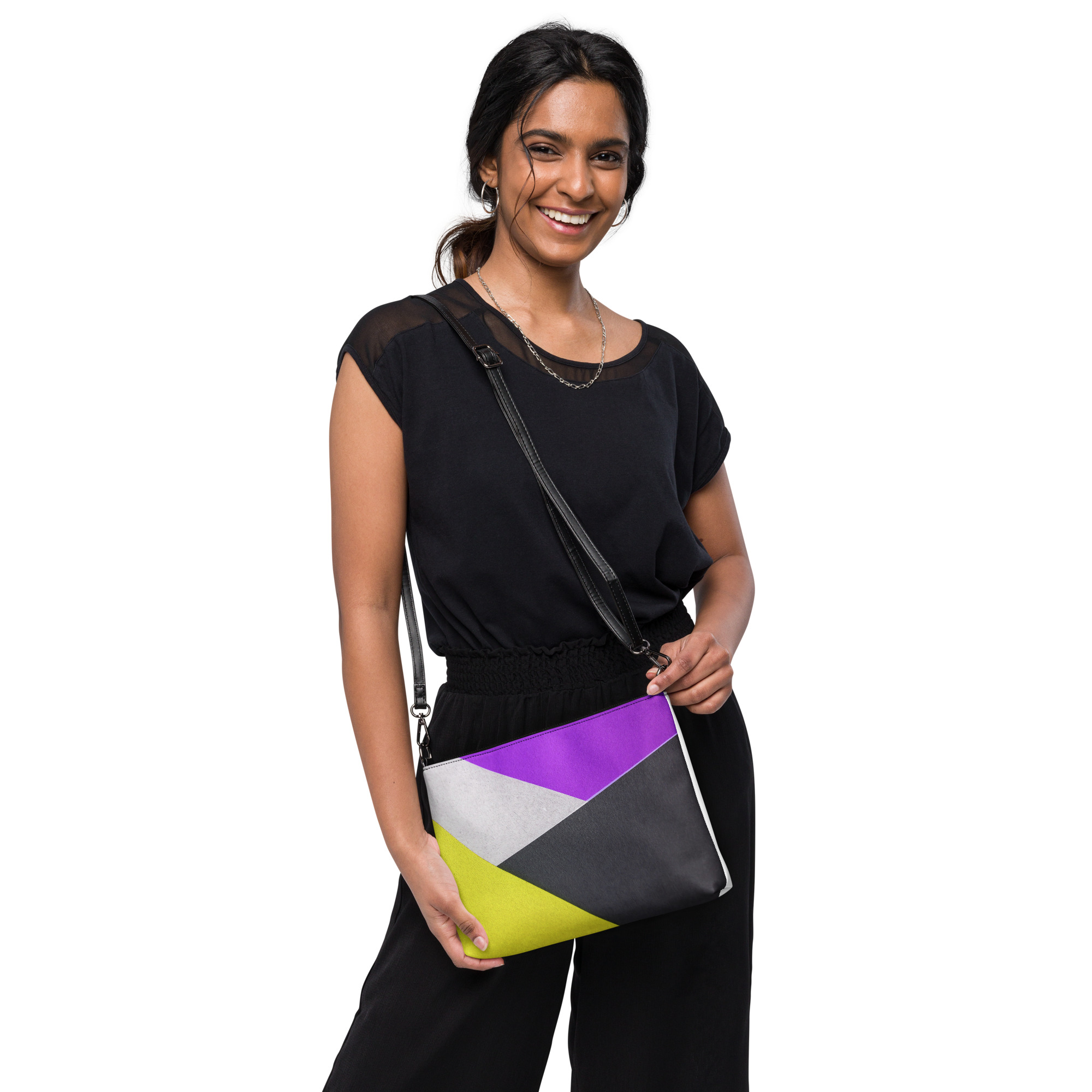 Mantenha seu estilo no ponto e suas mãos livres com nossa bolsa transversal versátil. Ela é feita de couro sintético premium e metais cinza escuro. Graças ao fechamento com zíper e vários bolsos internos, você pode manter seus itens essenciais seguros e organizados. Transforme esta bolsa transversal com alças removíveis de pulso e ombro para usá-la para looks do dia a noite.