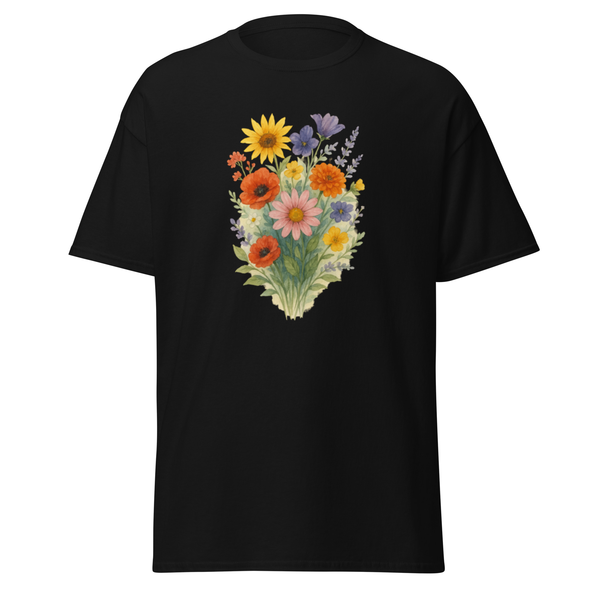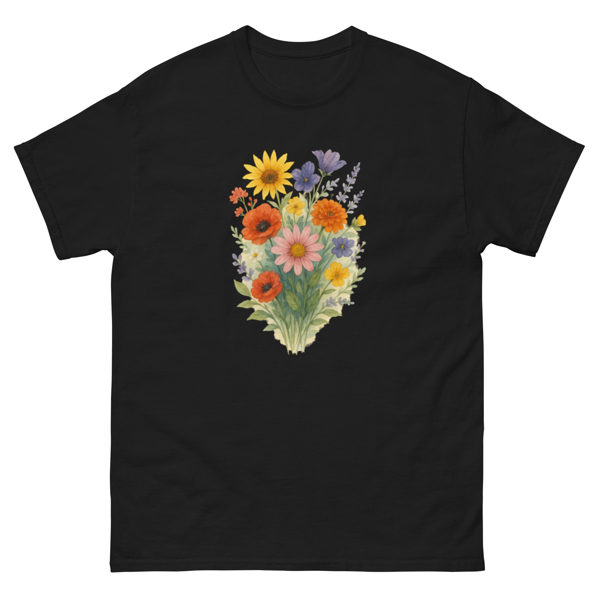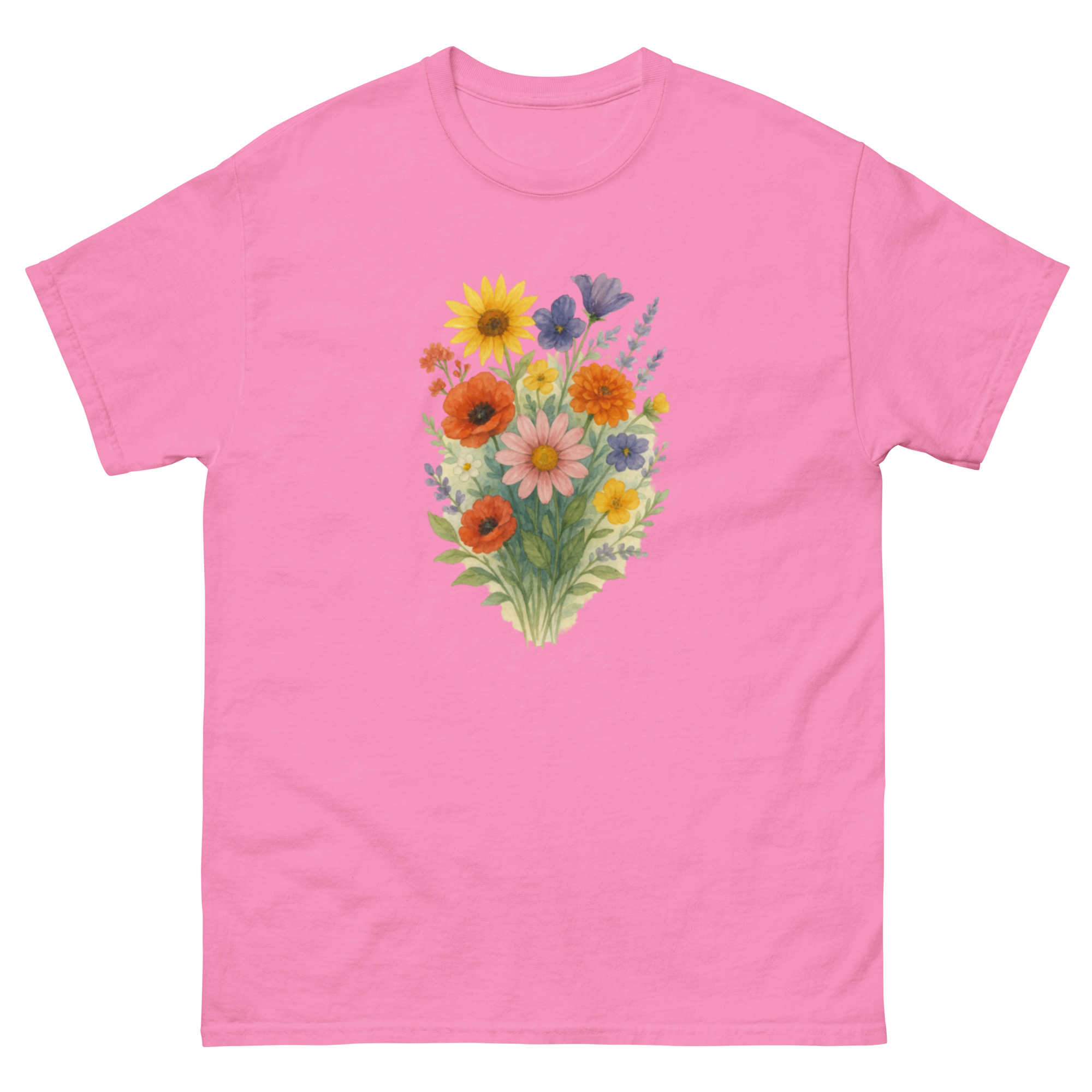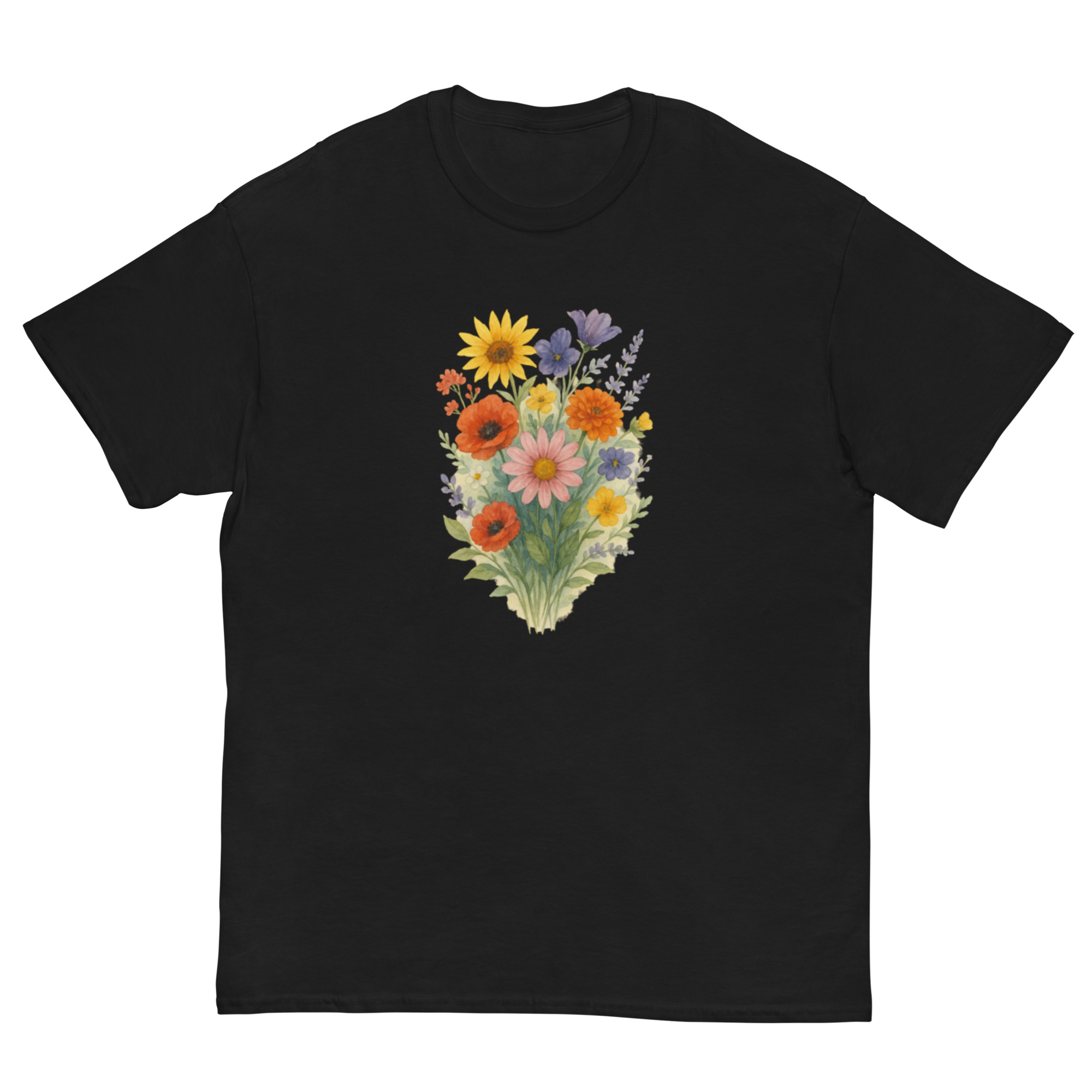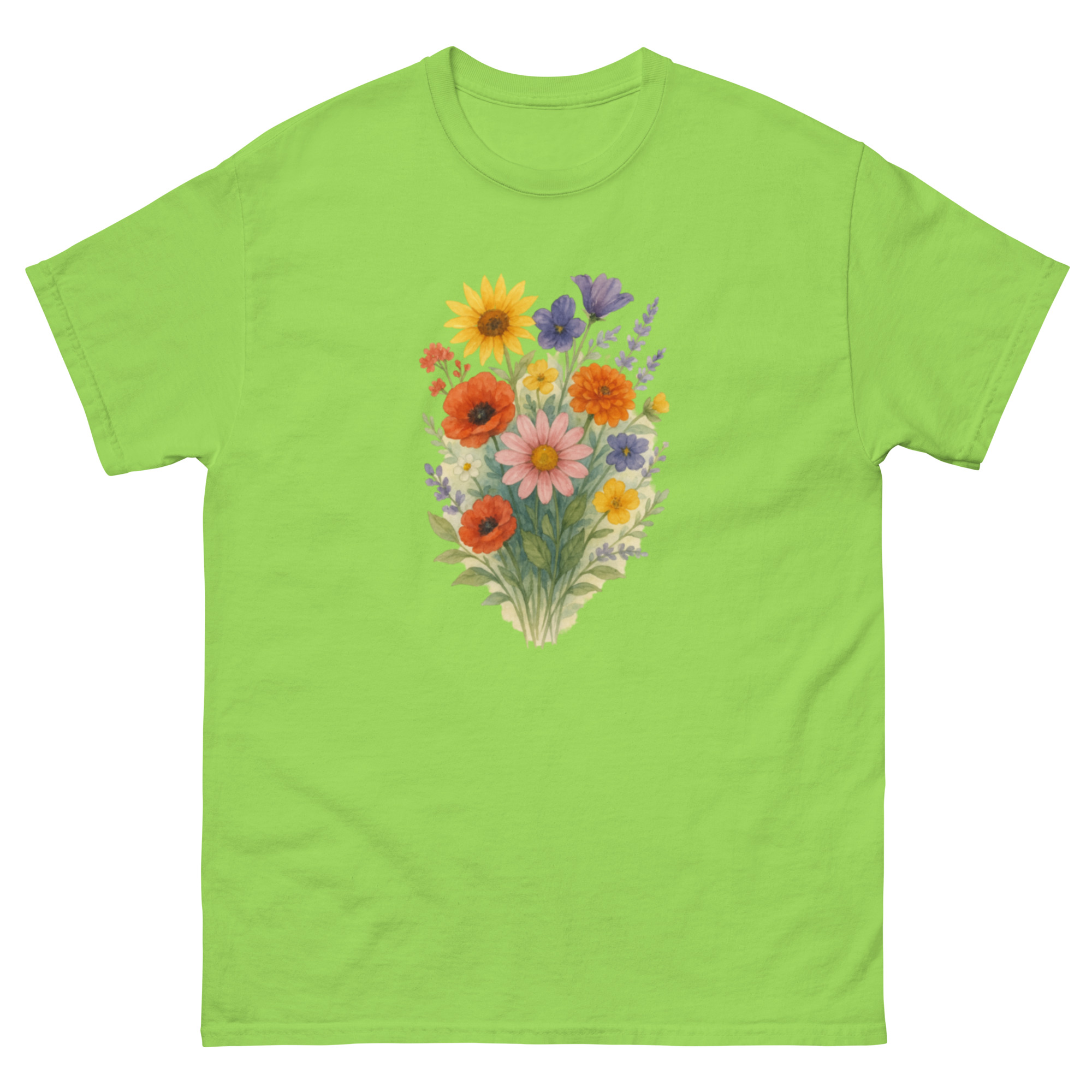 Camiseta Clássica Masculina – flores coloridas
