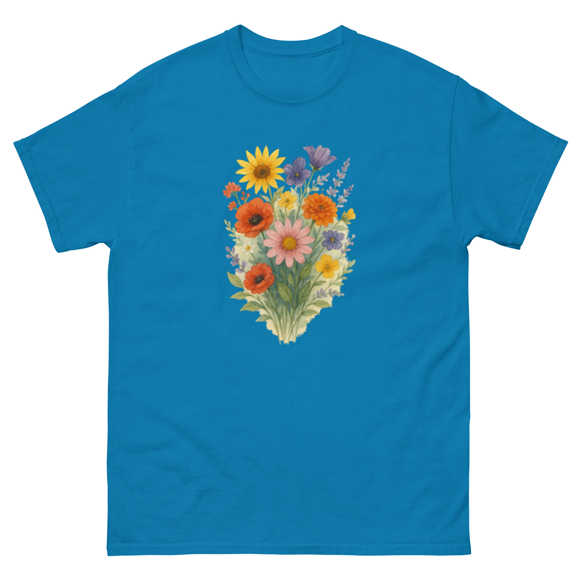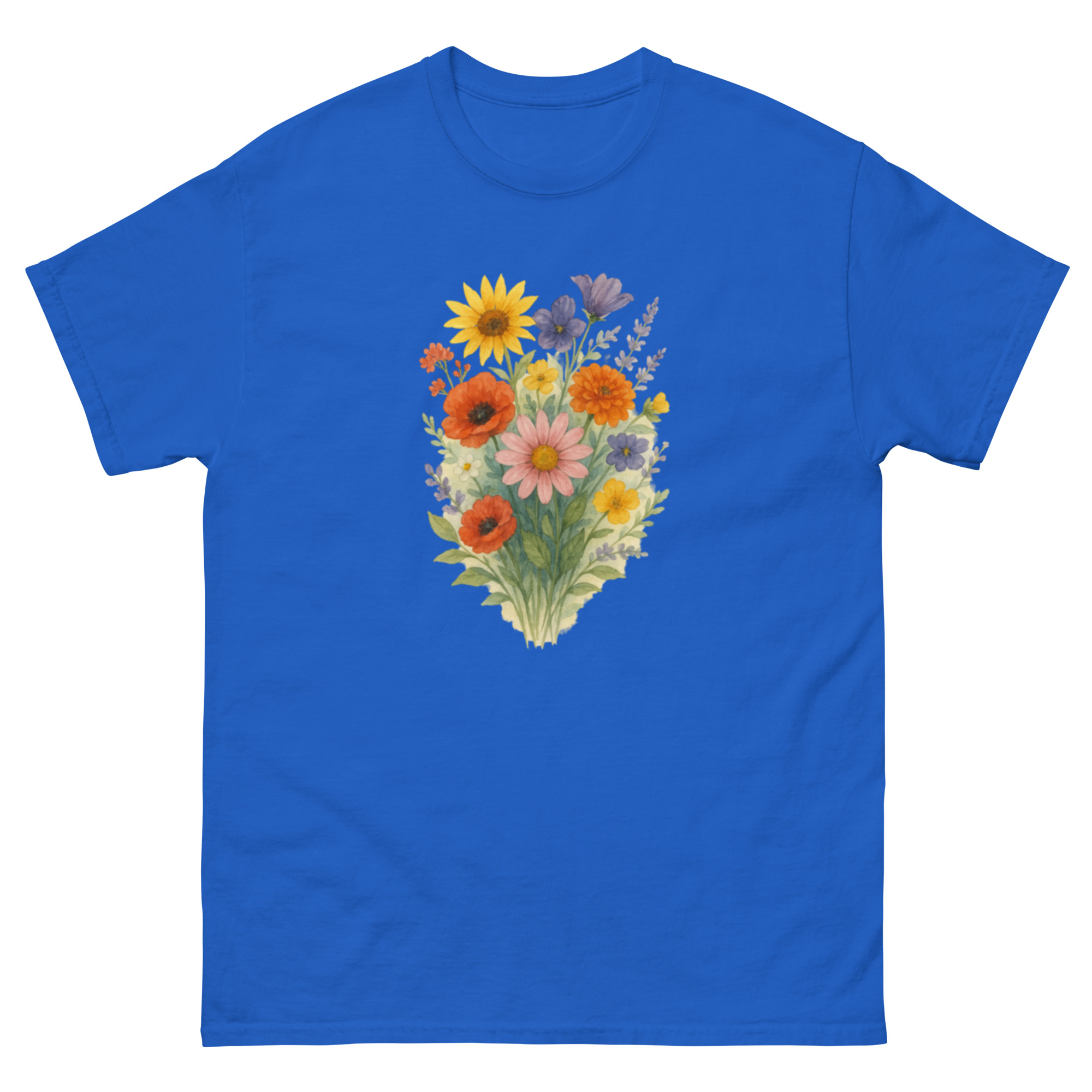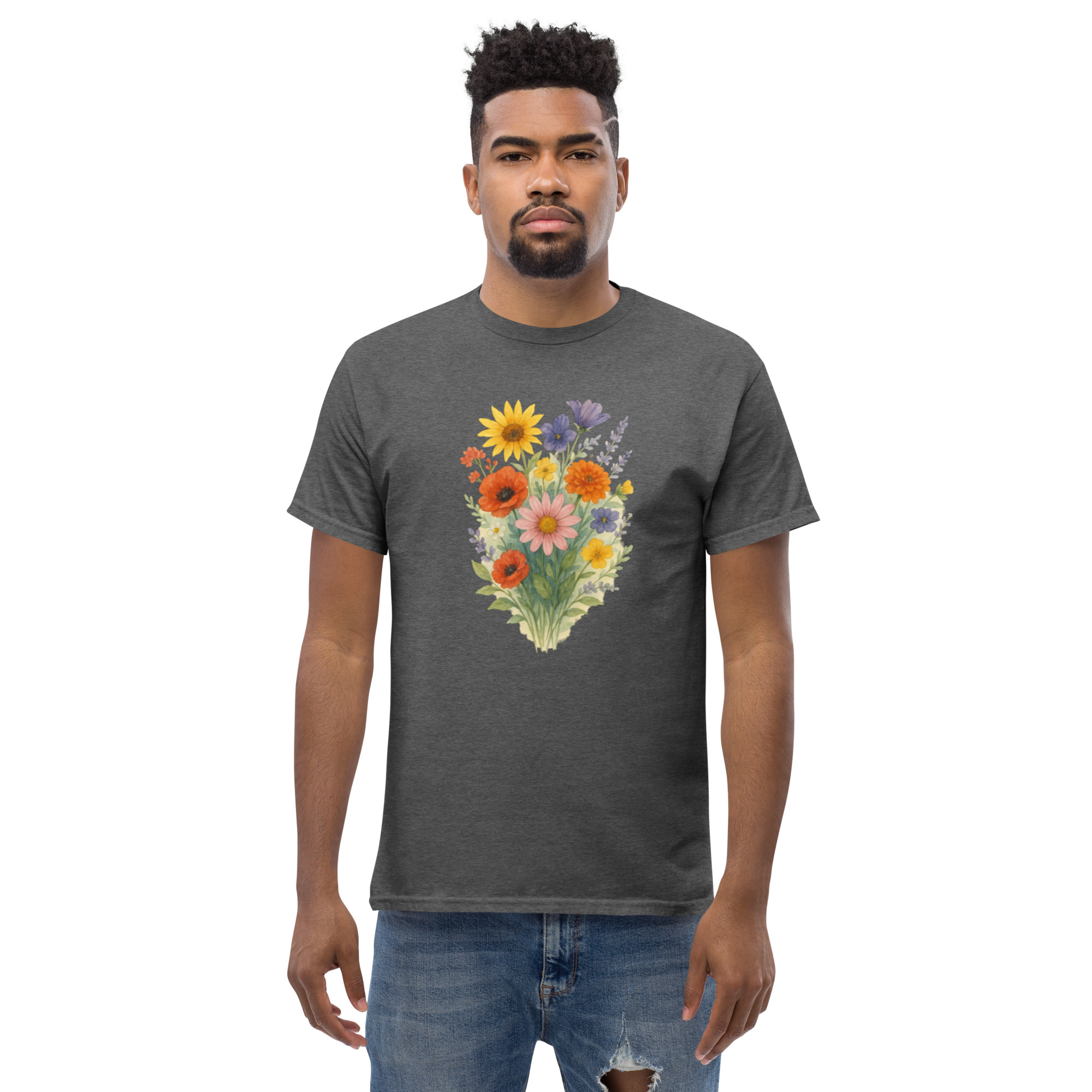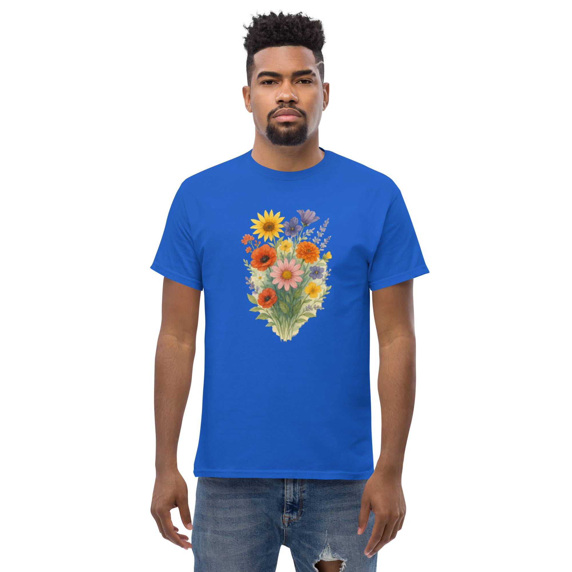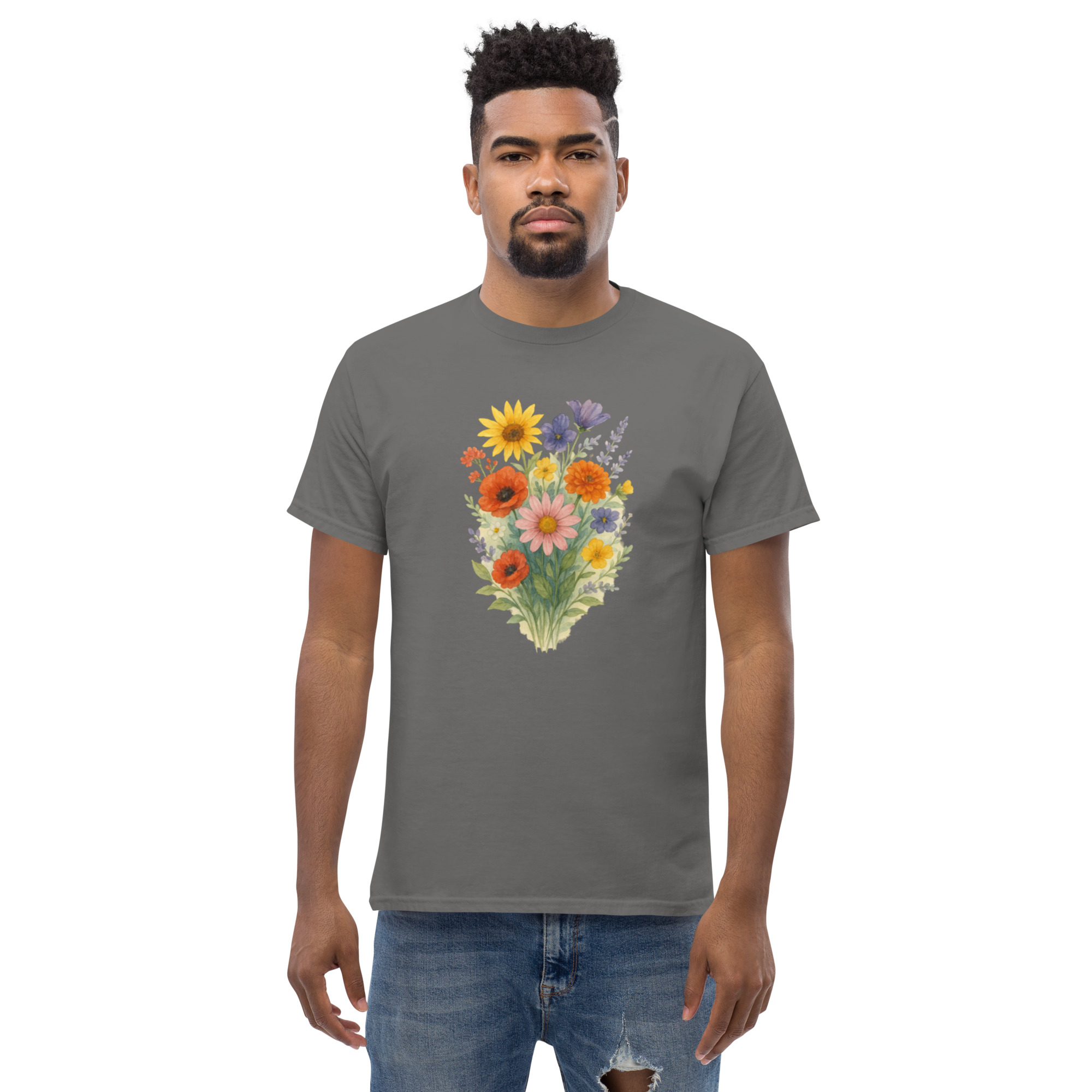 Camiseta Clássica Masculina – flores coloridas