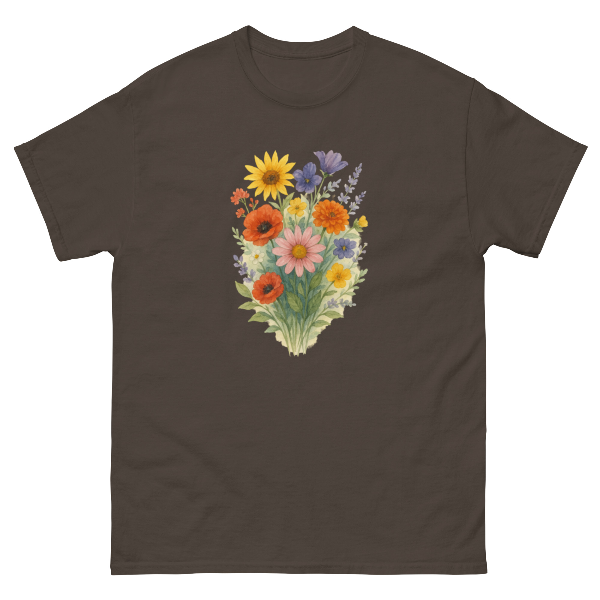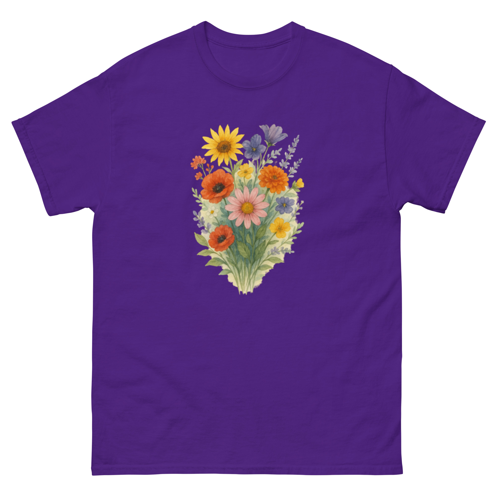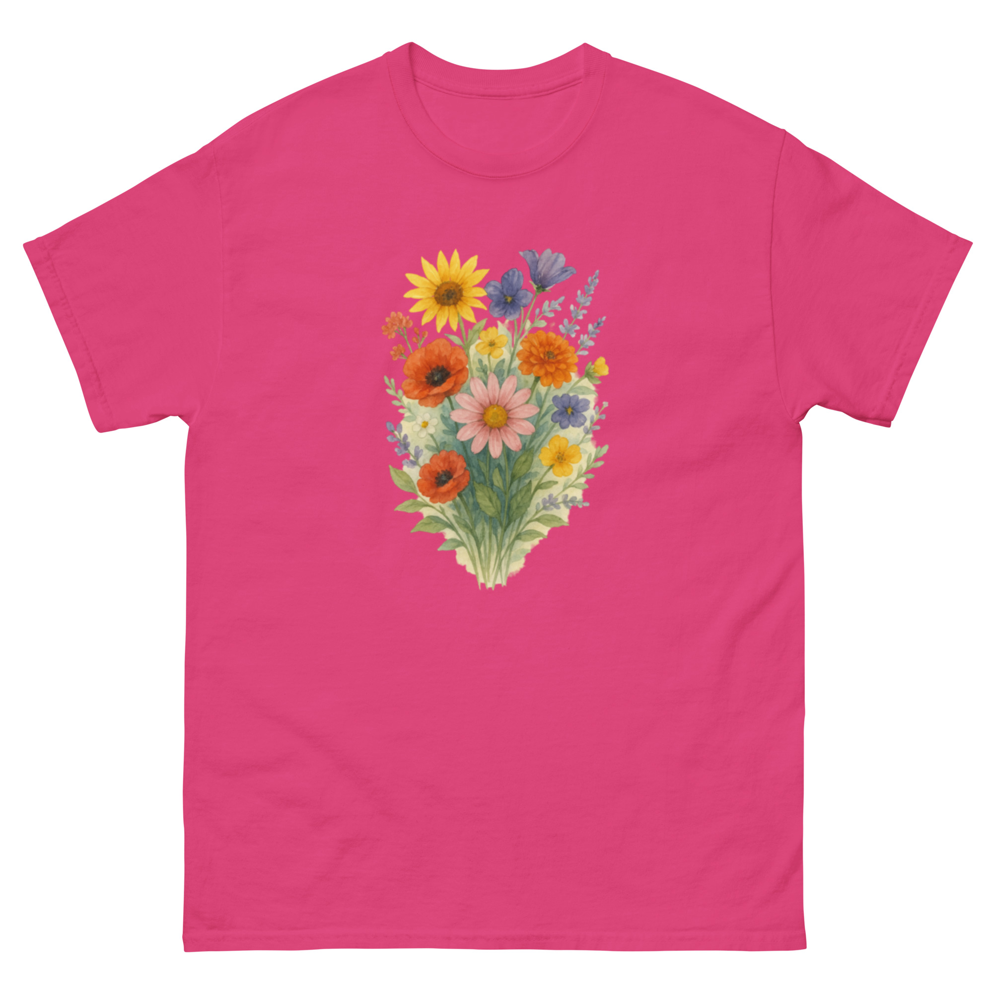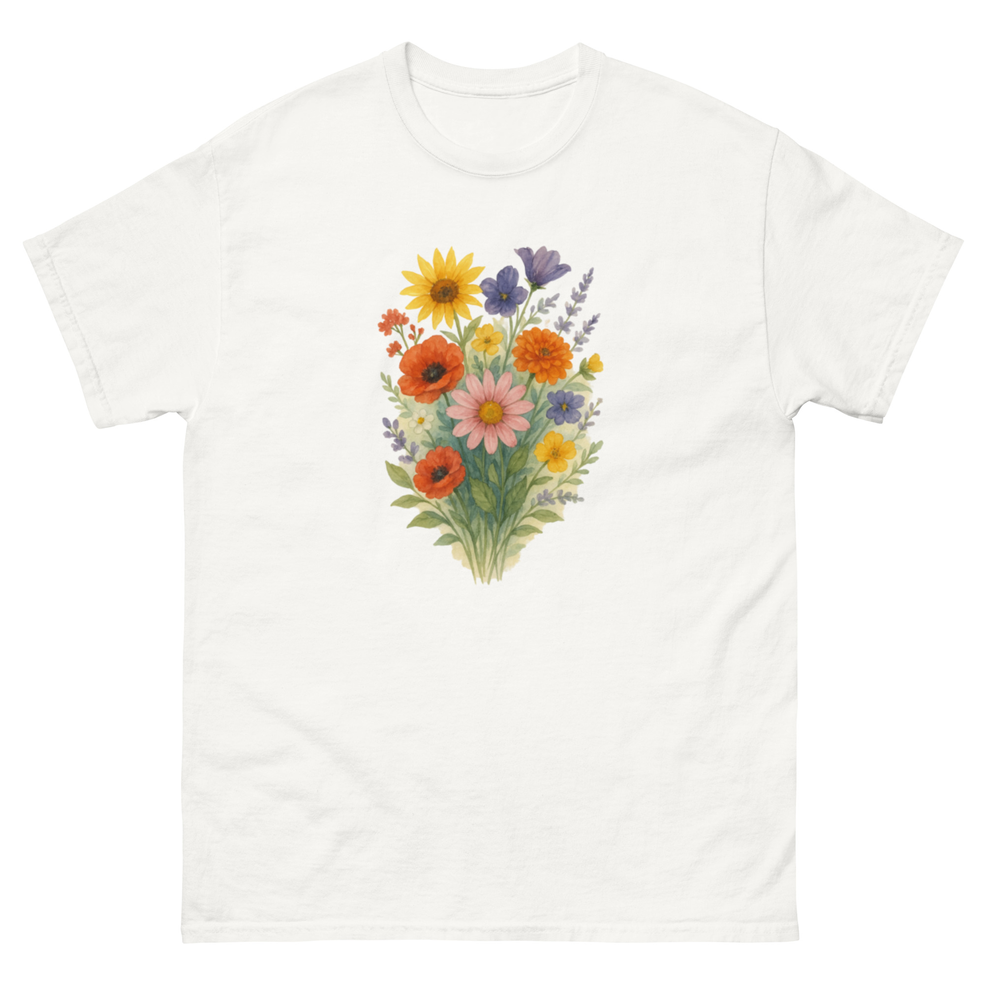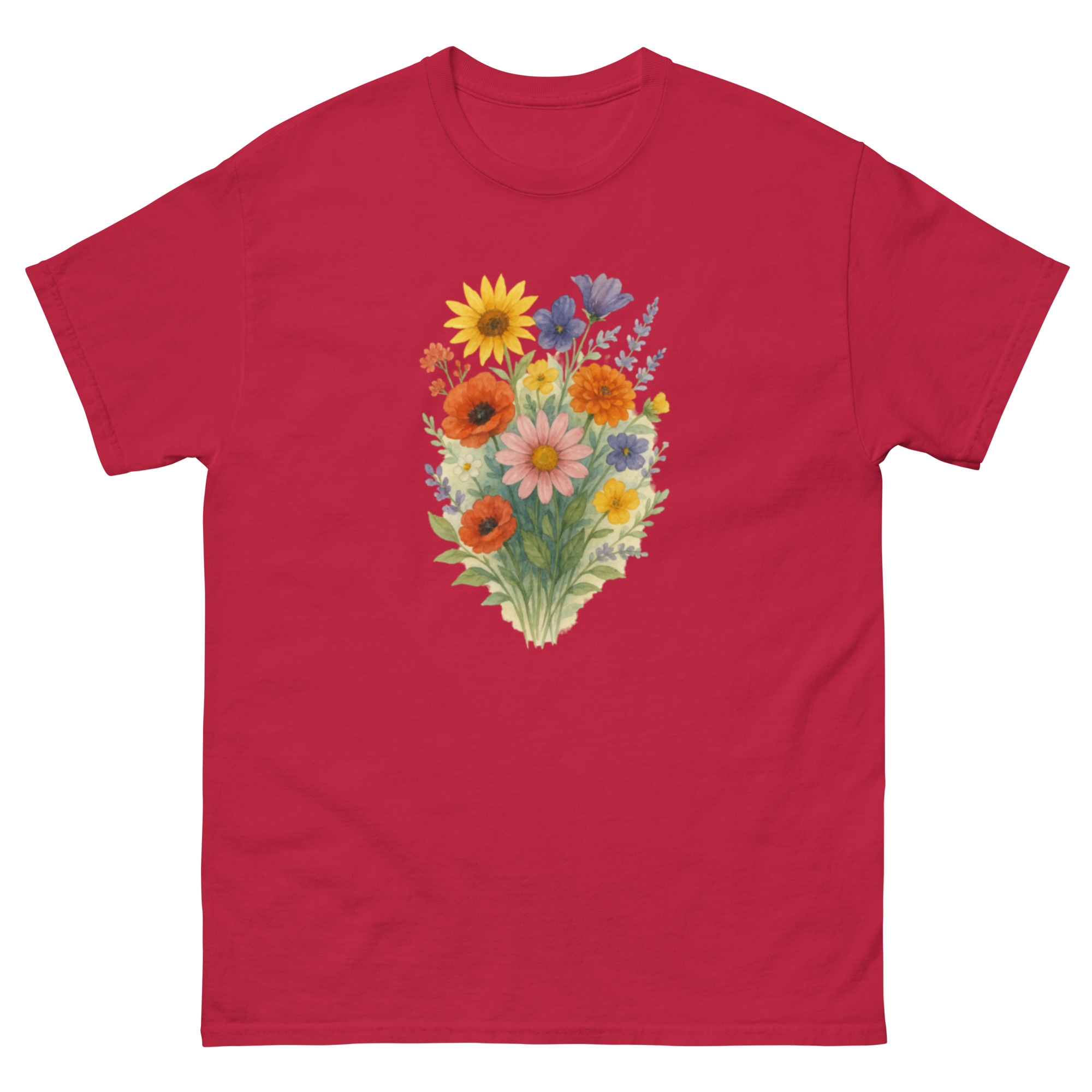 Camiseta Clássica Masculina – flores coloridas