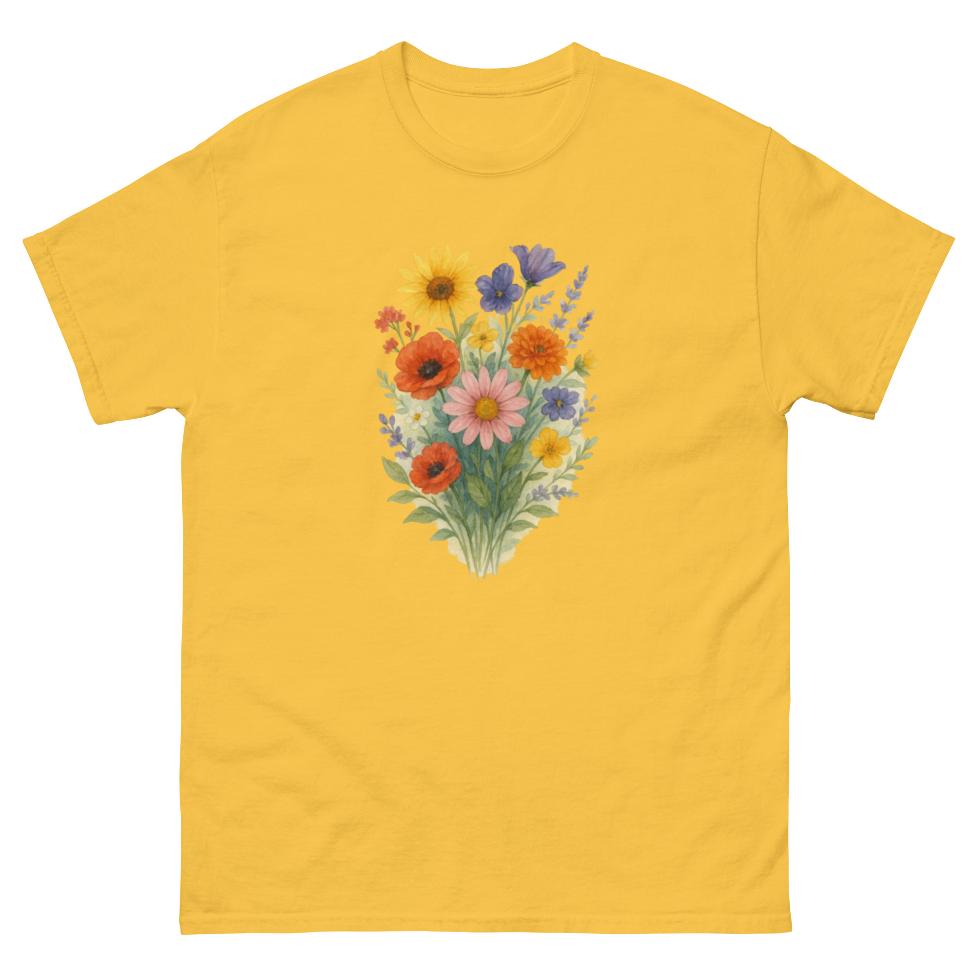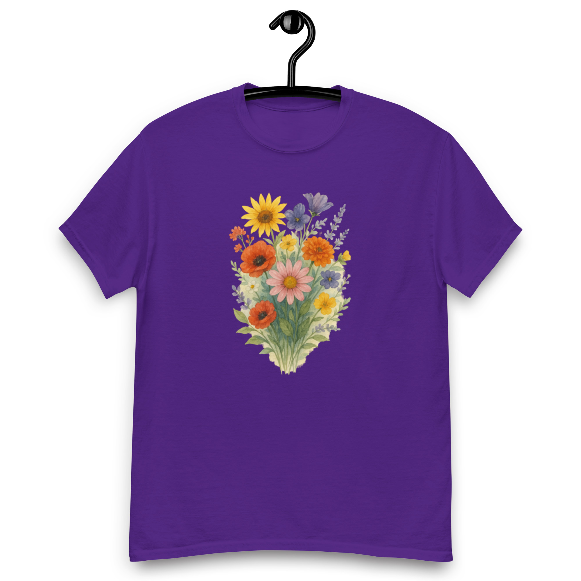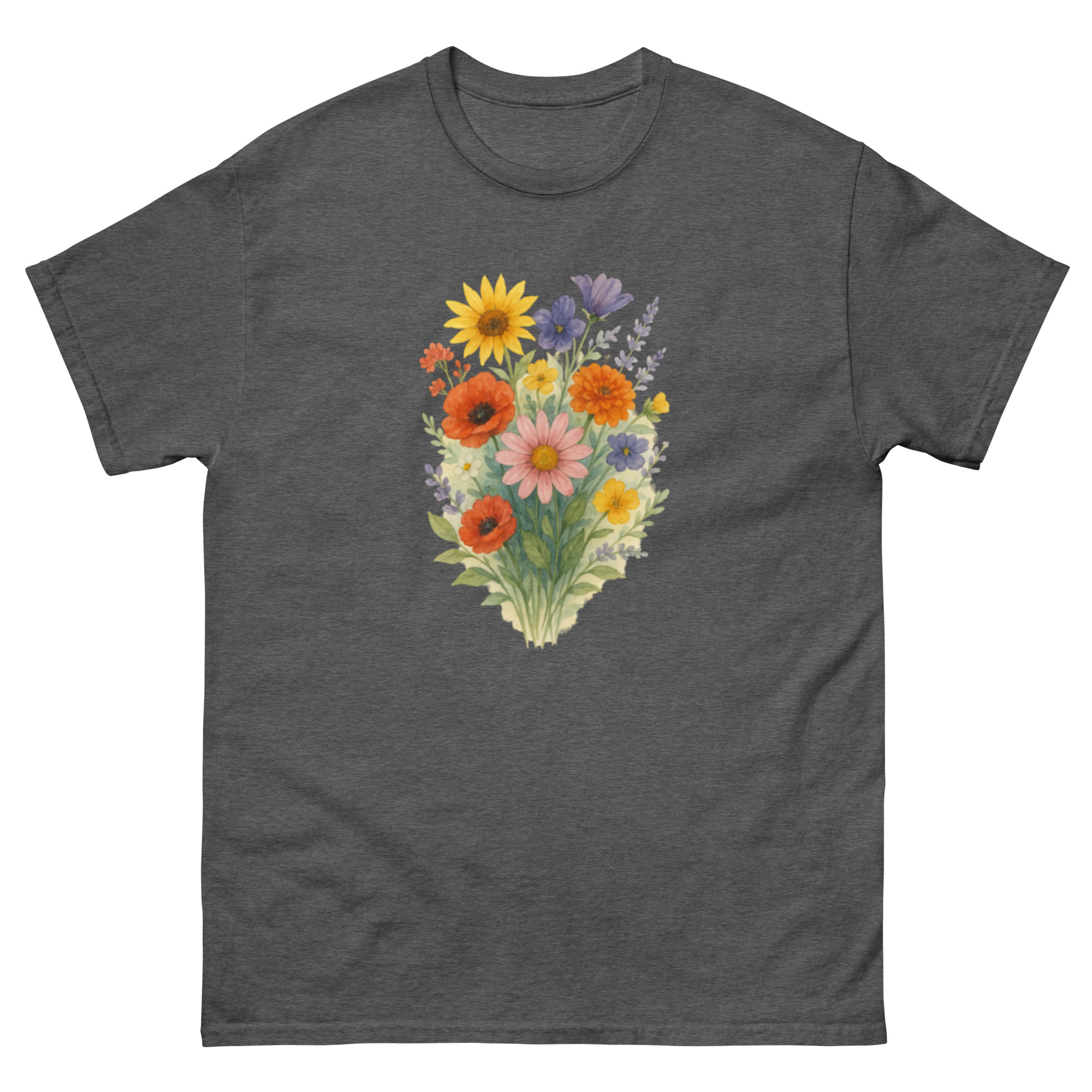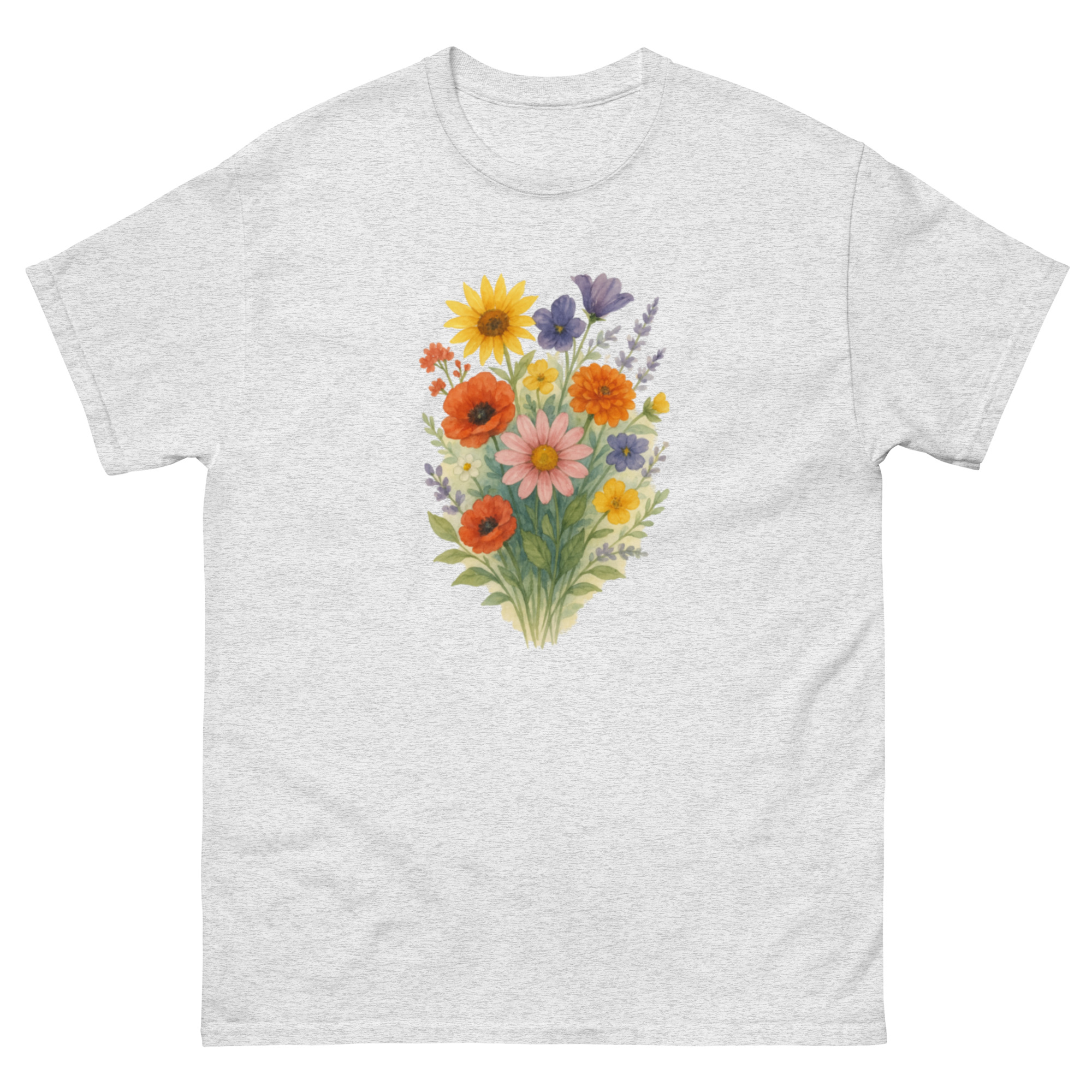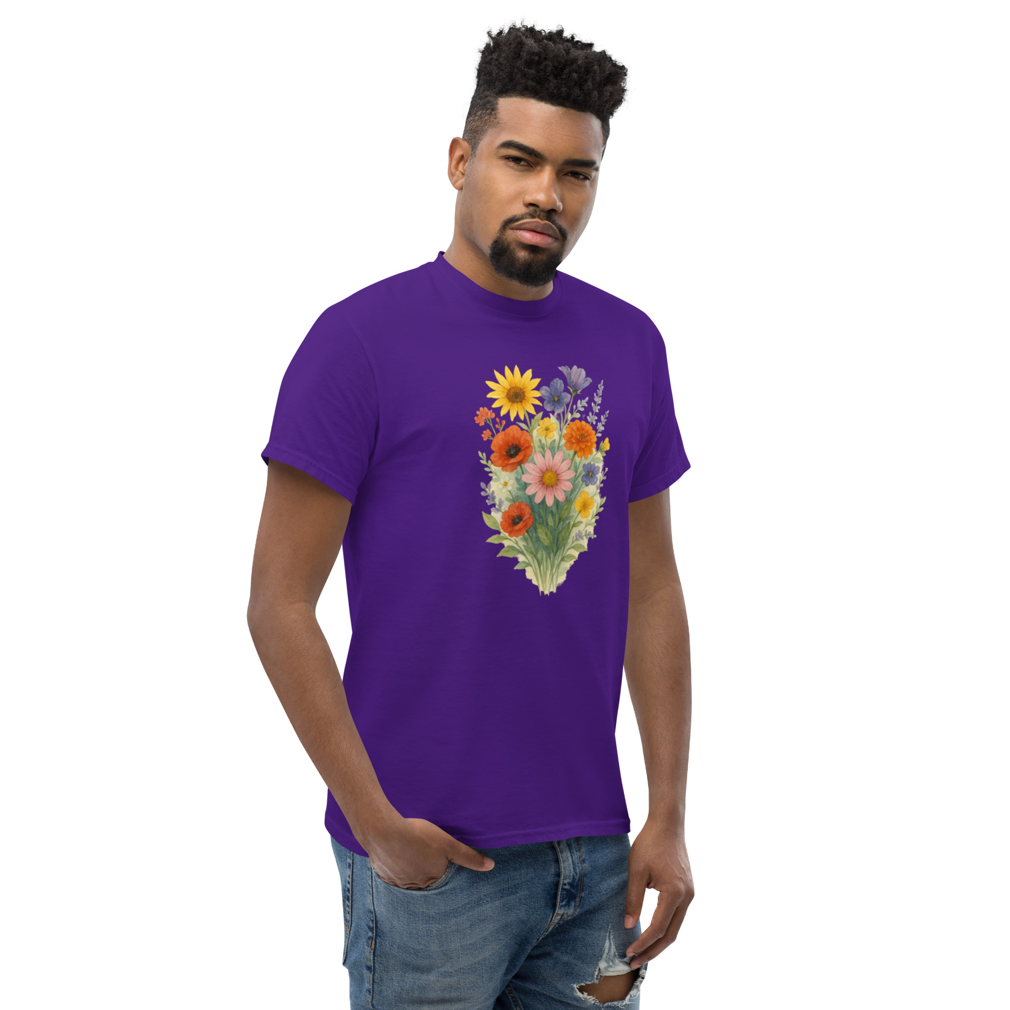 Camiseta Clássica Masculina – flores coloridas