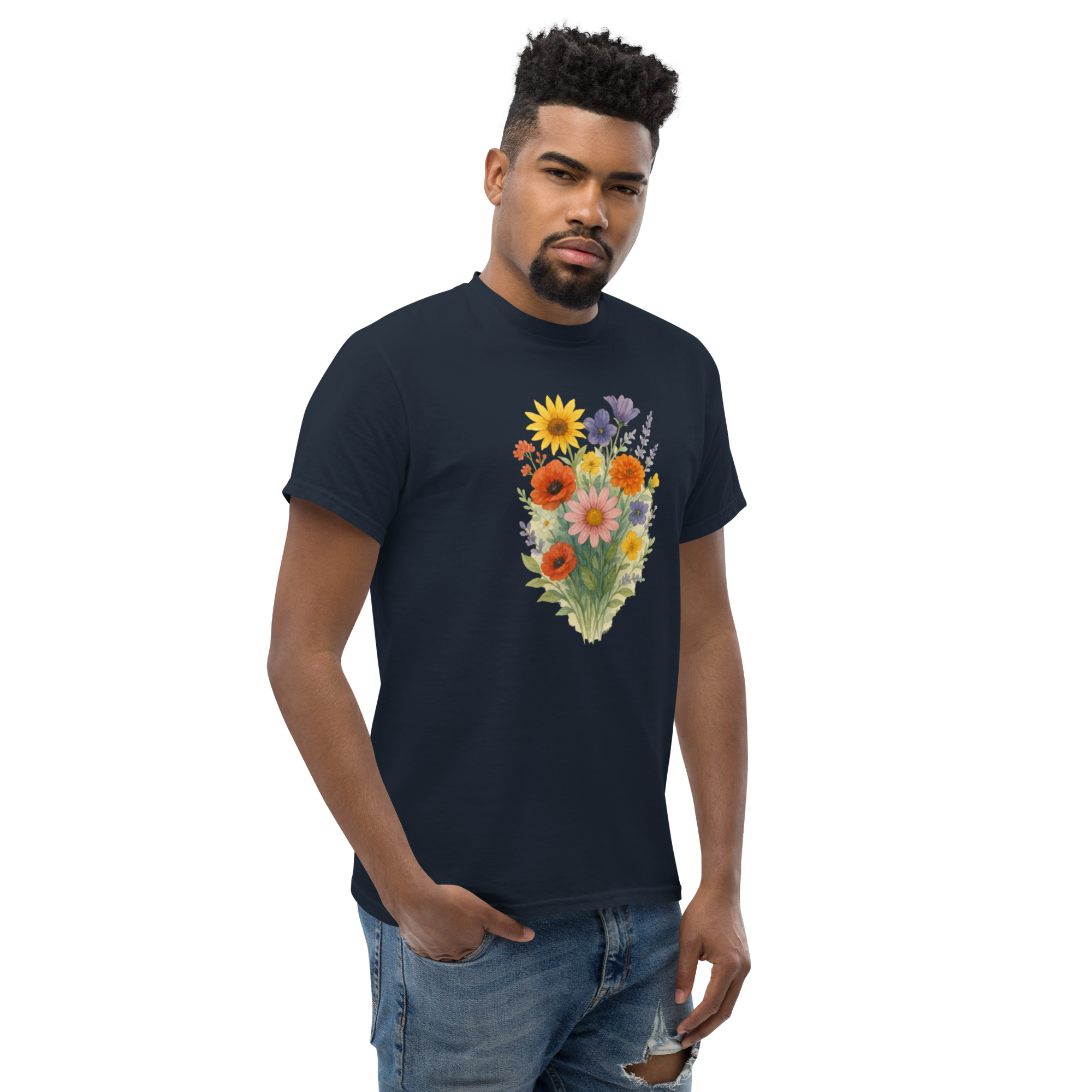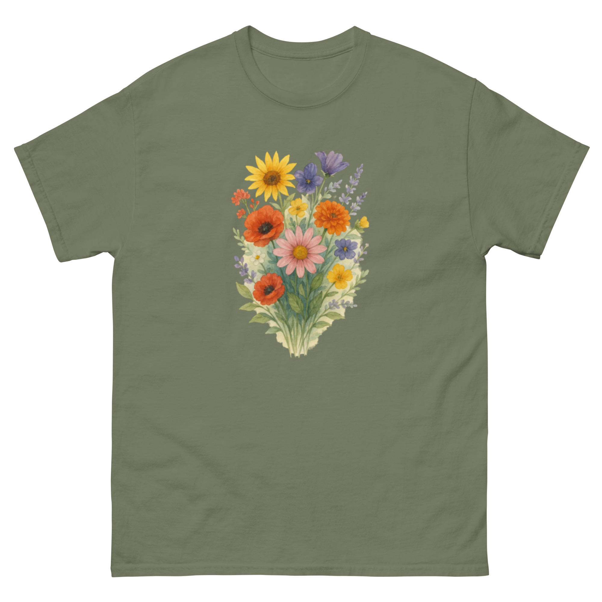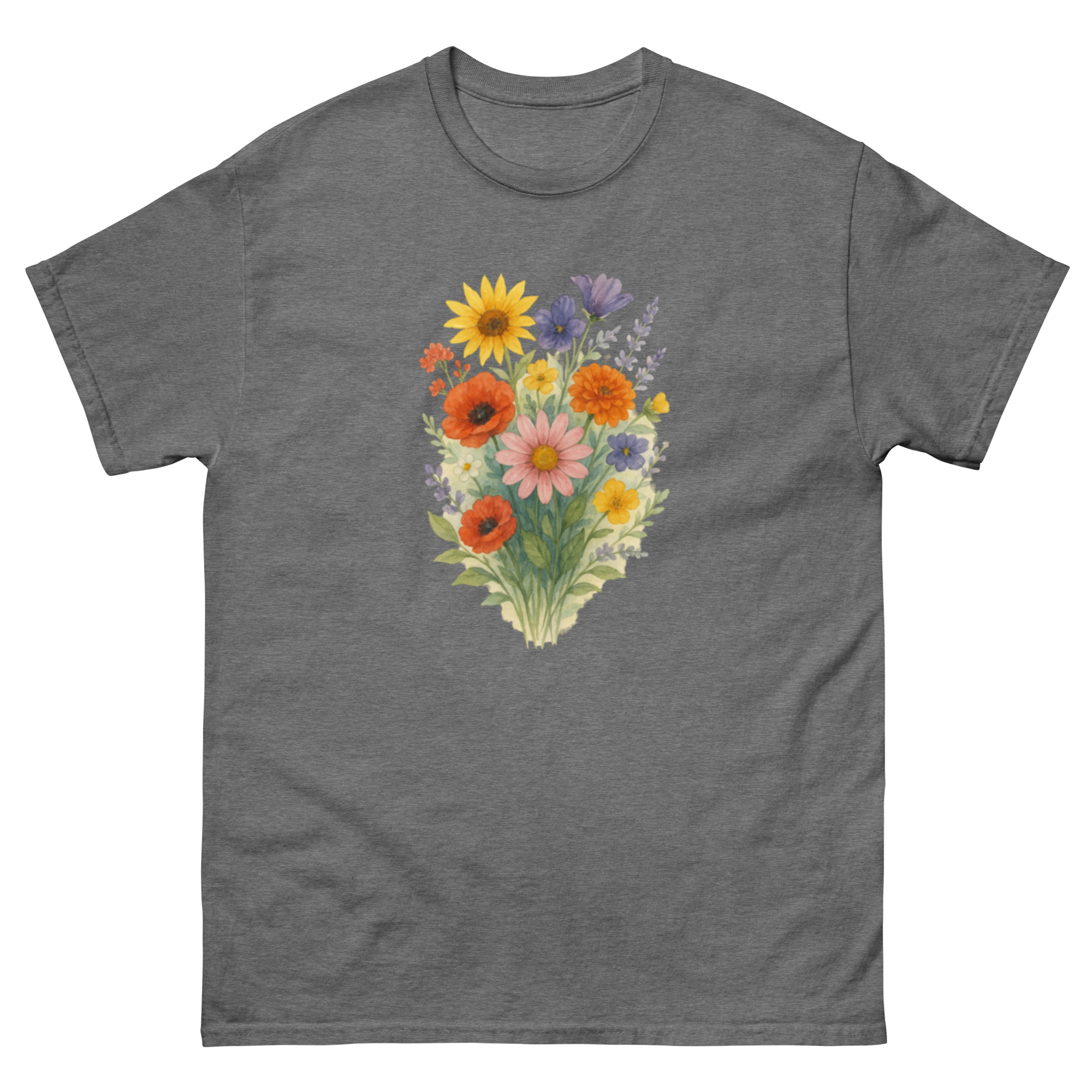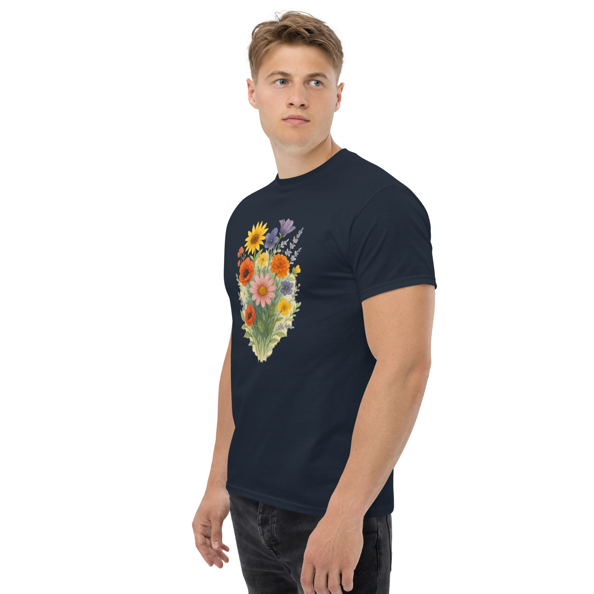 Camiseta Clássica Masculina – flores coloridas