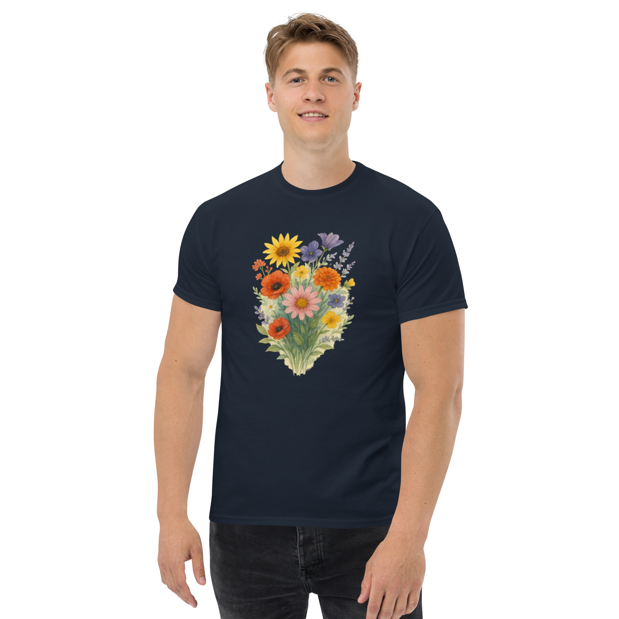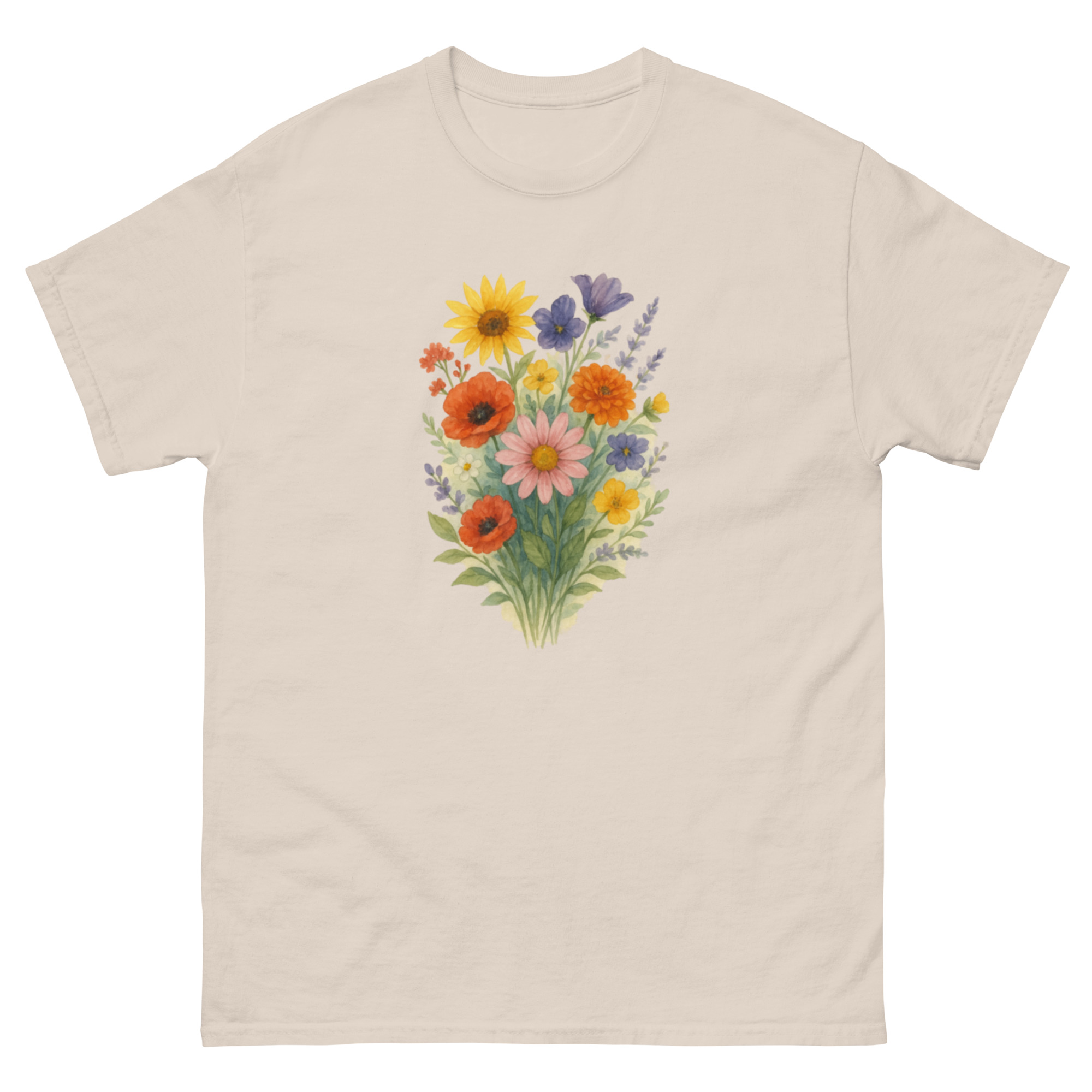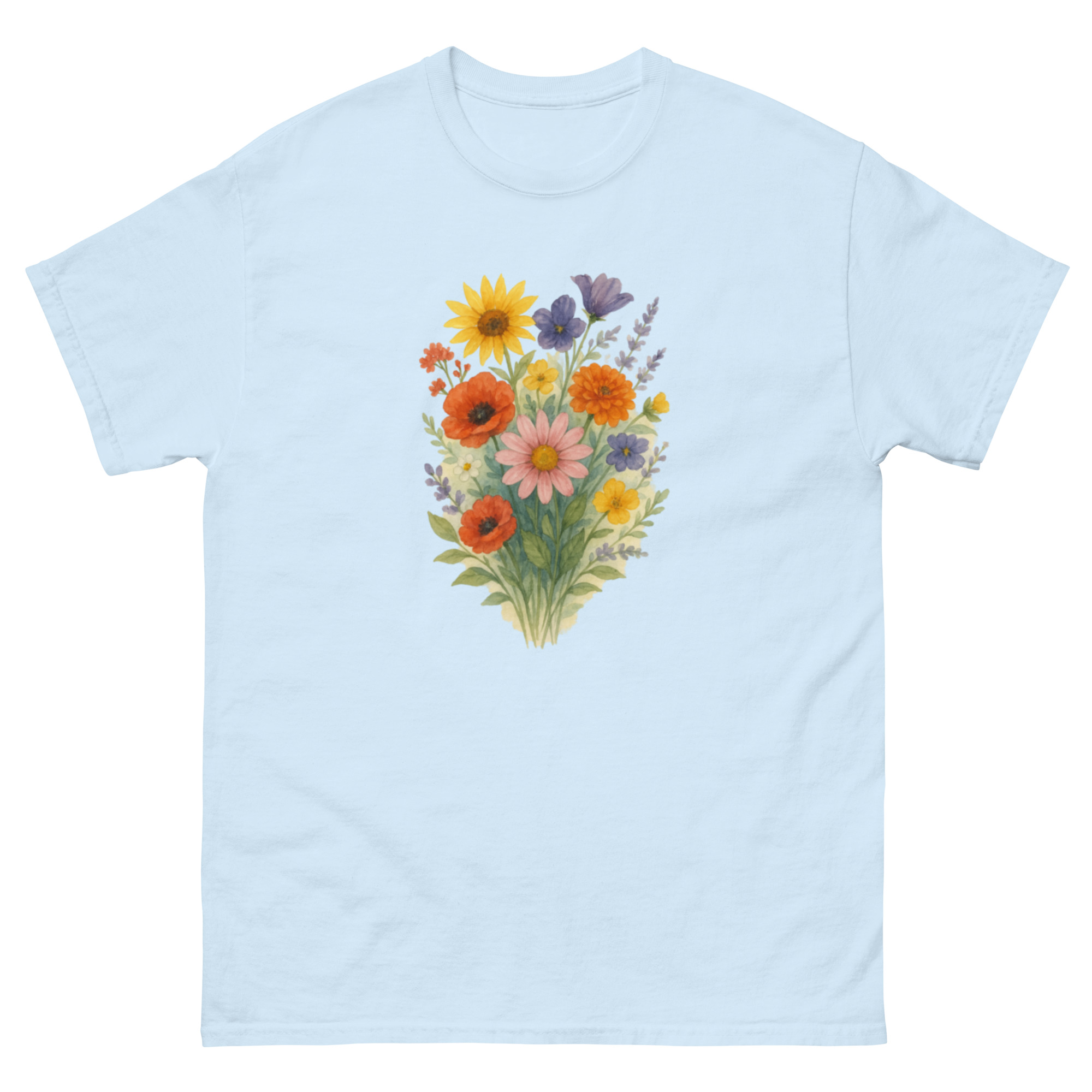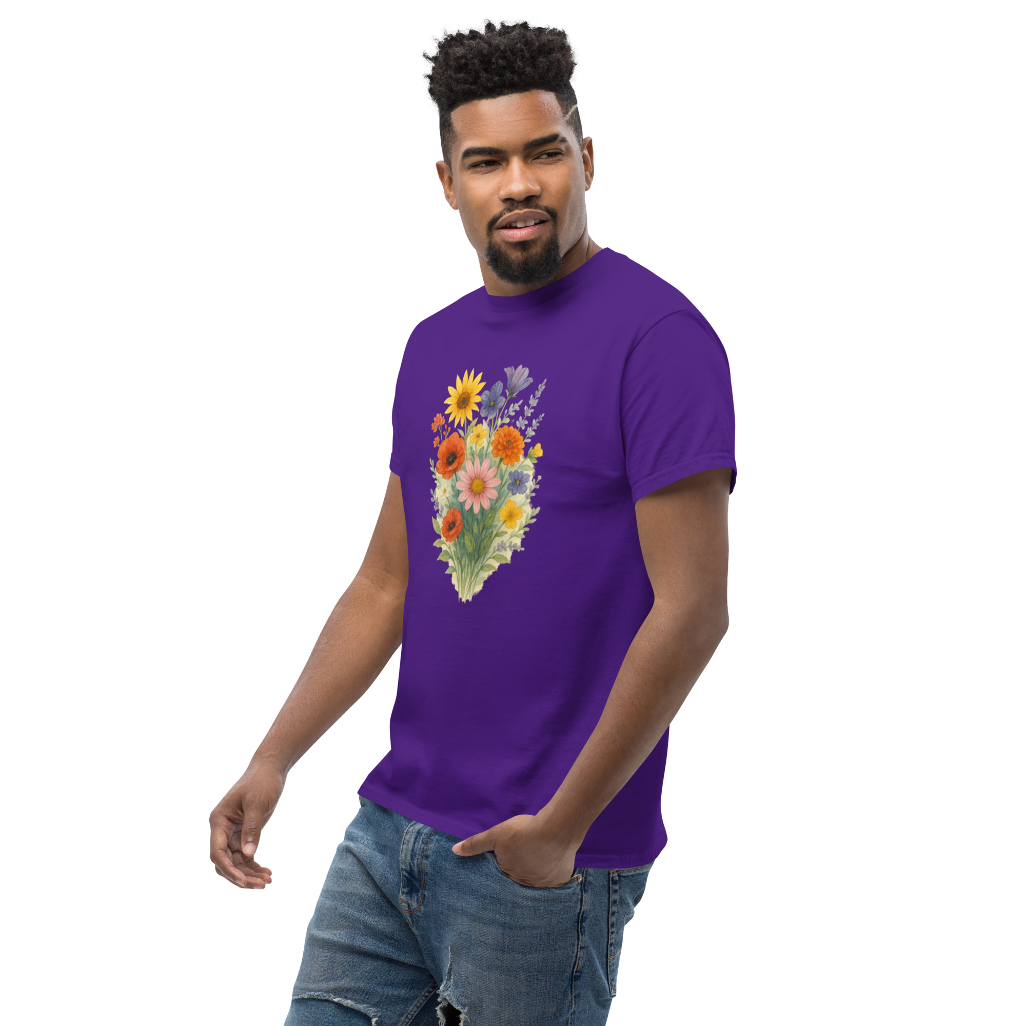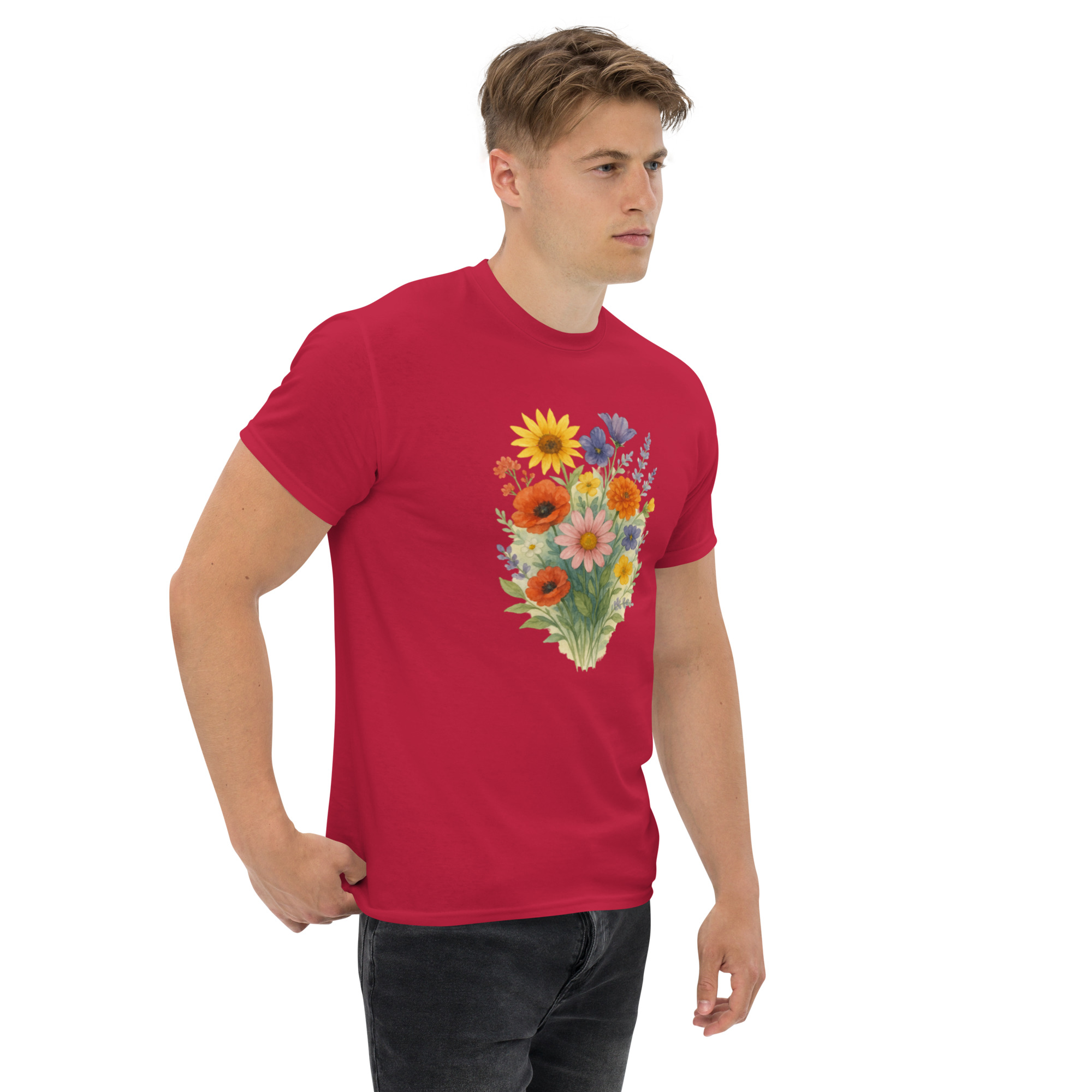 Camiseta Clássica Masculina – flores coloridas