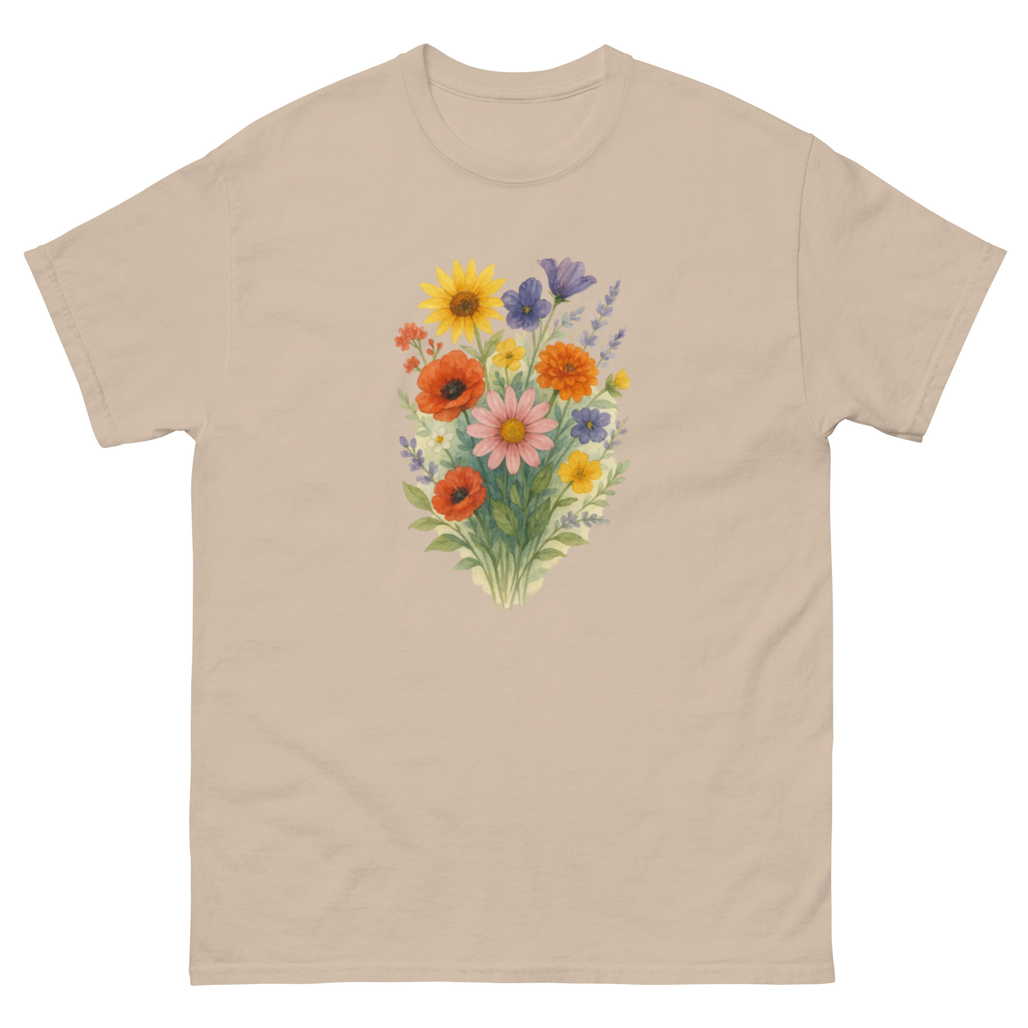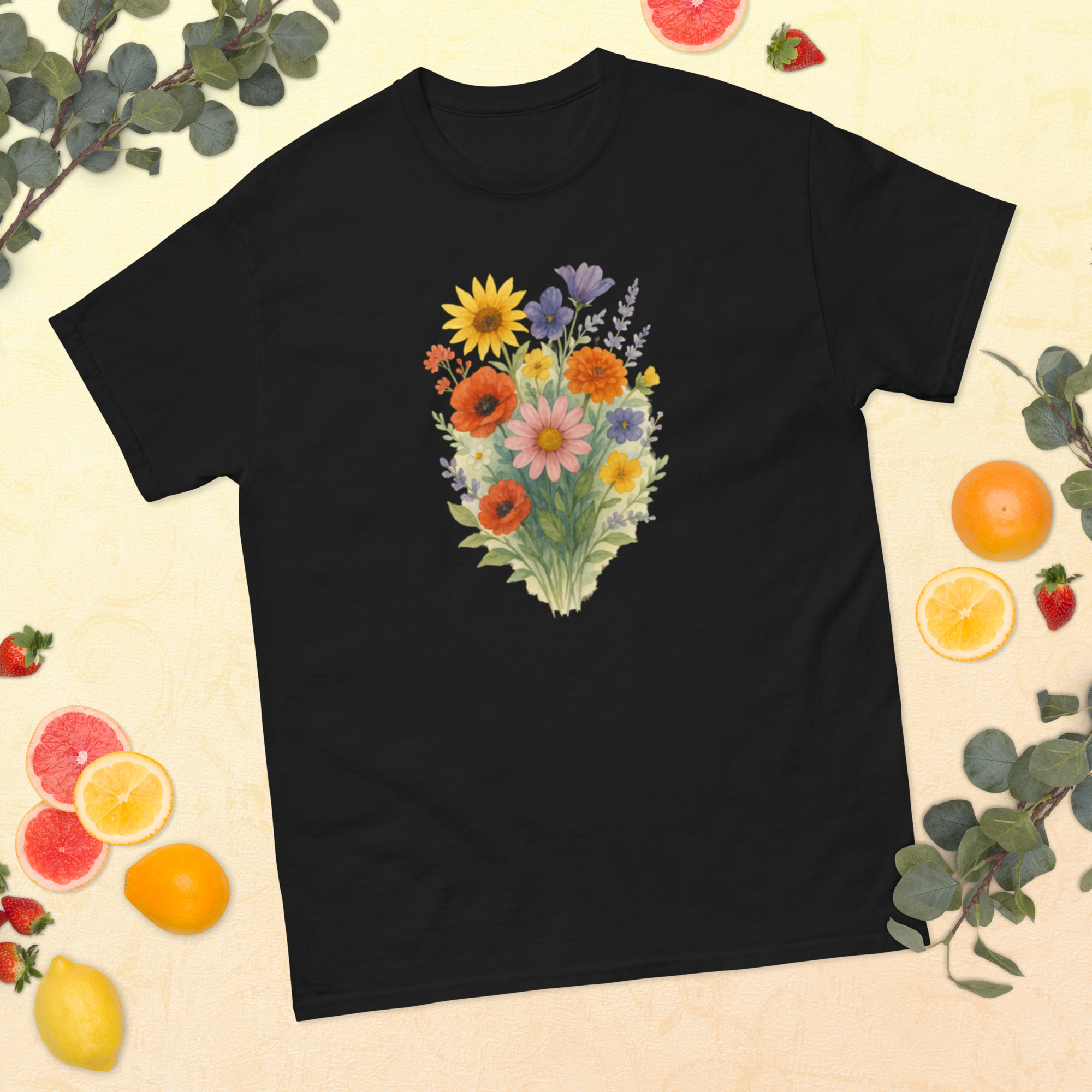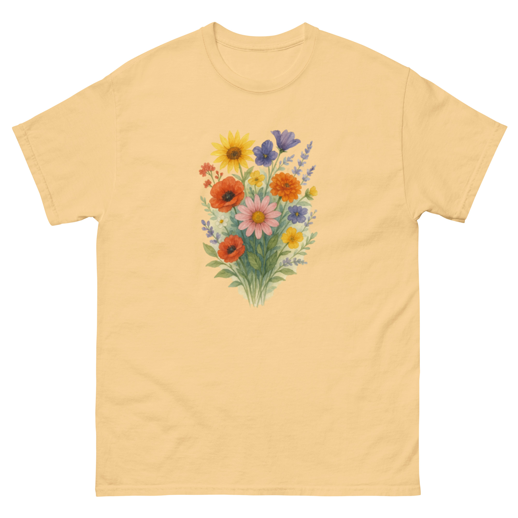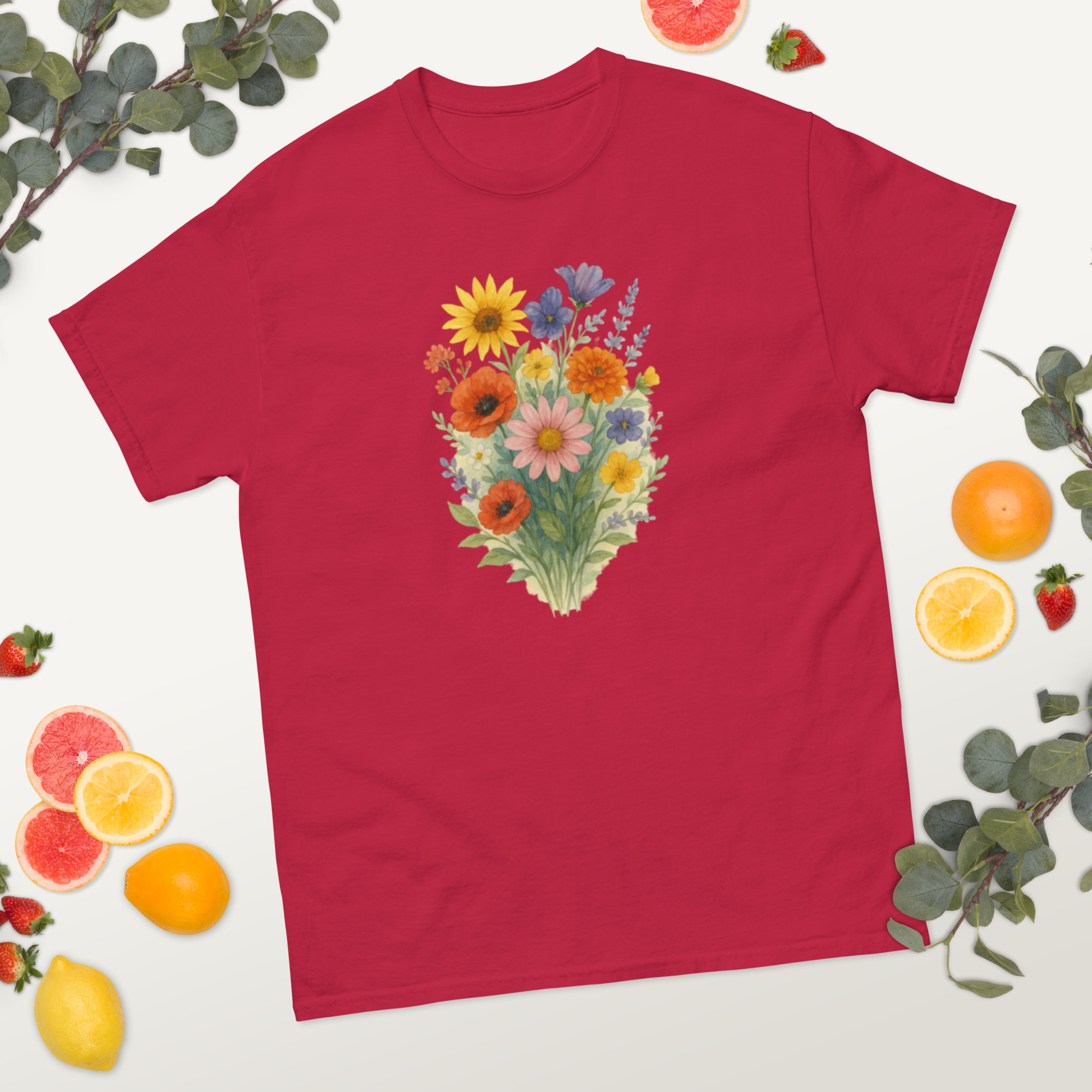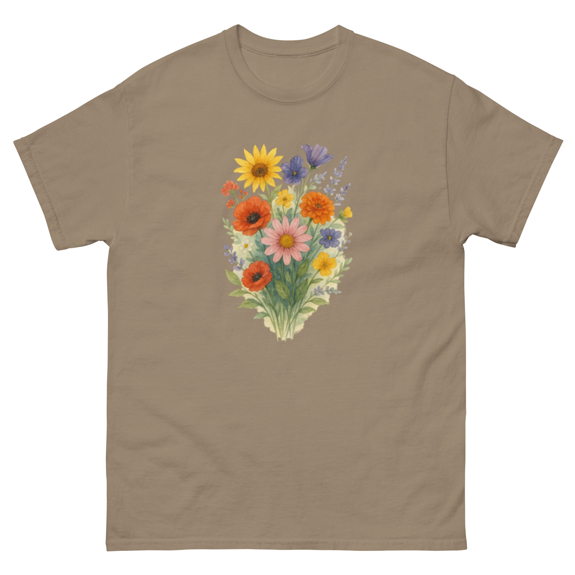 Camiseta Clássica Masculina – flores coloridas