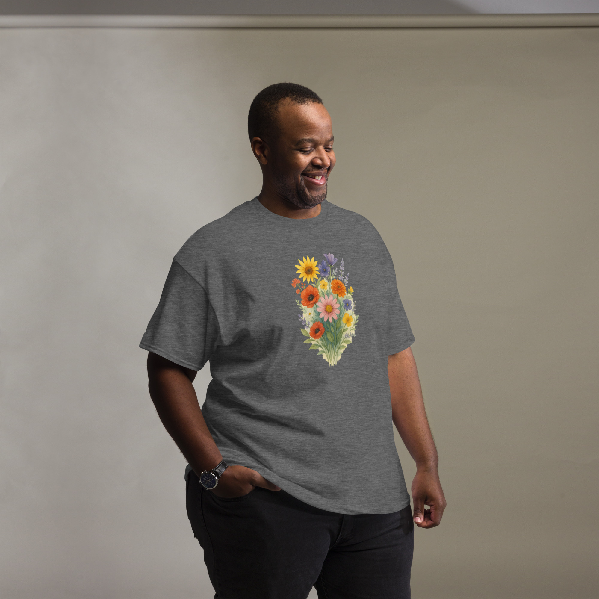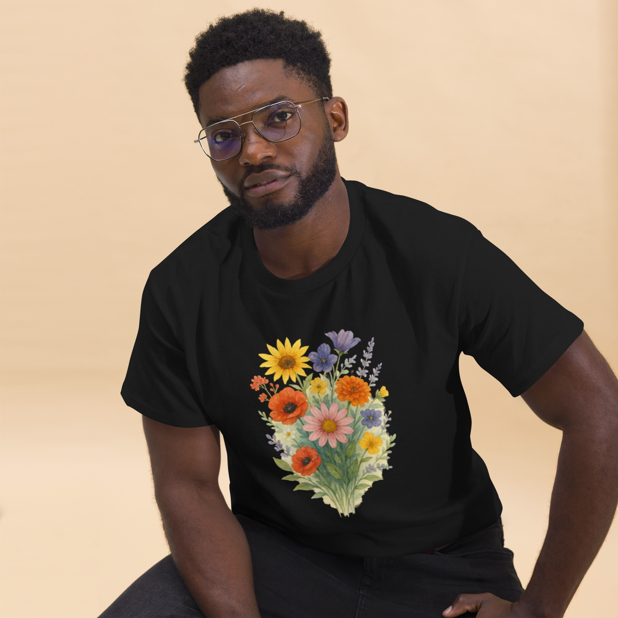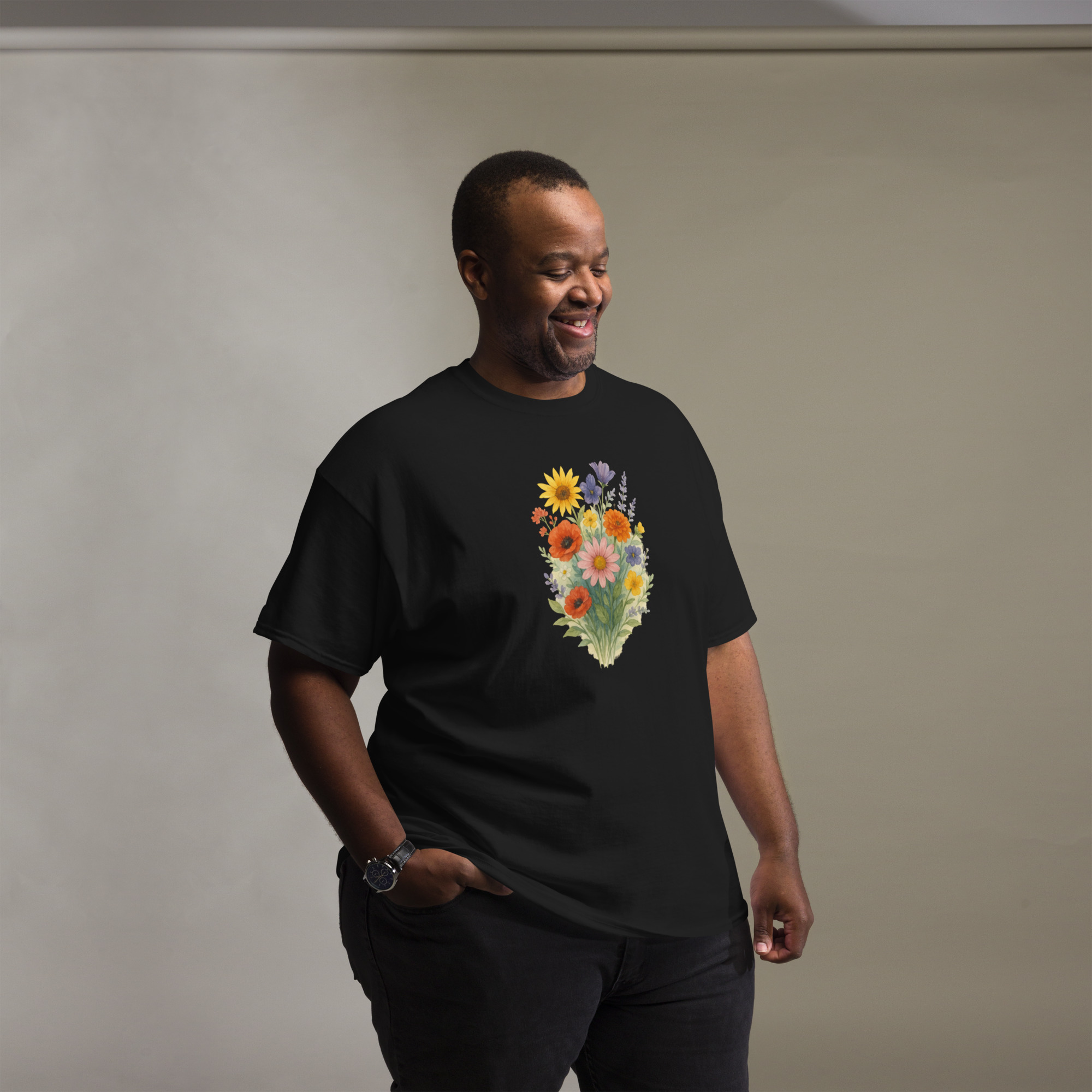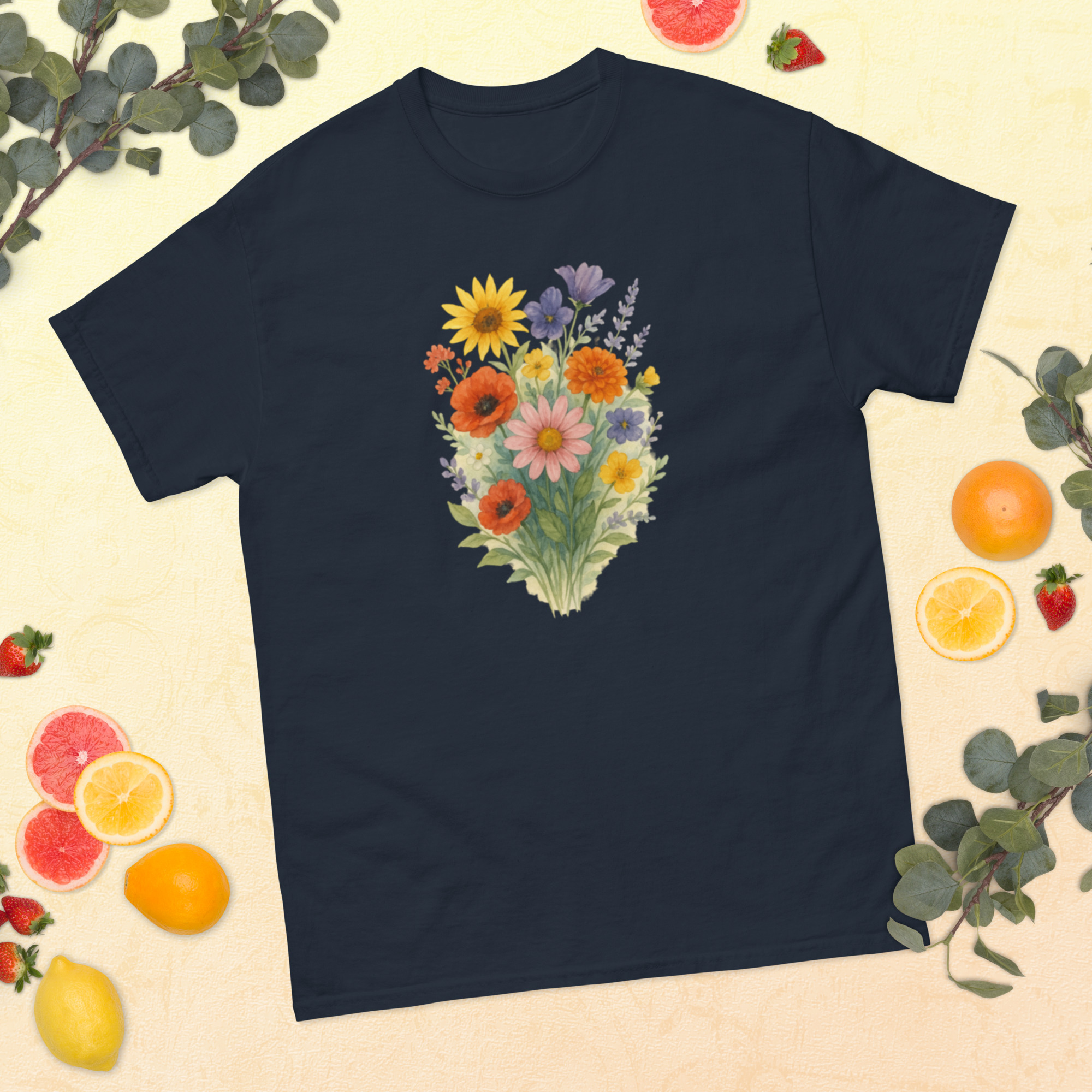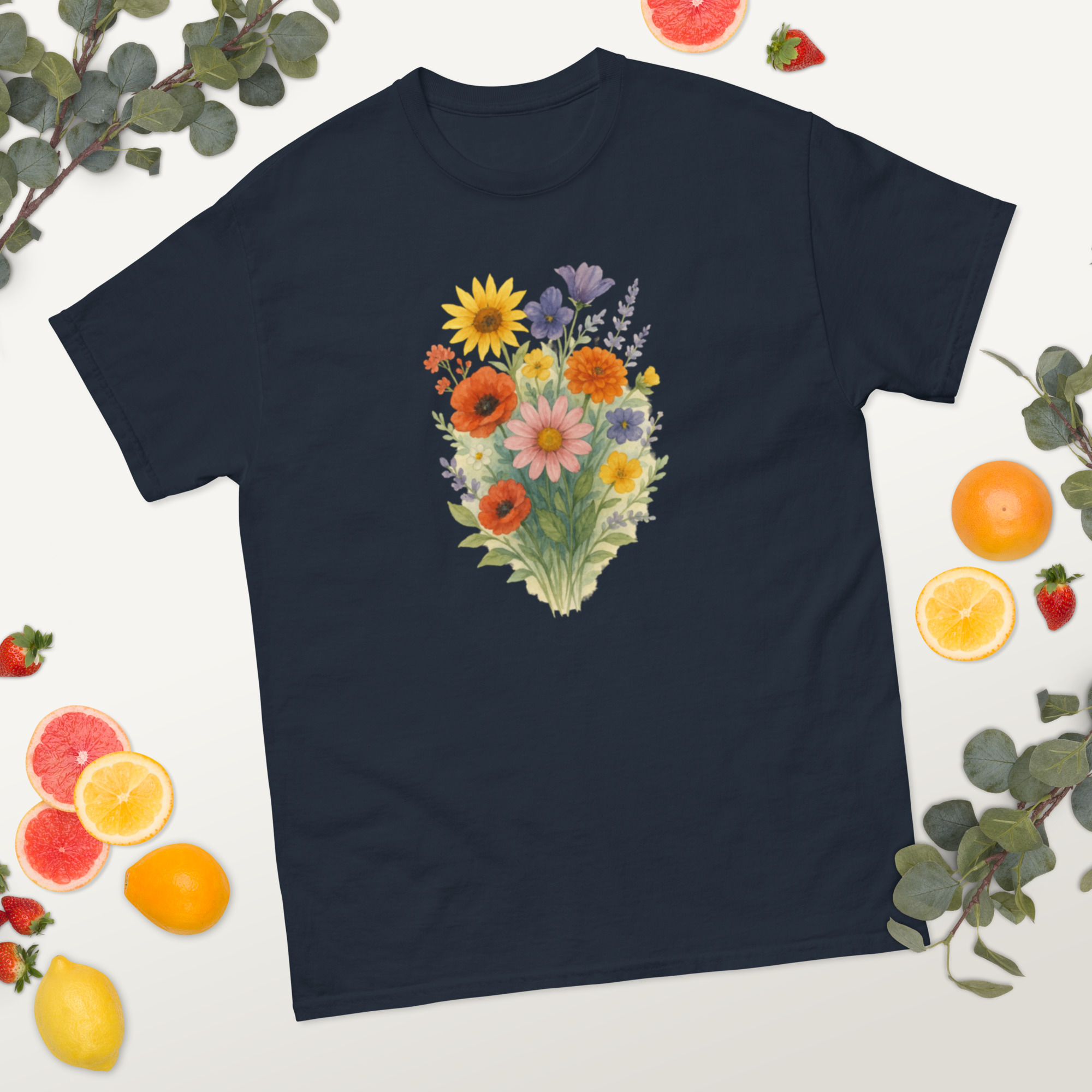 Camiseta Clássica Masculina – flores coloridas