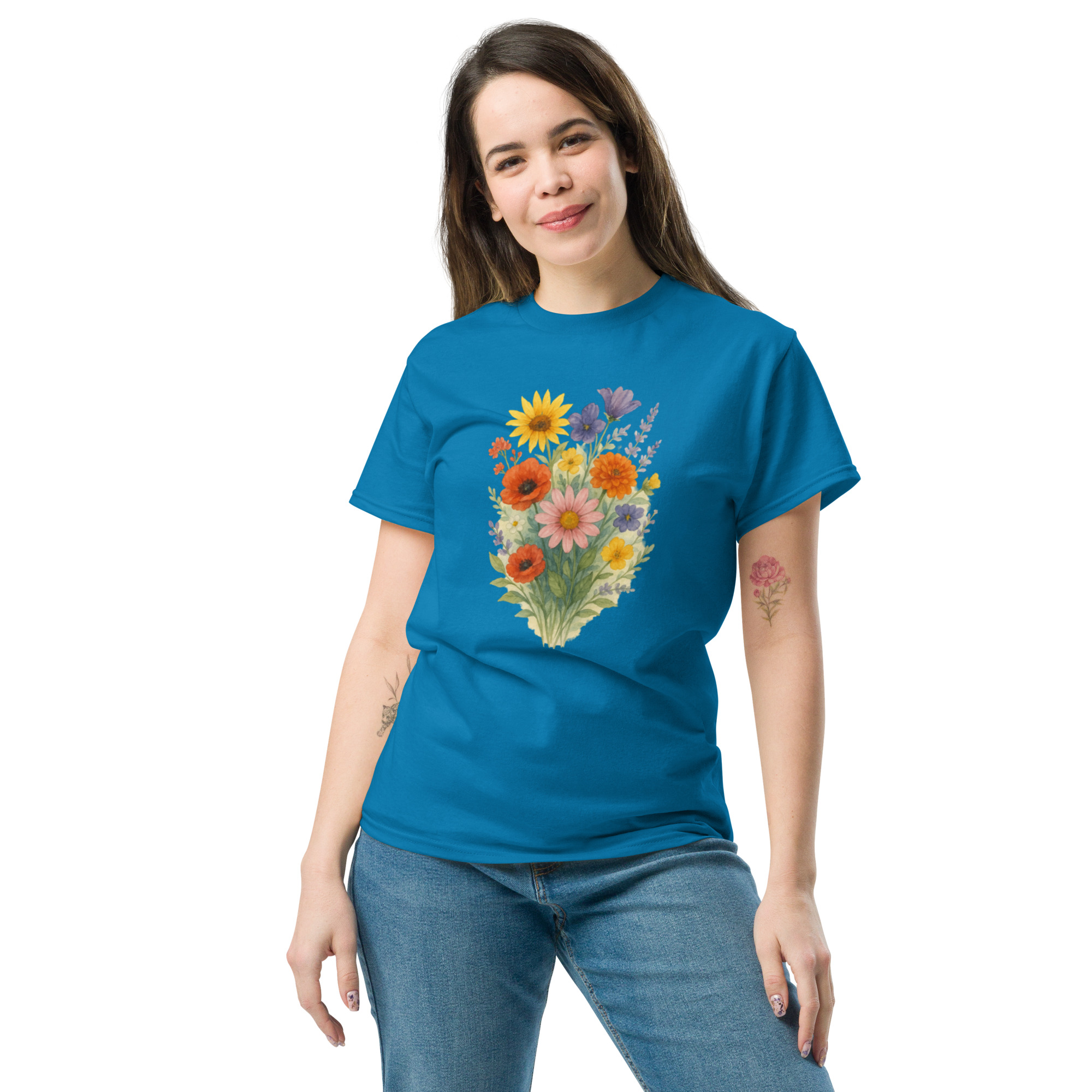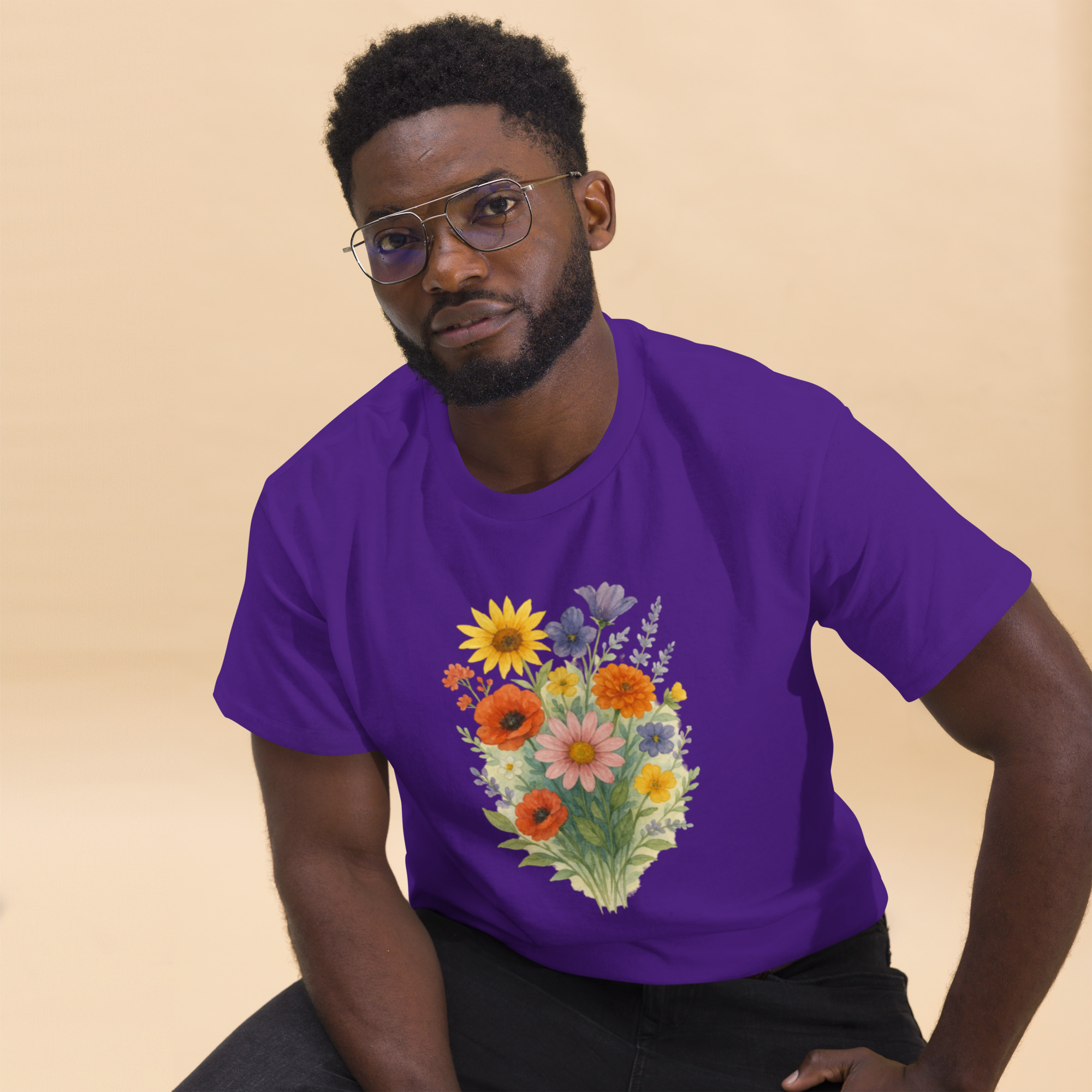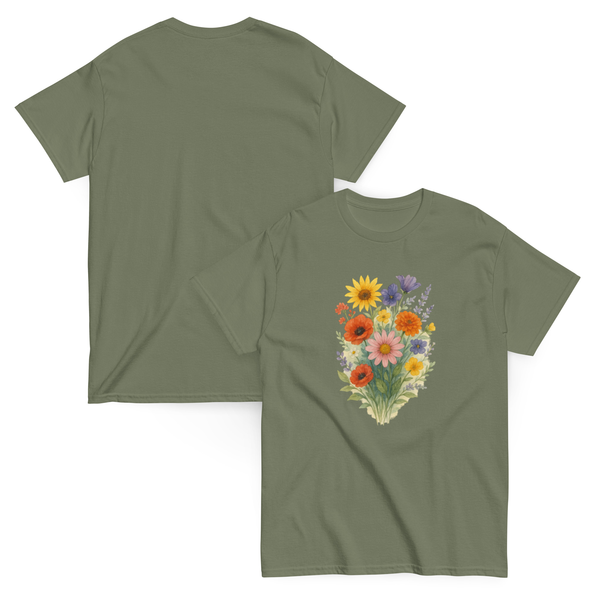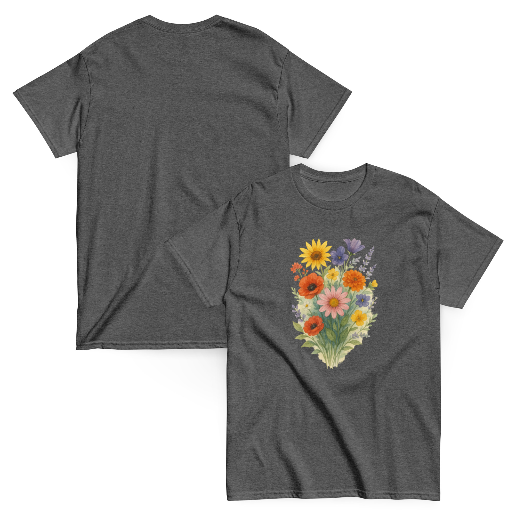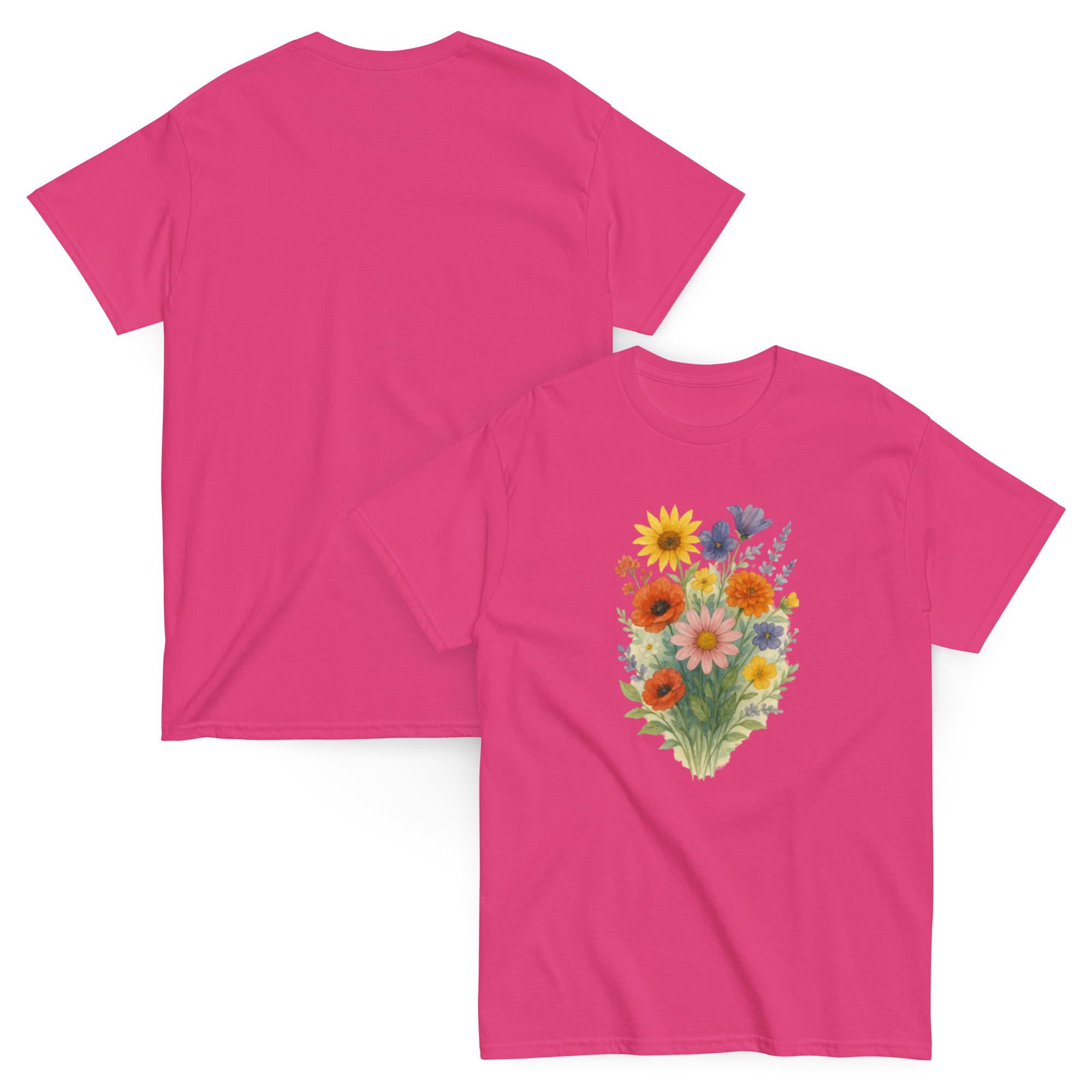 Camiseta Clássica Masculina – flores coloridas
