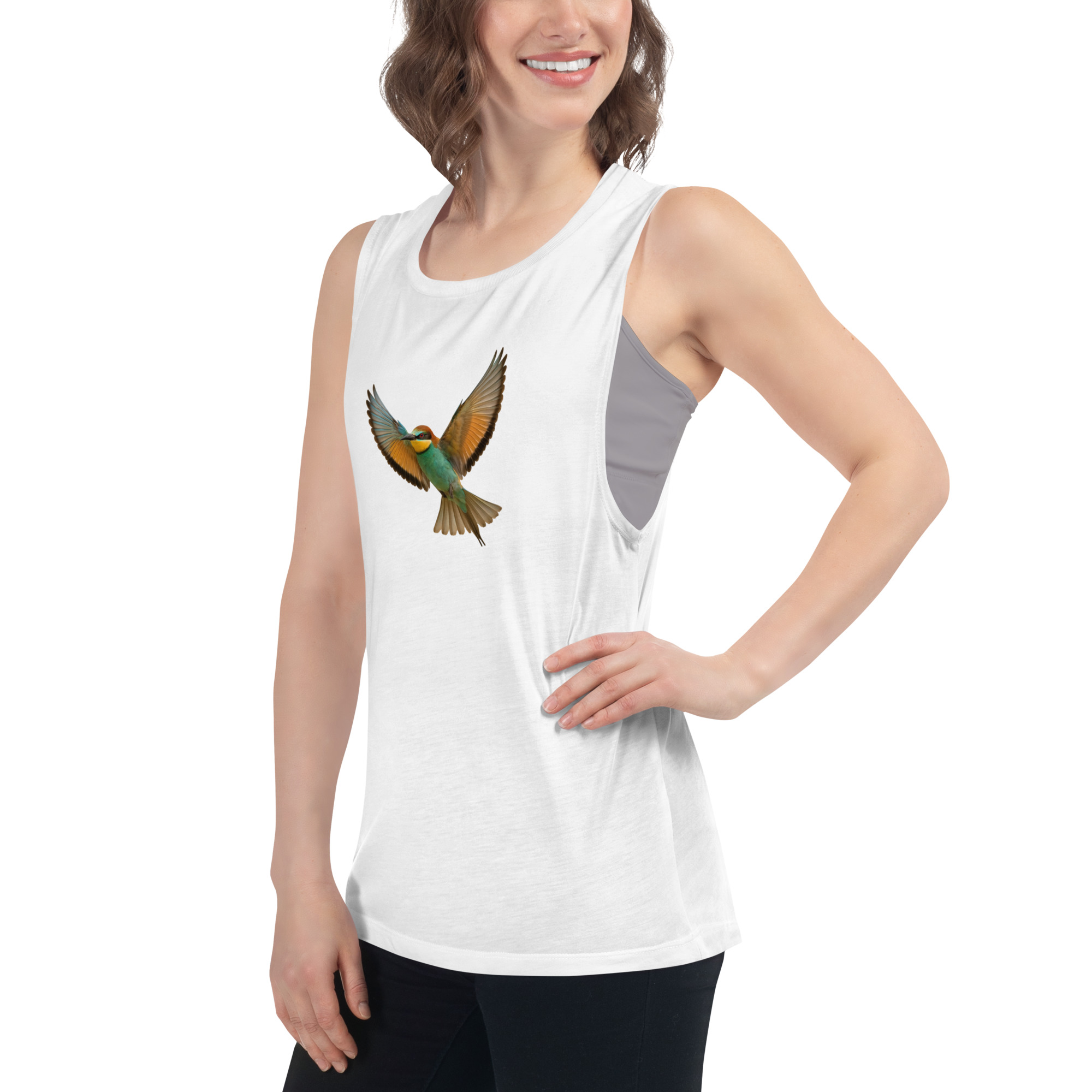 Essa confortável regata é macia e leve, com mangas de corte baixo, para um visual descontraído.