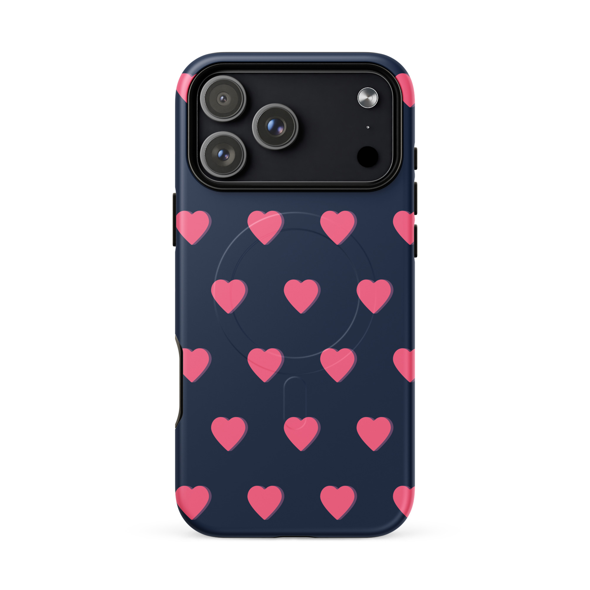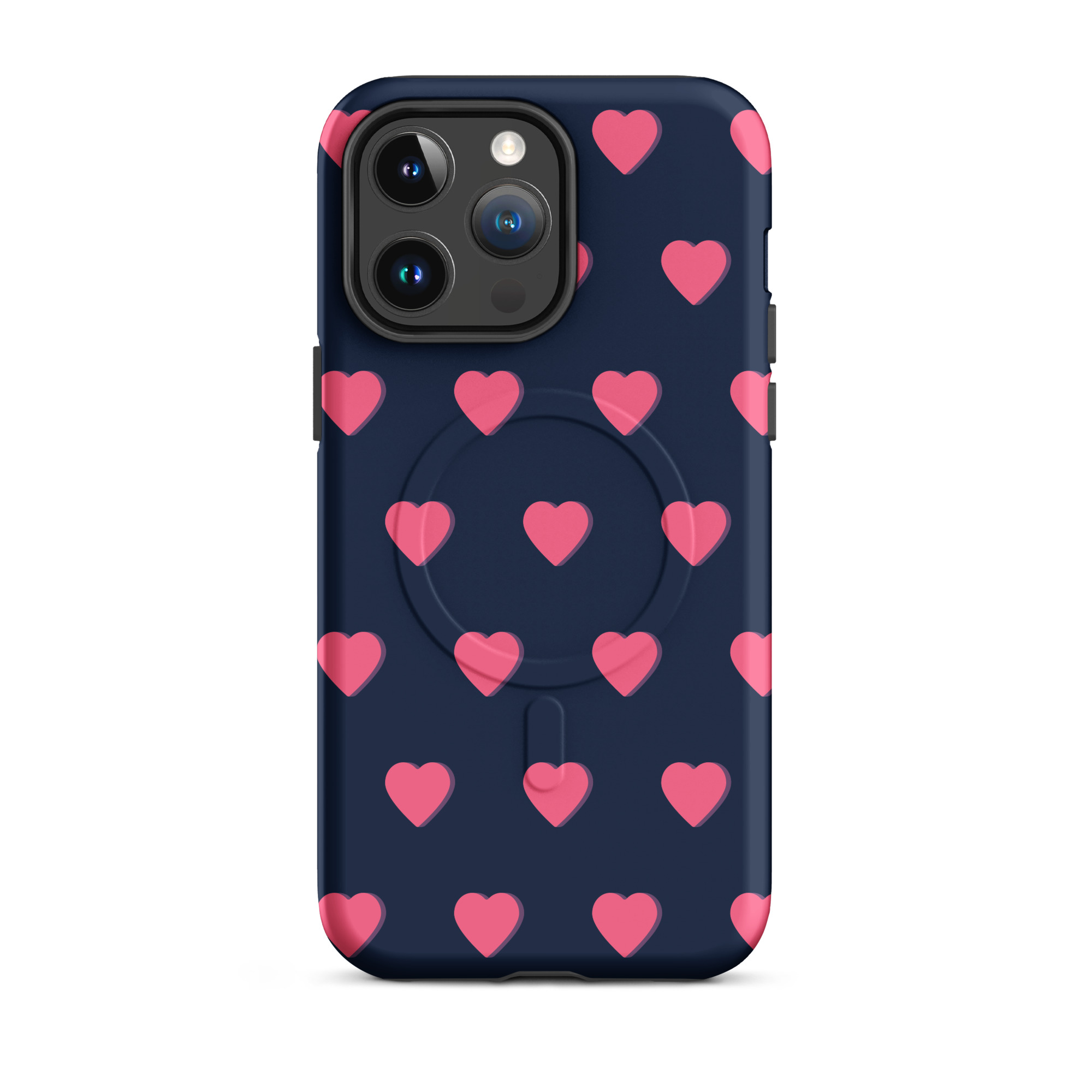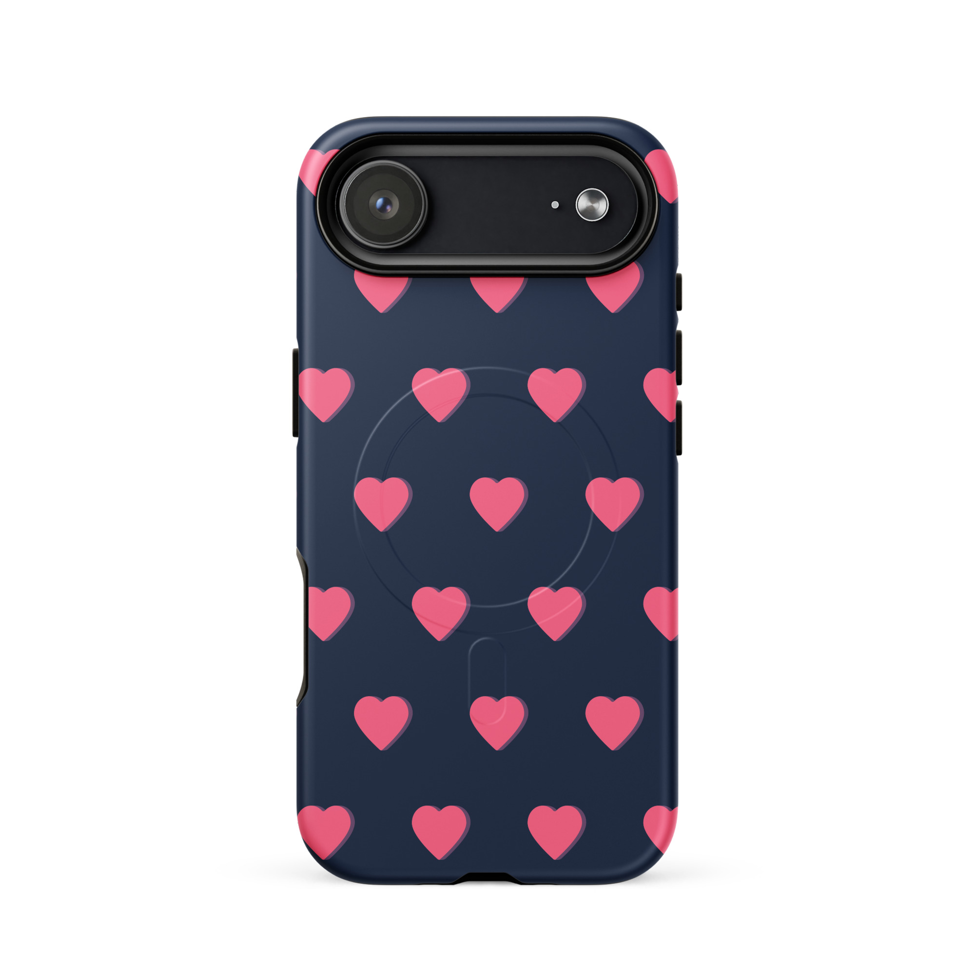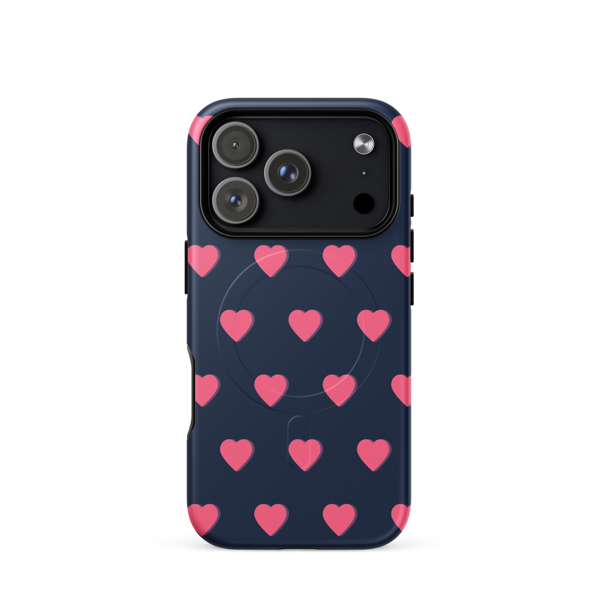 Com um fundo azul-marinho elegante e um padrão cheio de corações cor-de-rosa, ela combina doçura e atitude na medida certa. Ideal para quem adora acessórios que transmitem positividade, amor e estilo em cada detalhe.