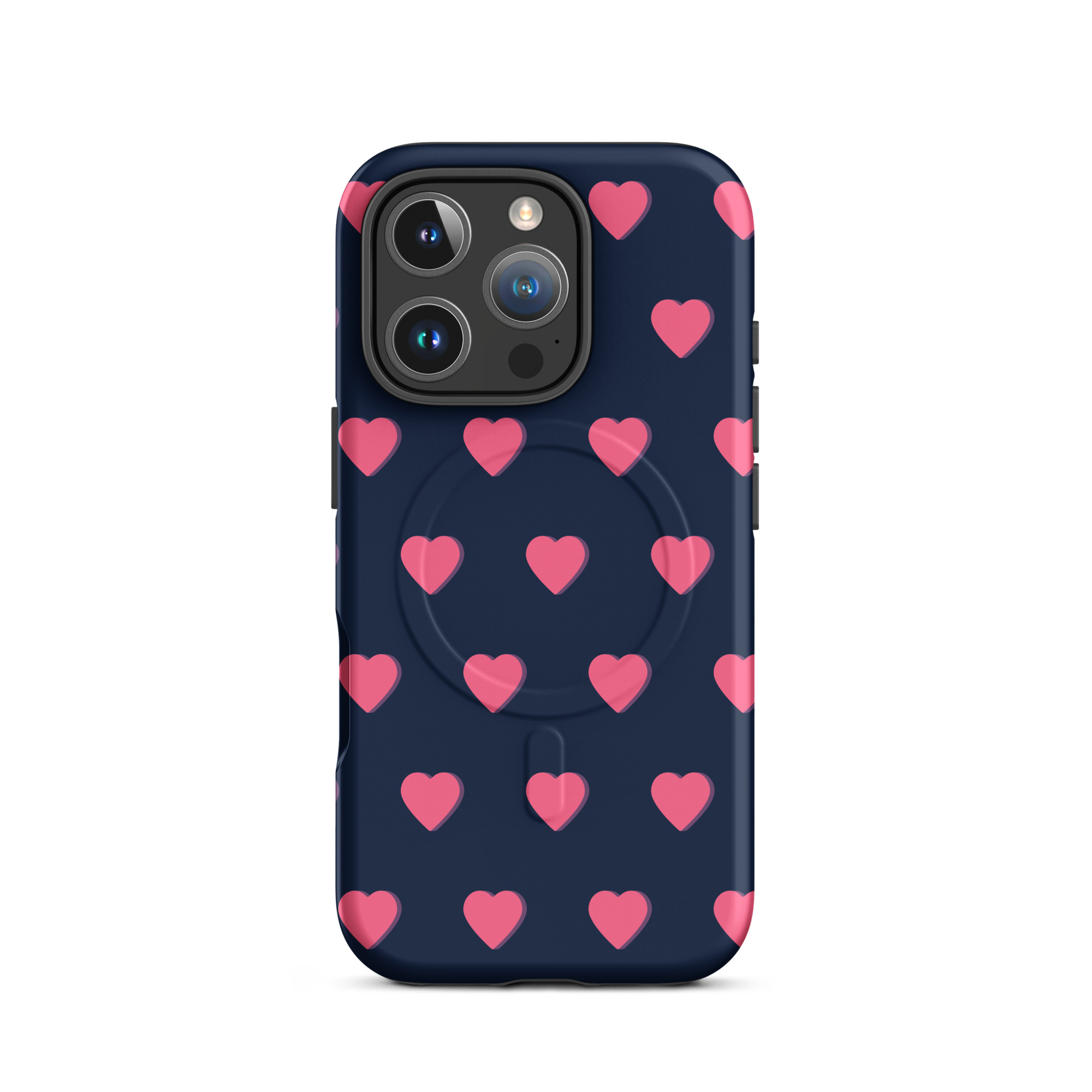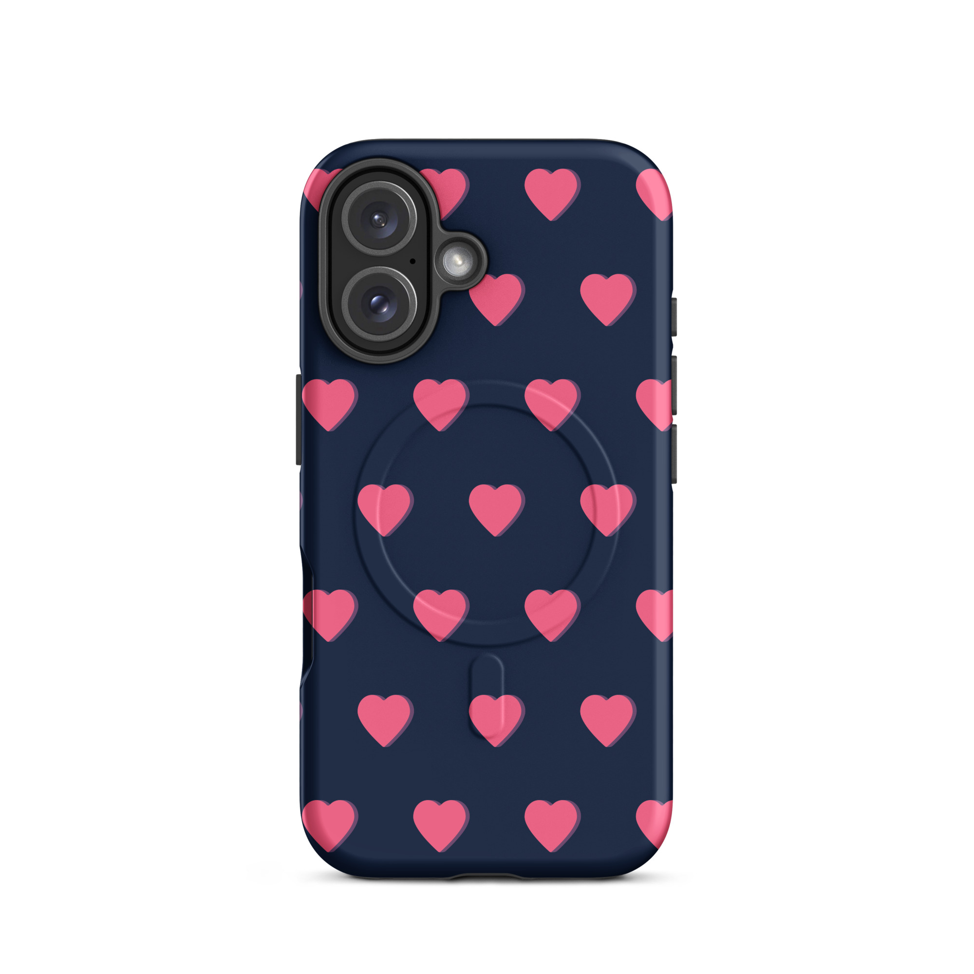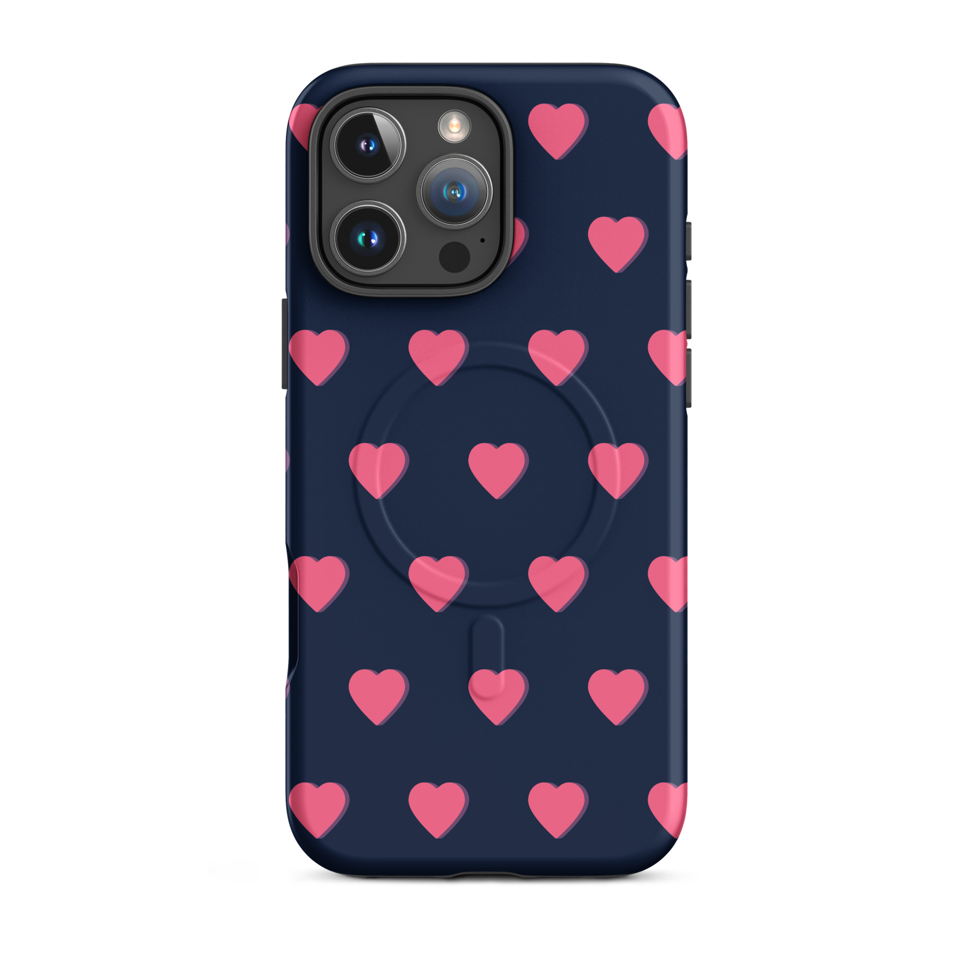 Com um fundo azul-marinho elegante e um padrão cheio de corações cor-de-rosa, ela combina doçura e atitude na medida certa. Ideal para quem adora acessórios que transmitem positividade, amor e estilo em cada detalhe.