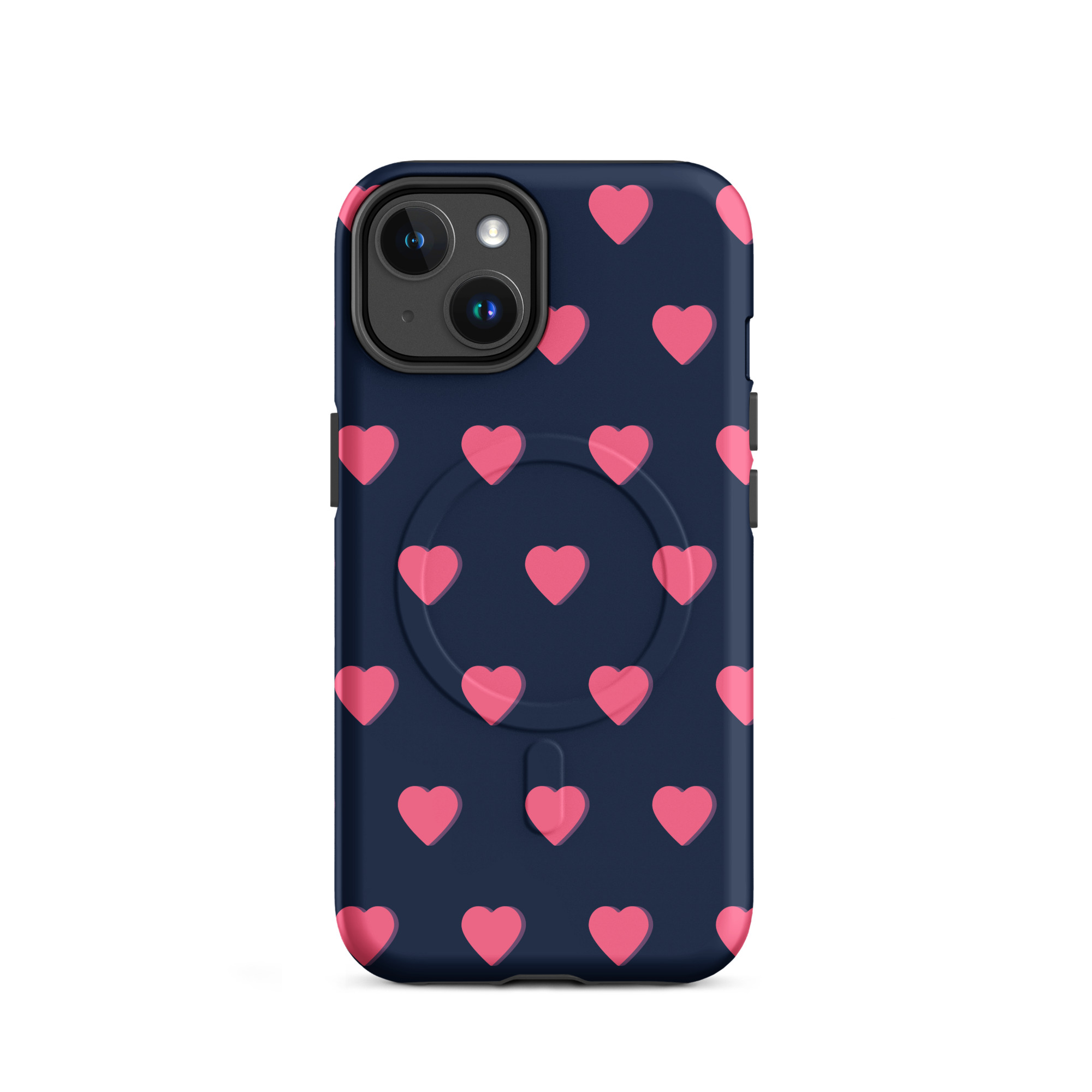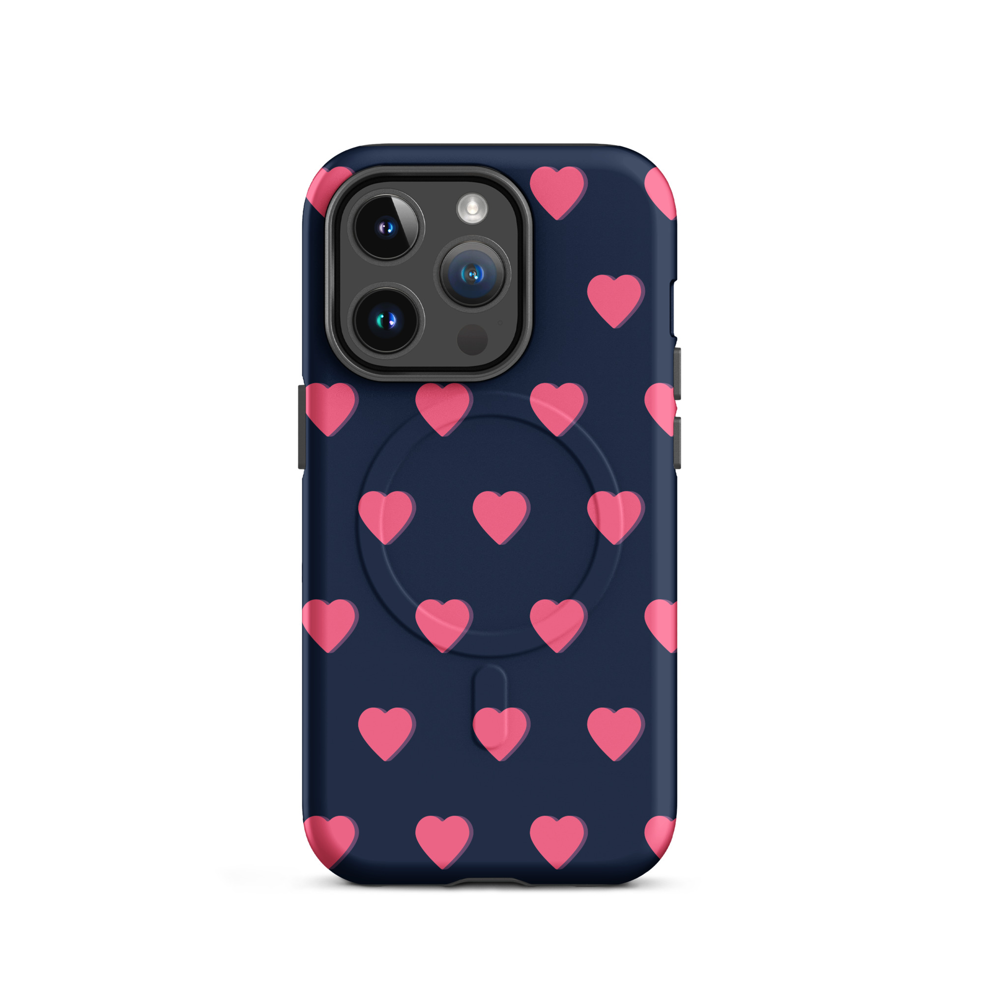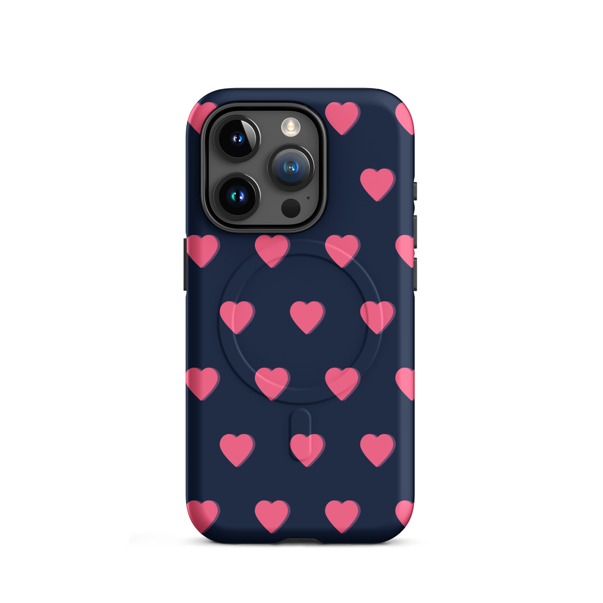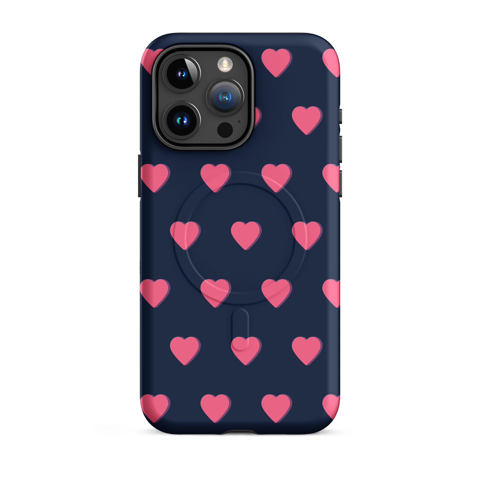 Com um fundo azul-marinho elegante e um padrão cheio de corações cor-de-rosa, ela combina doçura e atitude na medida certa. Ideal para quem adora acessórios que transmitem positividade, amor e estilo em cada detalhe.