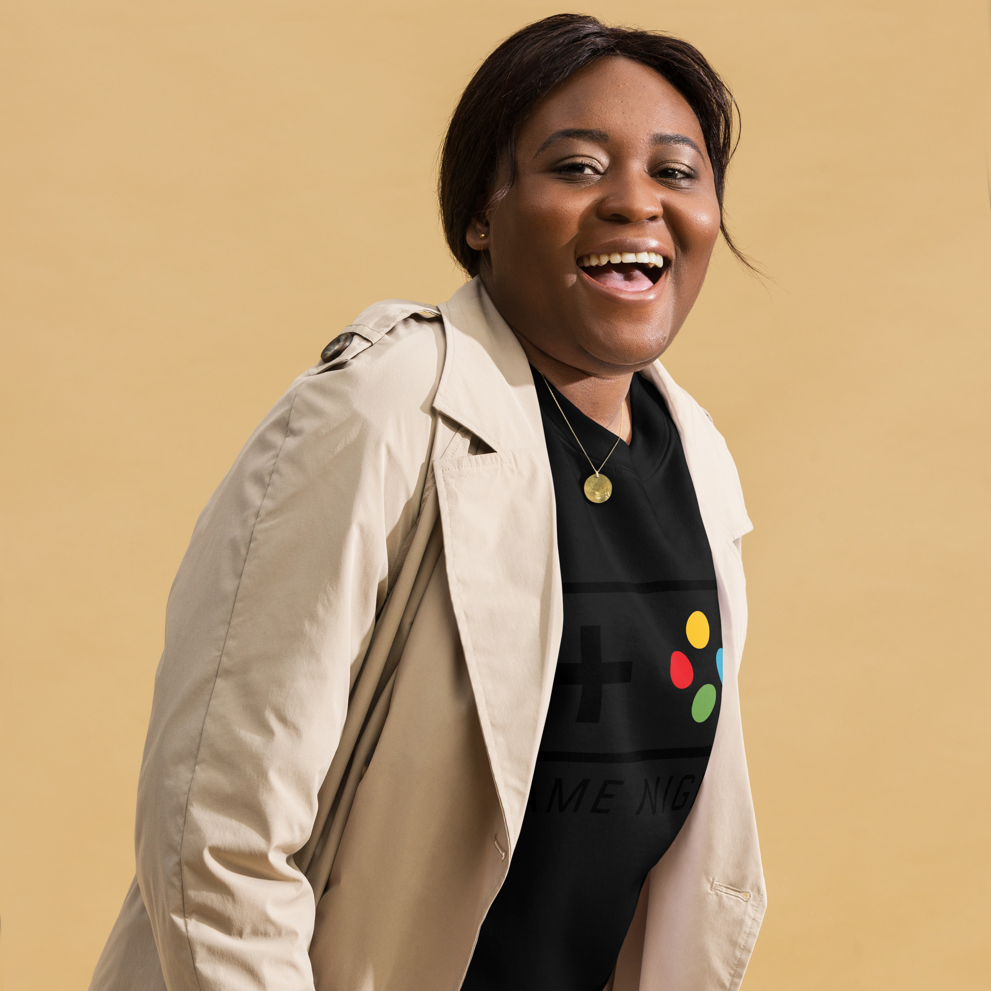 • Gola, punhos e bainha costurados com agulha dupla