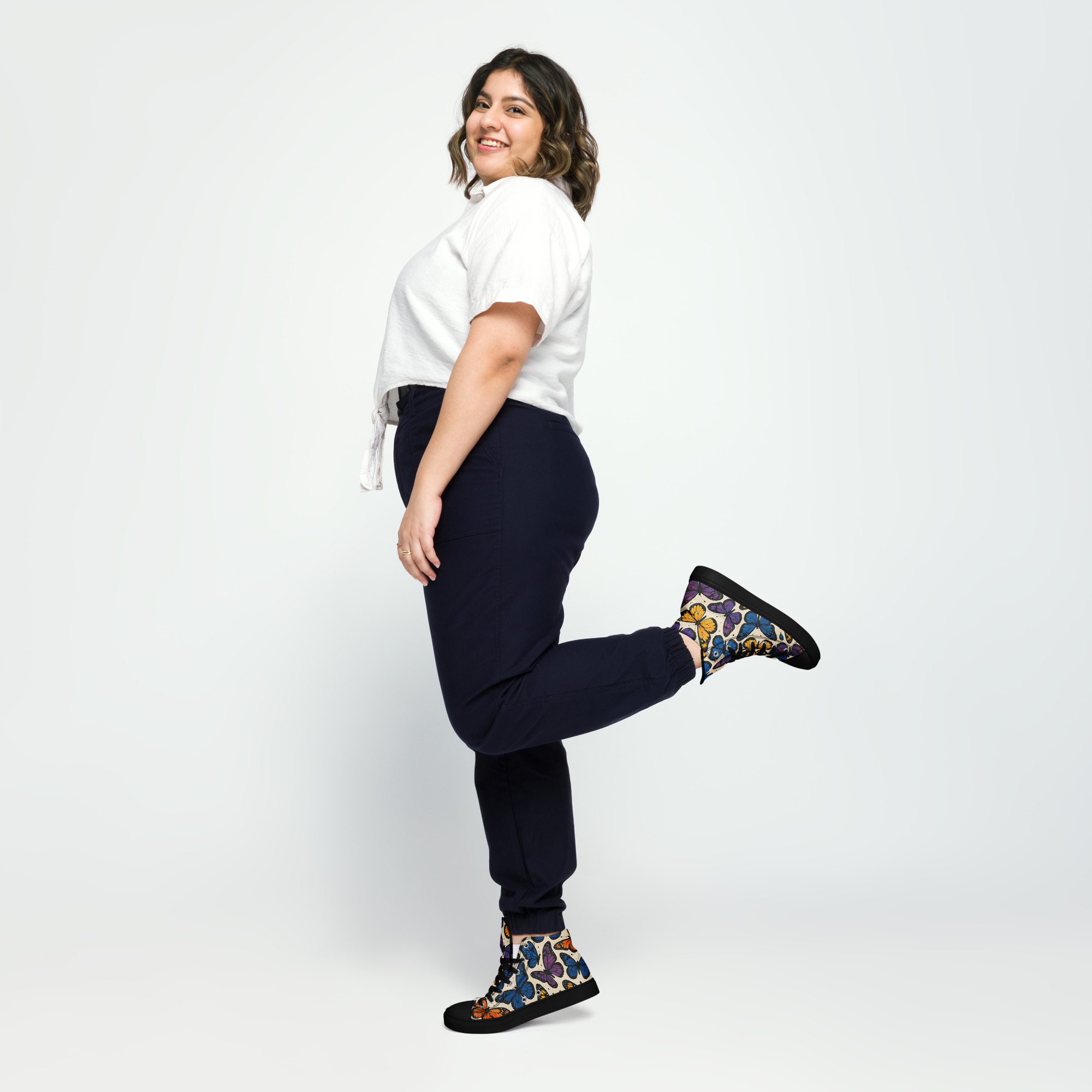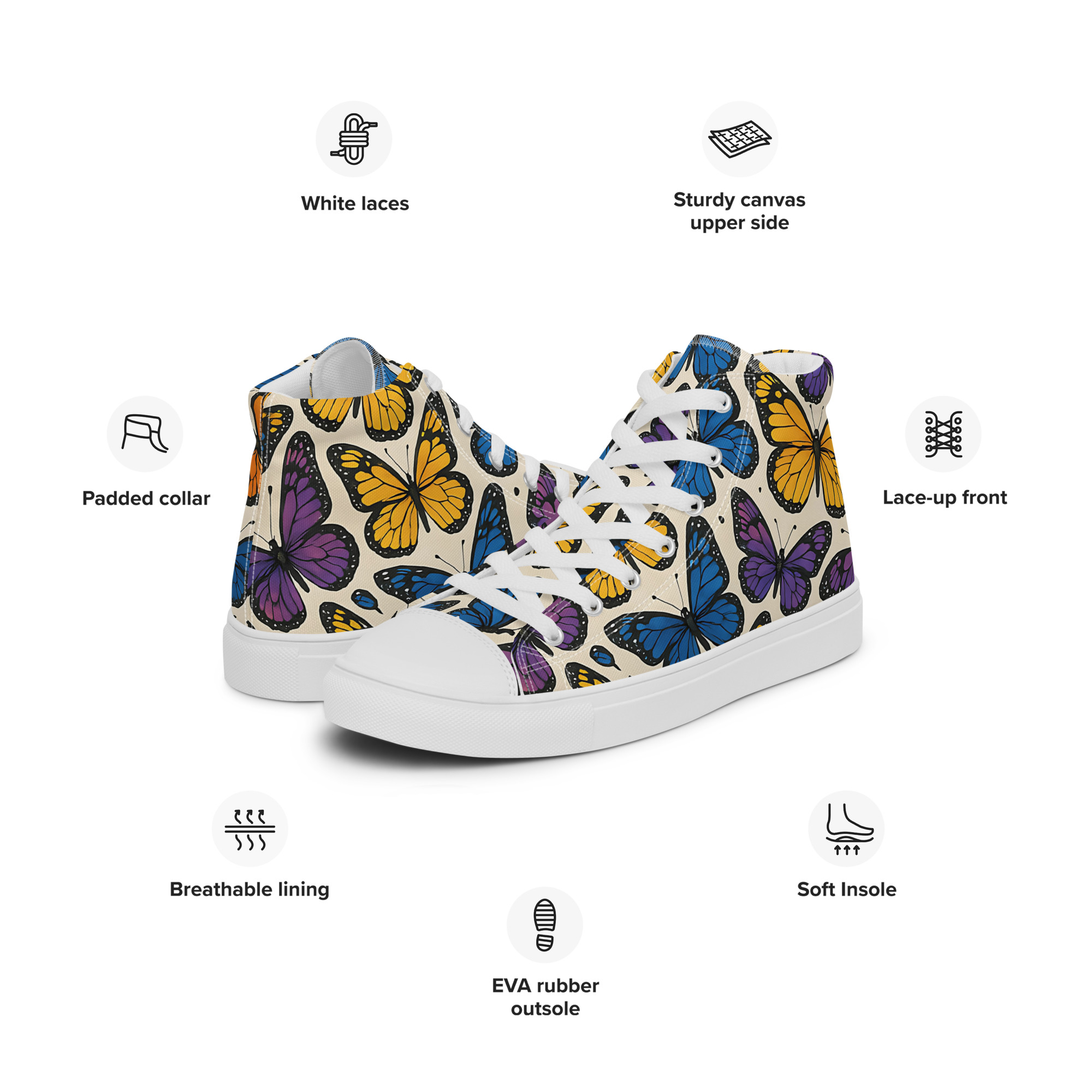 Elevando o estilo com um toque de fantasia. Apresentamos o Tênis de Lona de Cano Alto Feminino Borboleta, uma ode à feminilidade e ao conforto.