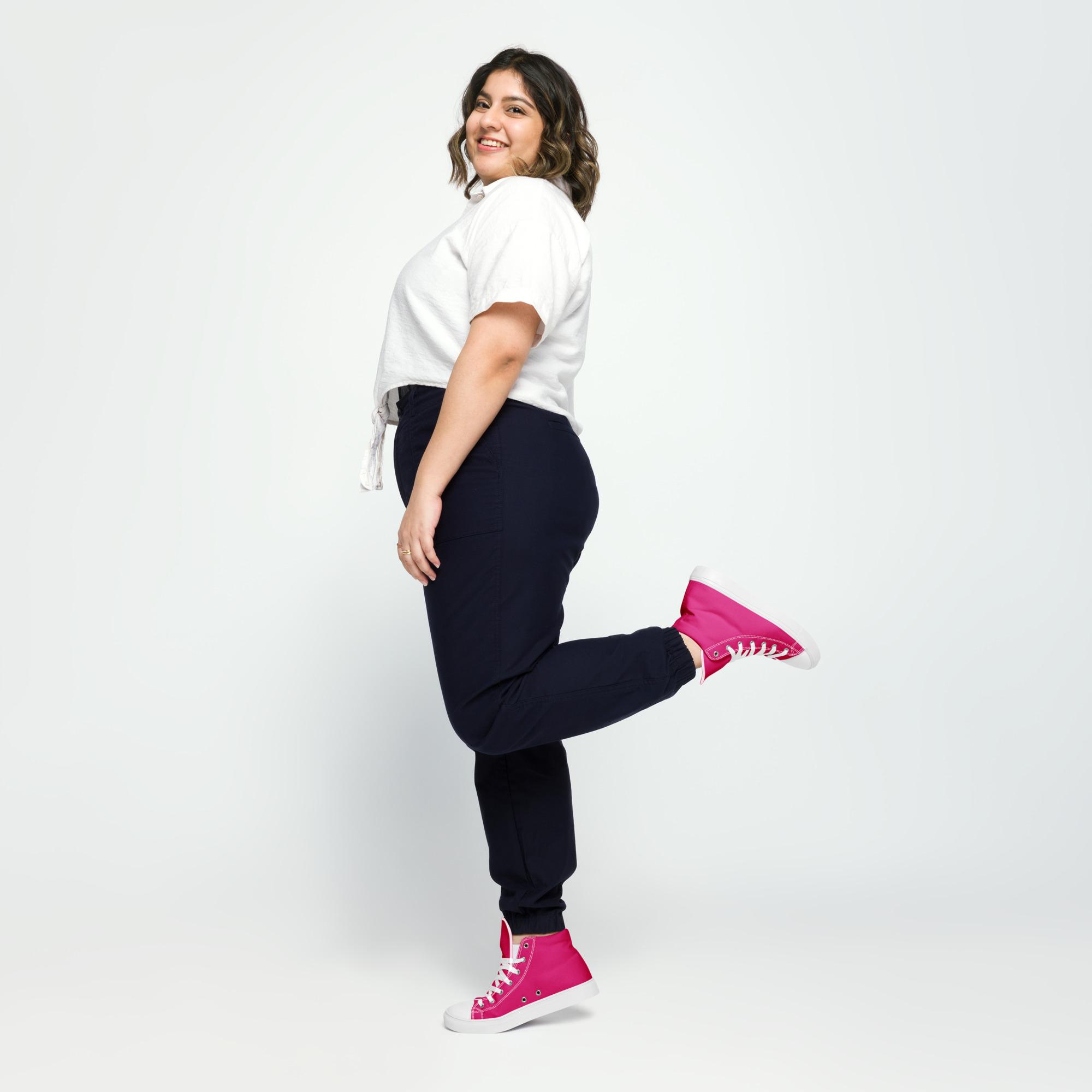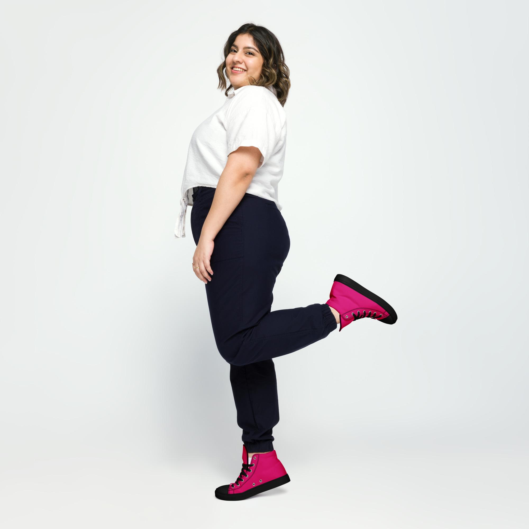 Tênis de lona de cano alto feminino – Rosa Choque