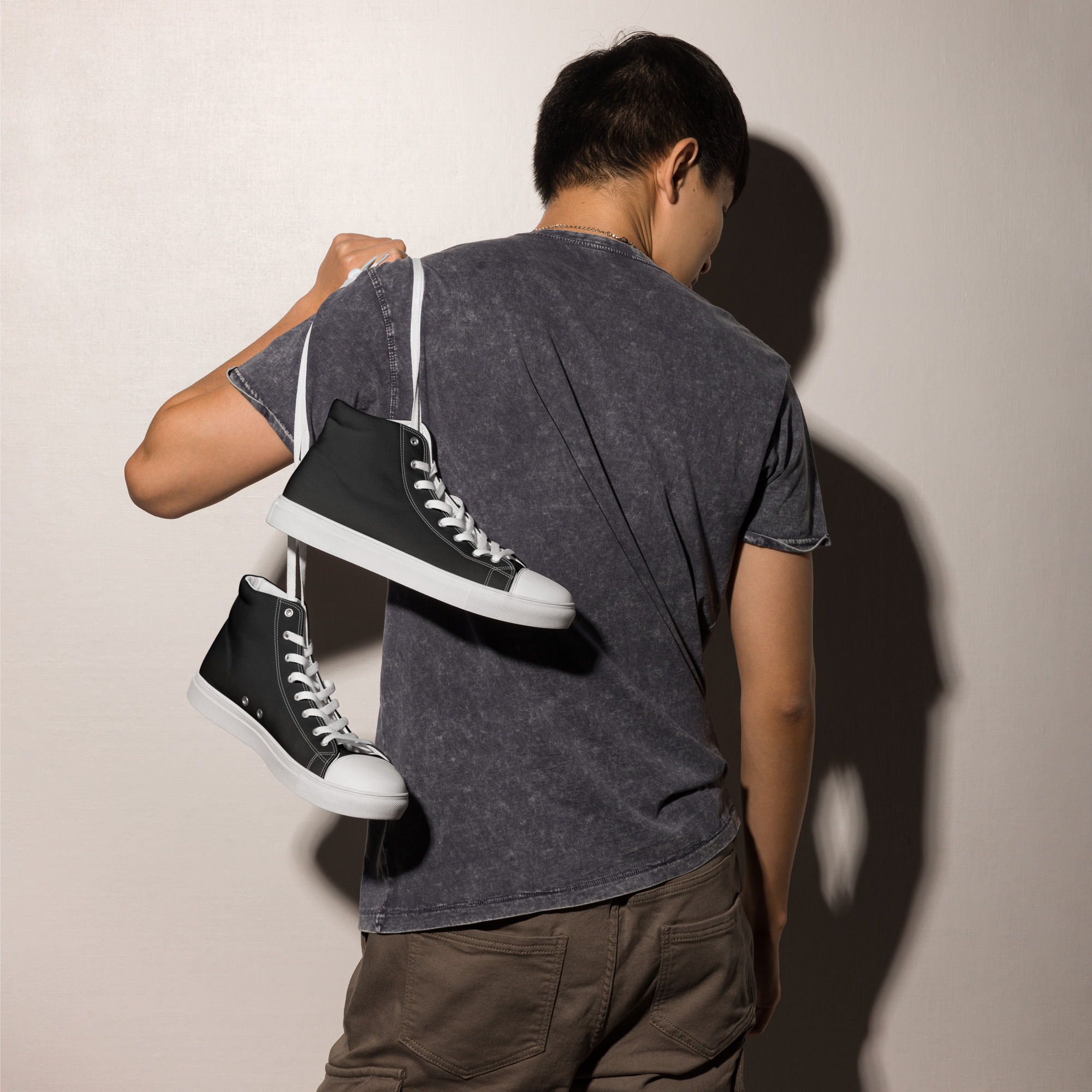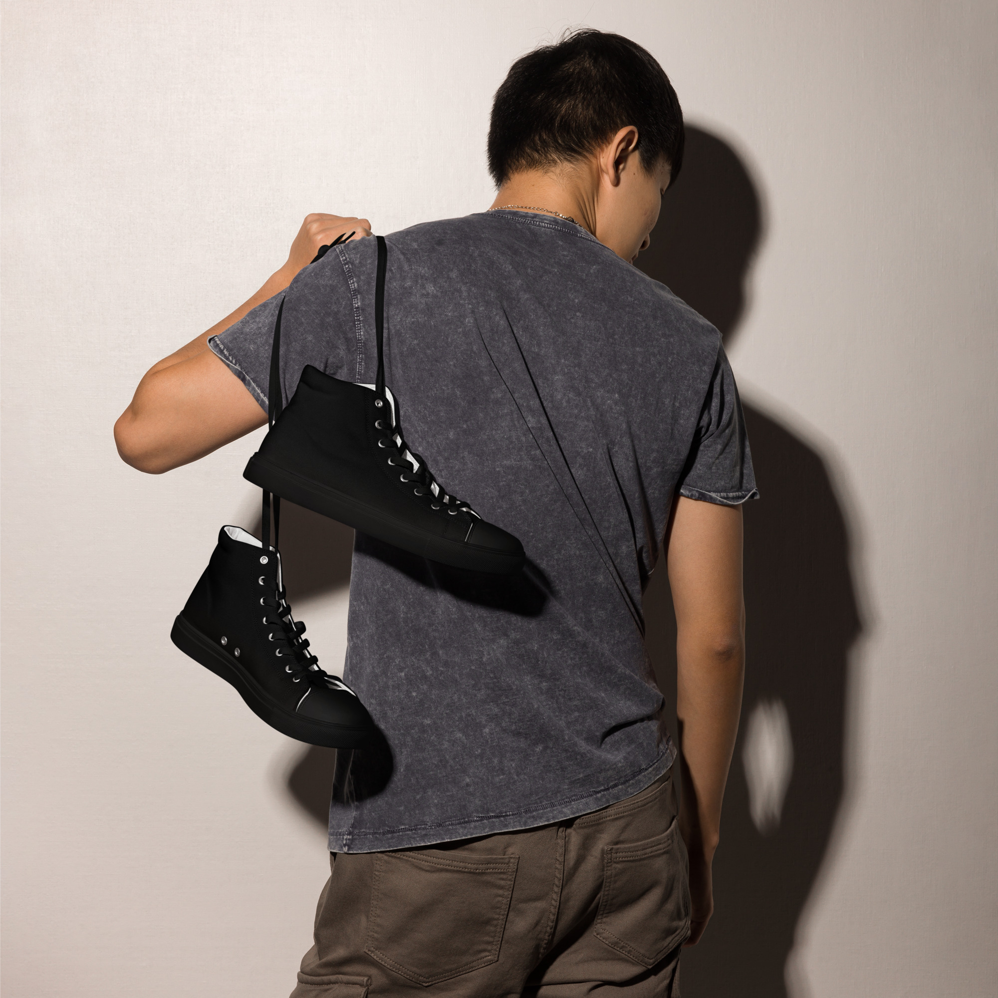 Eleve seu estilo com o tênis de lona cano alto preto, a escolha perfeita para o homem moderno que valoriza design atemporal e qualidade. – Lona resistente e premium, feita para durar. – Cano alto que oferece suporte e um toque de elegância. – Solado de borracha durável com excelente aderência. – Acabamento sofisticado em um preto impecável. Conforto e versatilidade a cada passo, ideal para compor looks casuais e urbanos com um toque de requinte no seu dia a dia. Material: lona e borracha. Fácil de limpar com pano úmido. Dê um upgrade no seu visual e caminhe com confiança!