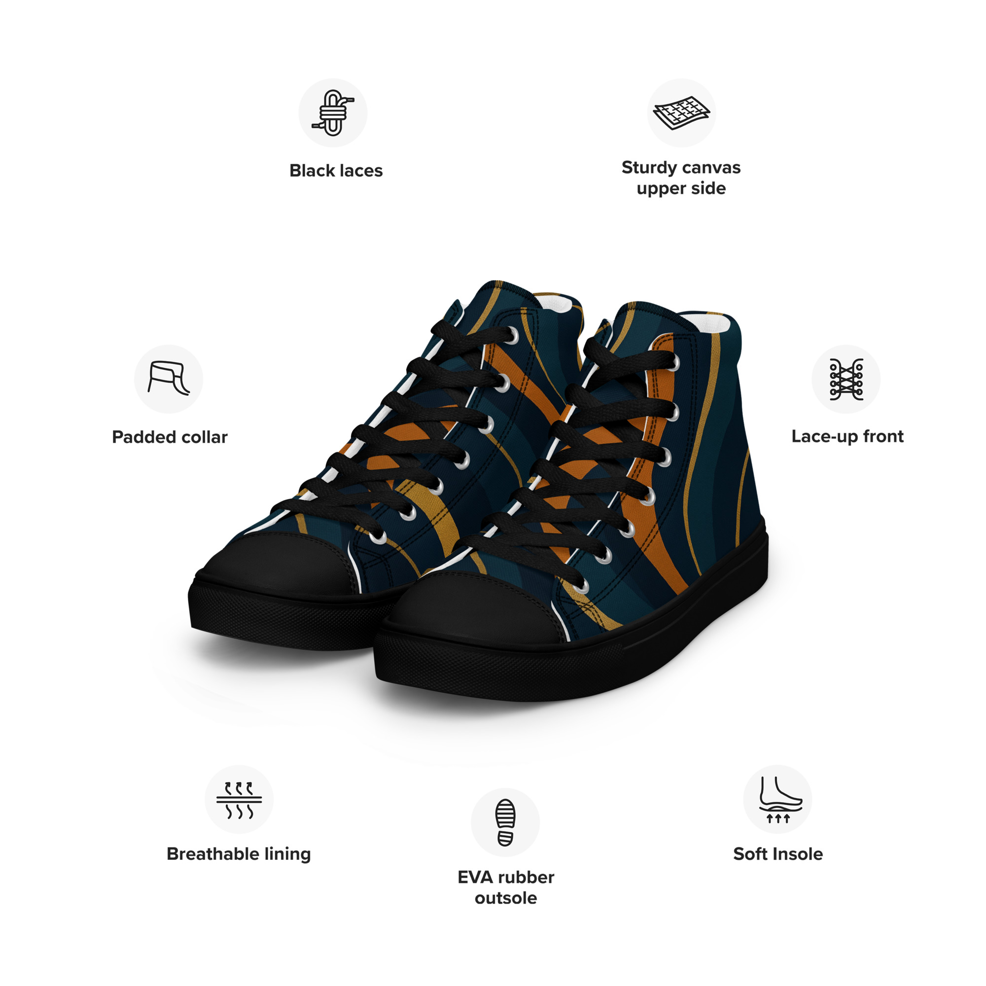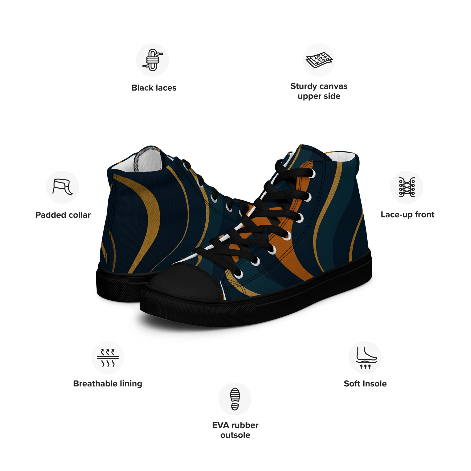 Tênis de lona de cano alto masculino – sofisticado