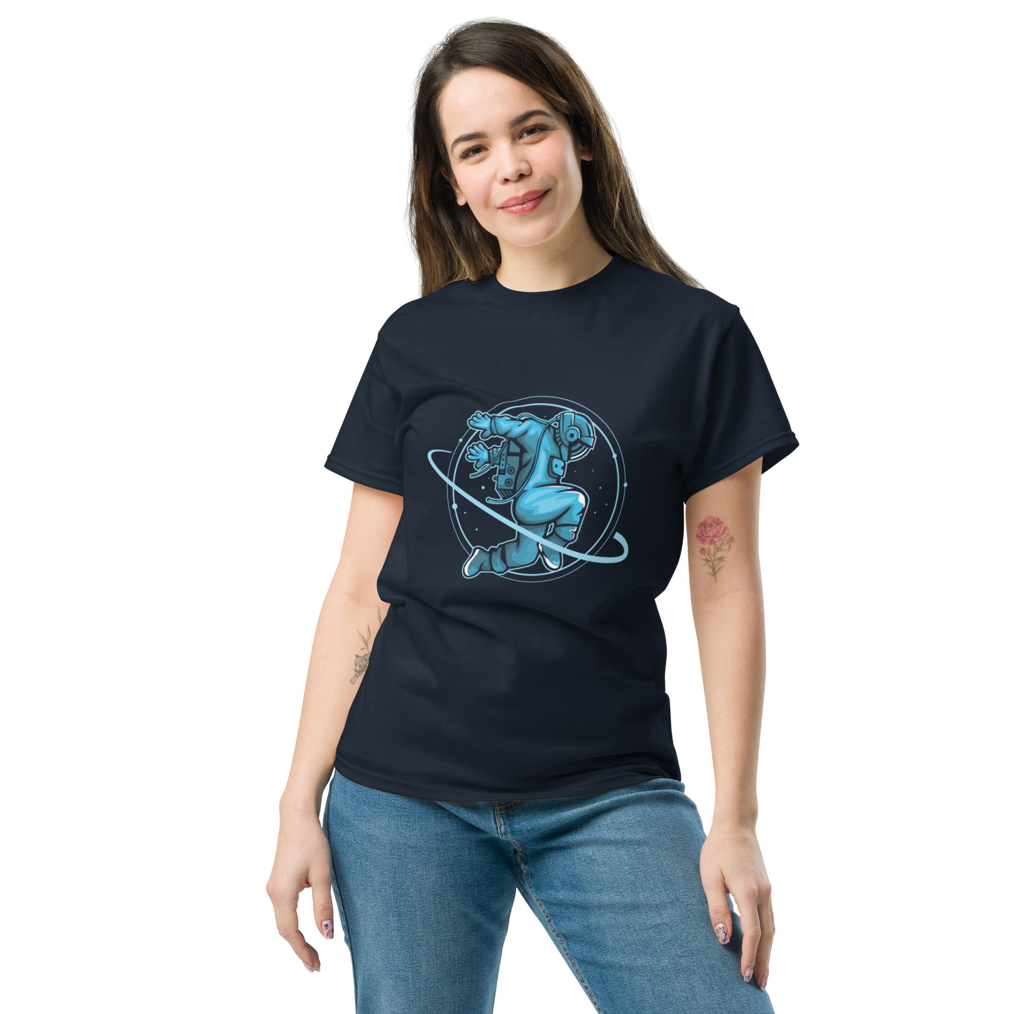 The 100% cotton unisex classic tee will help you land a more structured look. It sits nicely, maintains sharp lines around the edges, and goes perfectly with layered streetwear outfits. Plus, it’s extra trendy now!
