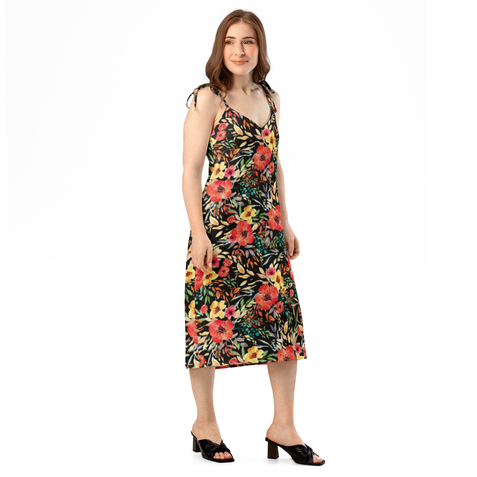 Leve, sedutor e muito elegante: perfeito tanto para festas ao ar livre durante o dia como para jantares especiais. Este vestido midi possui uma racha lateral que permite liberdade de movimentos, alças ajustáveis e um soutien incorporado para um estilo confortável e descomplicado. • 100% poliéster pesado (gasolina)