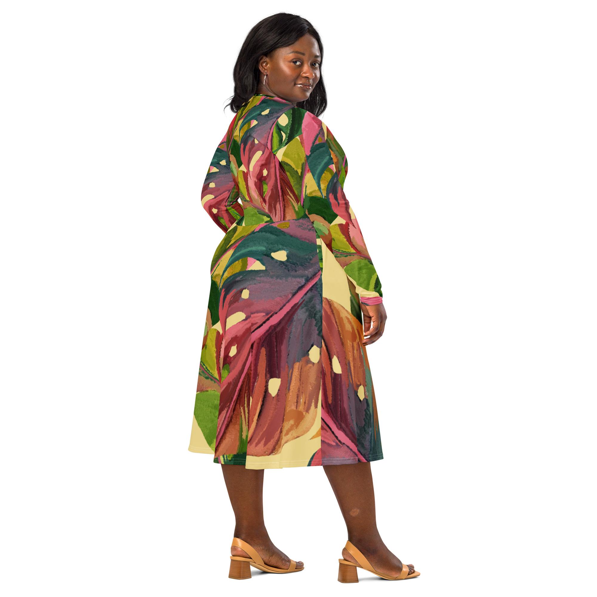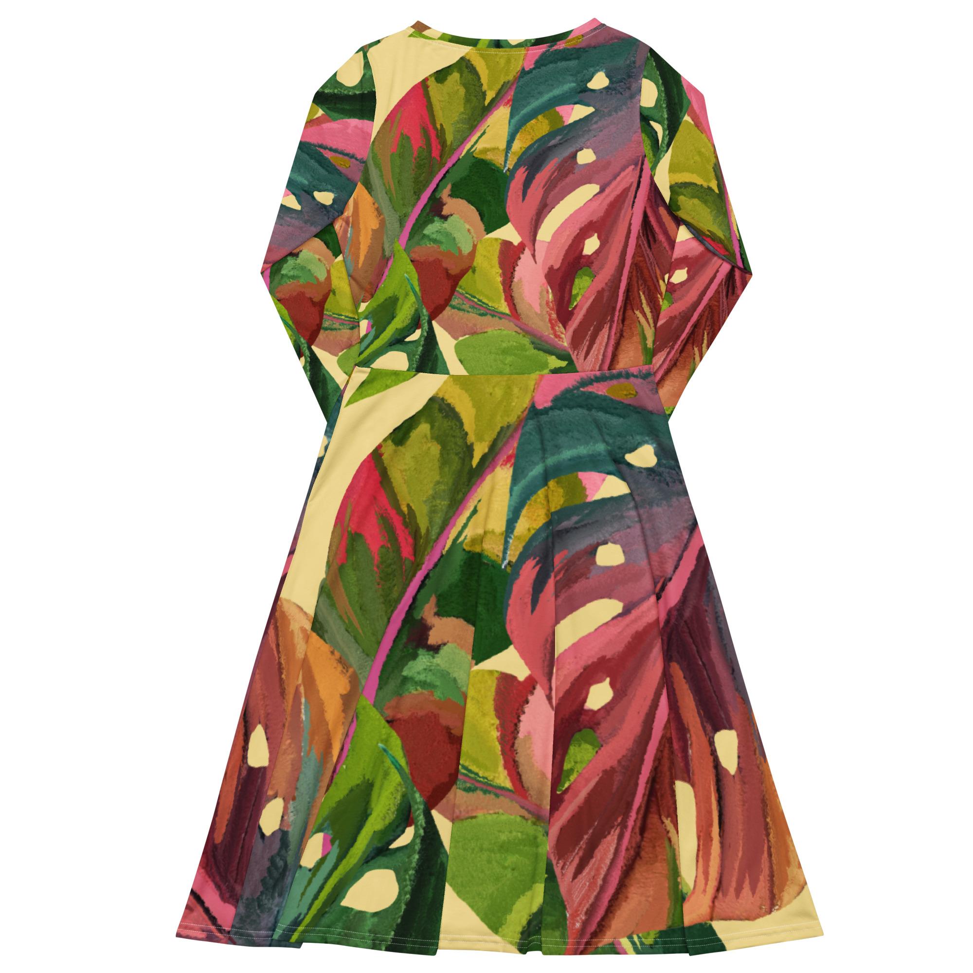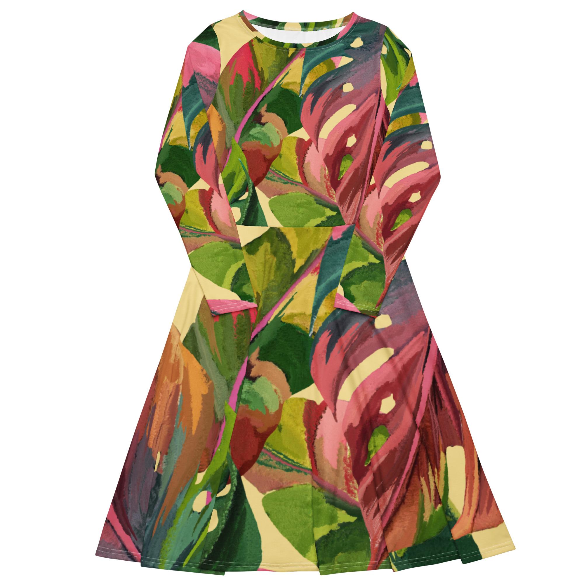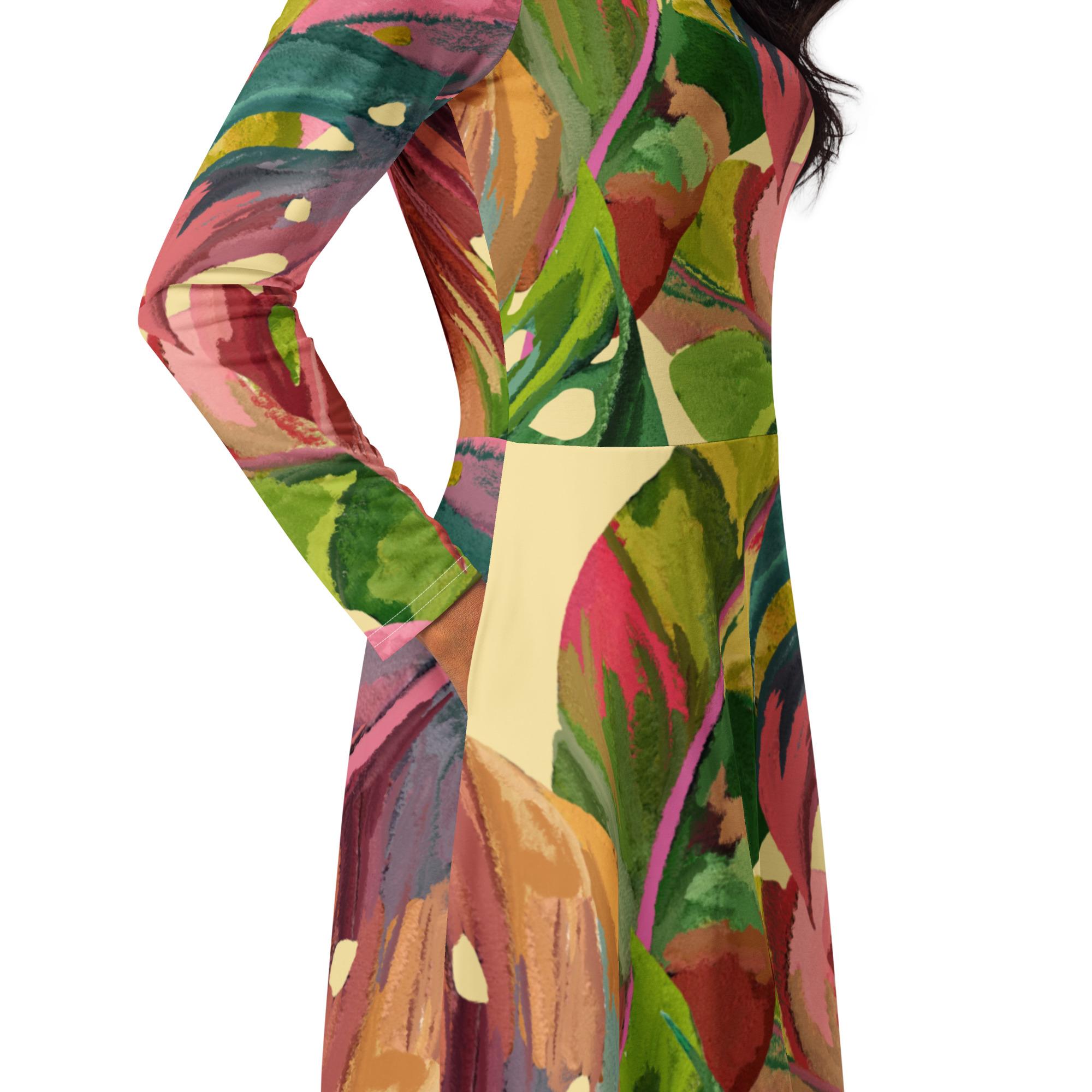 Vestido de manga comprida folhas coloridas