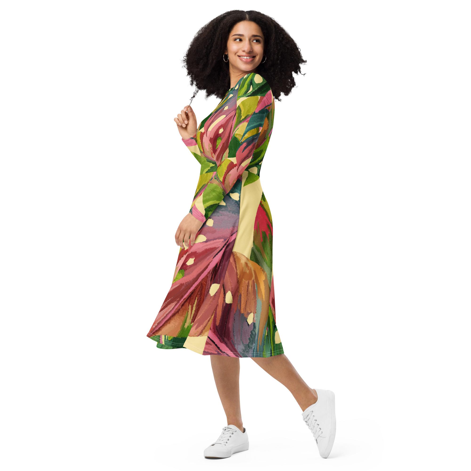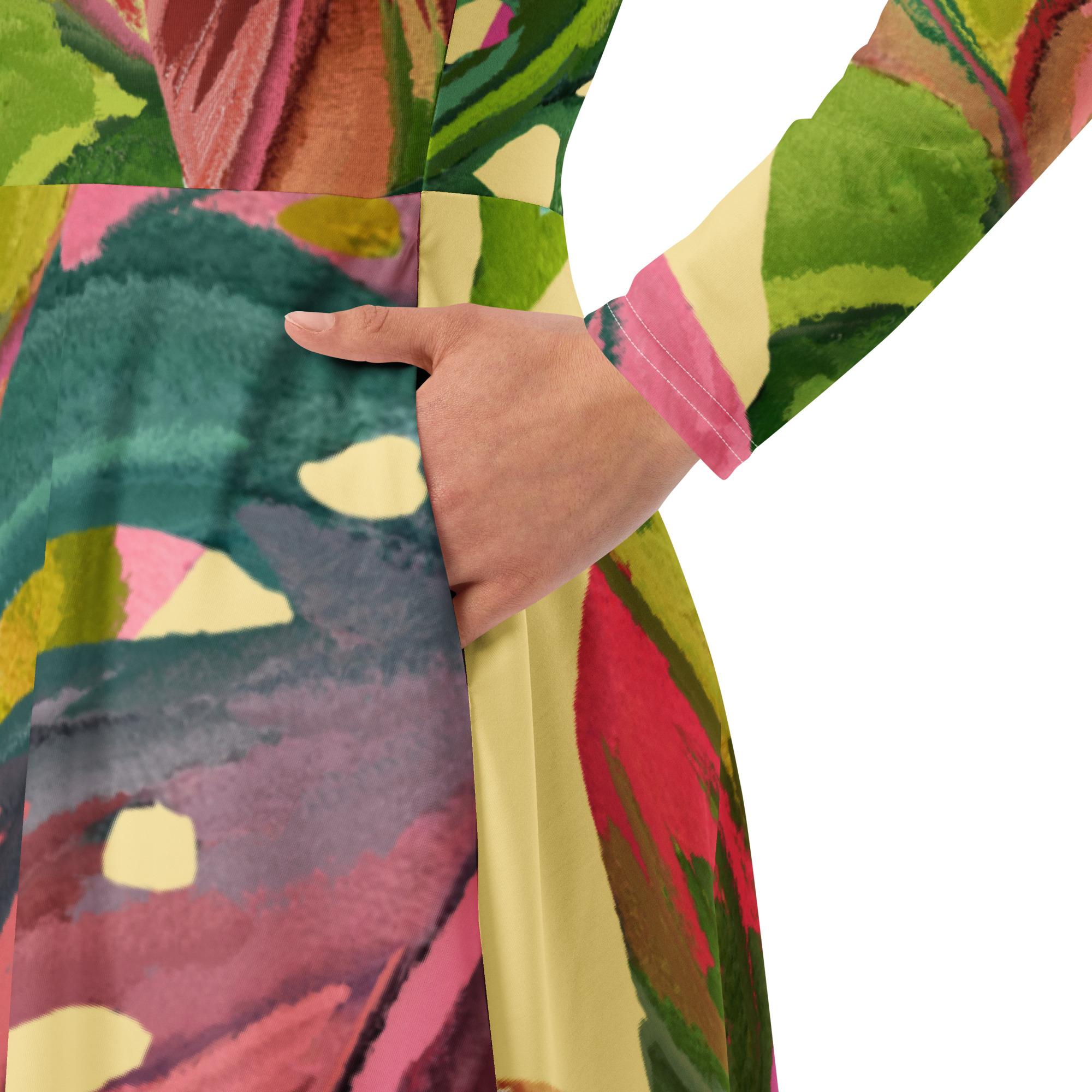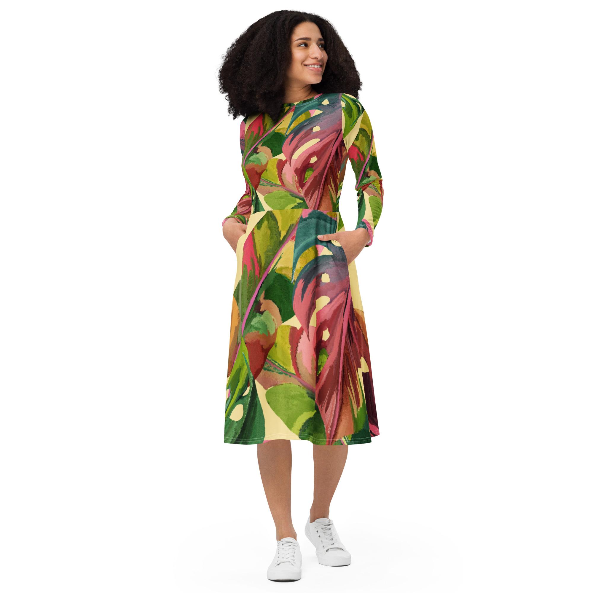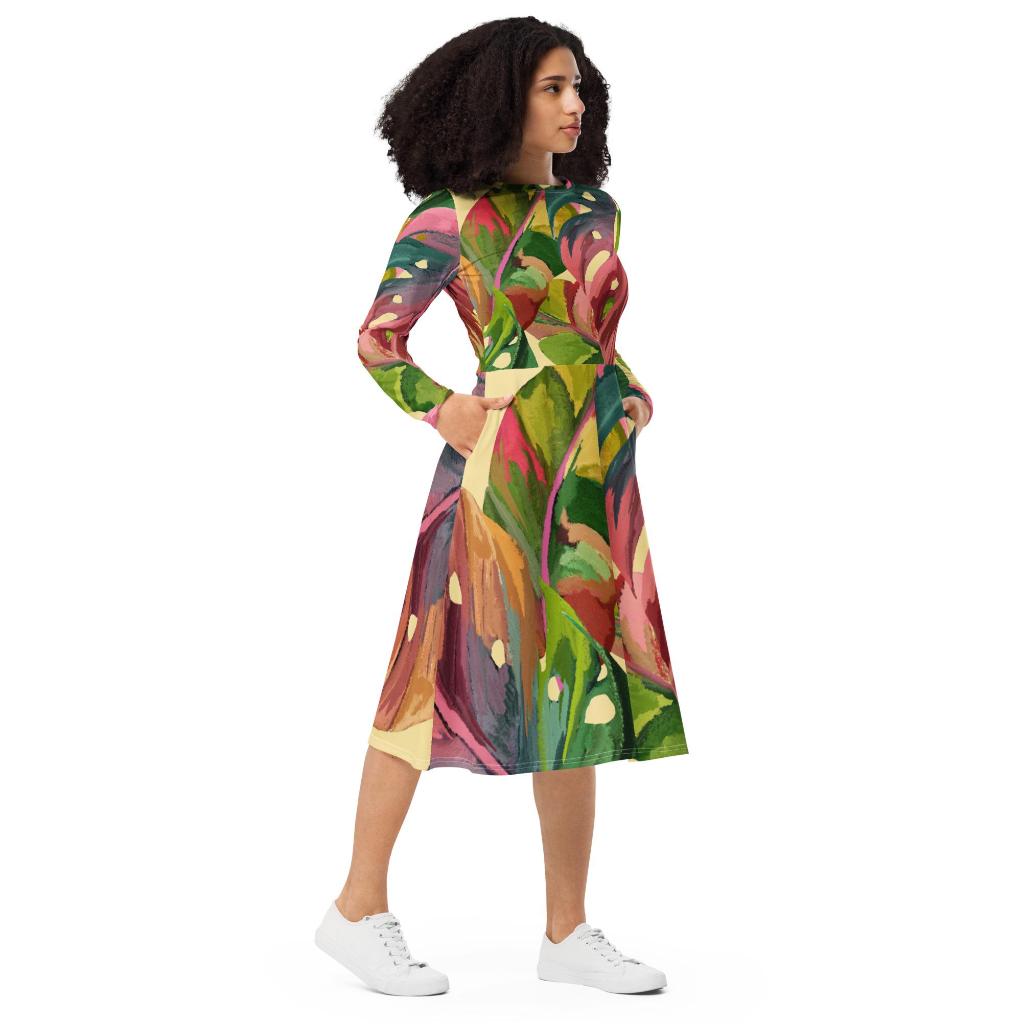 Vestido de manga comprida folhas coloridas