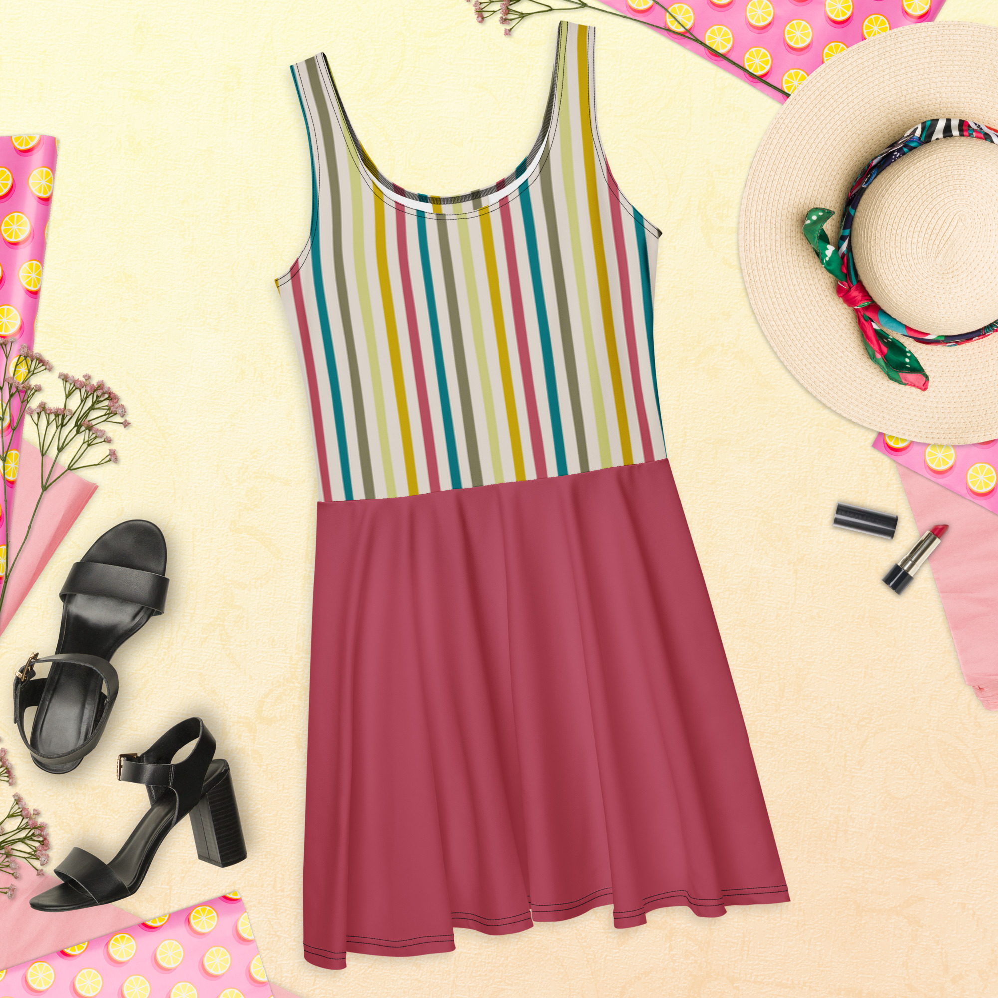Vestido Skater Linhas Coloridas