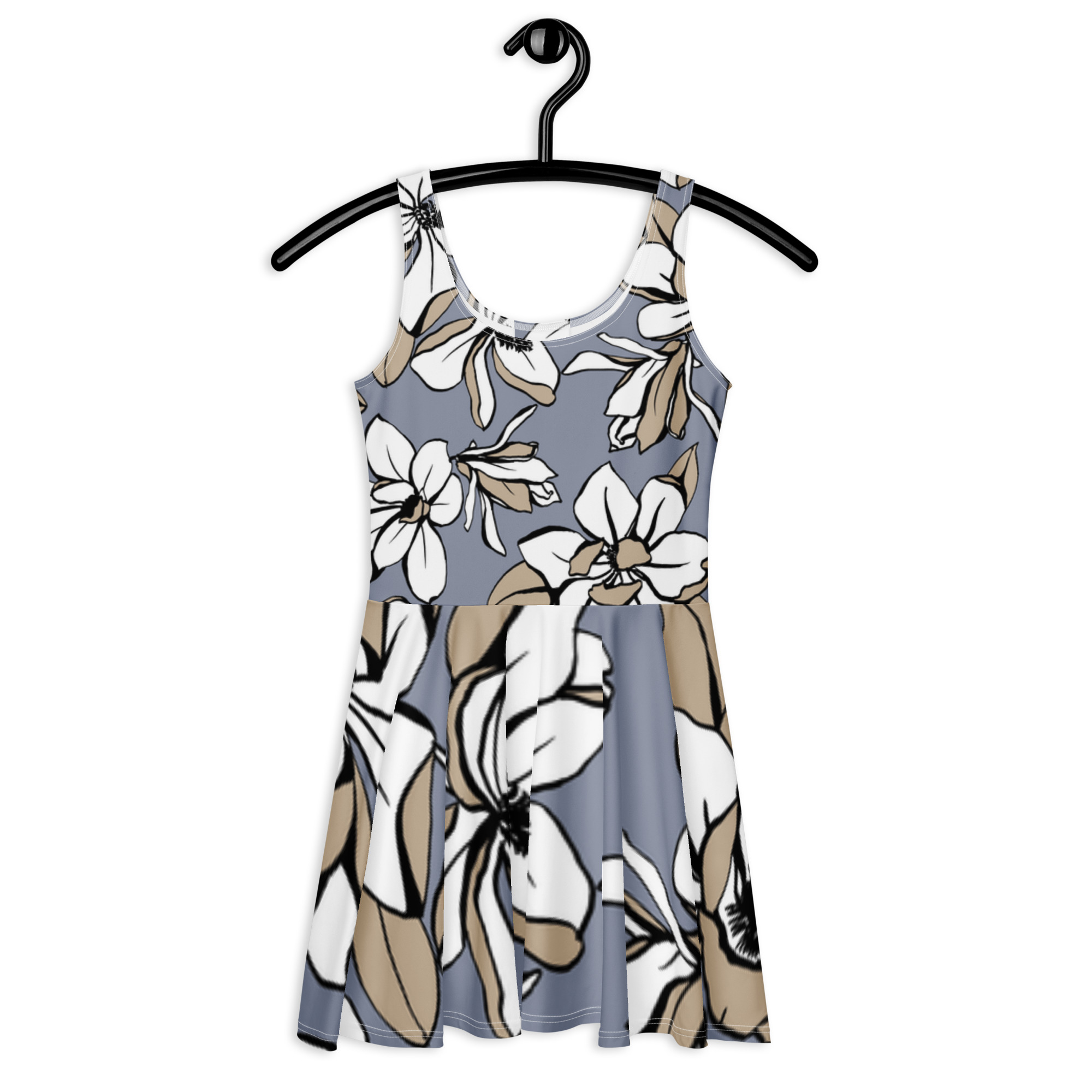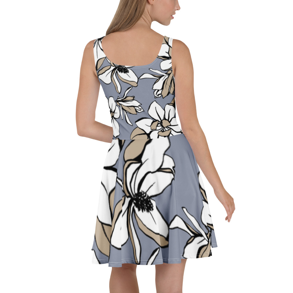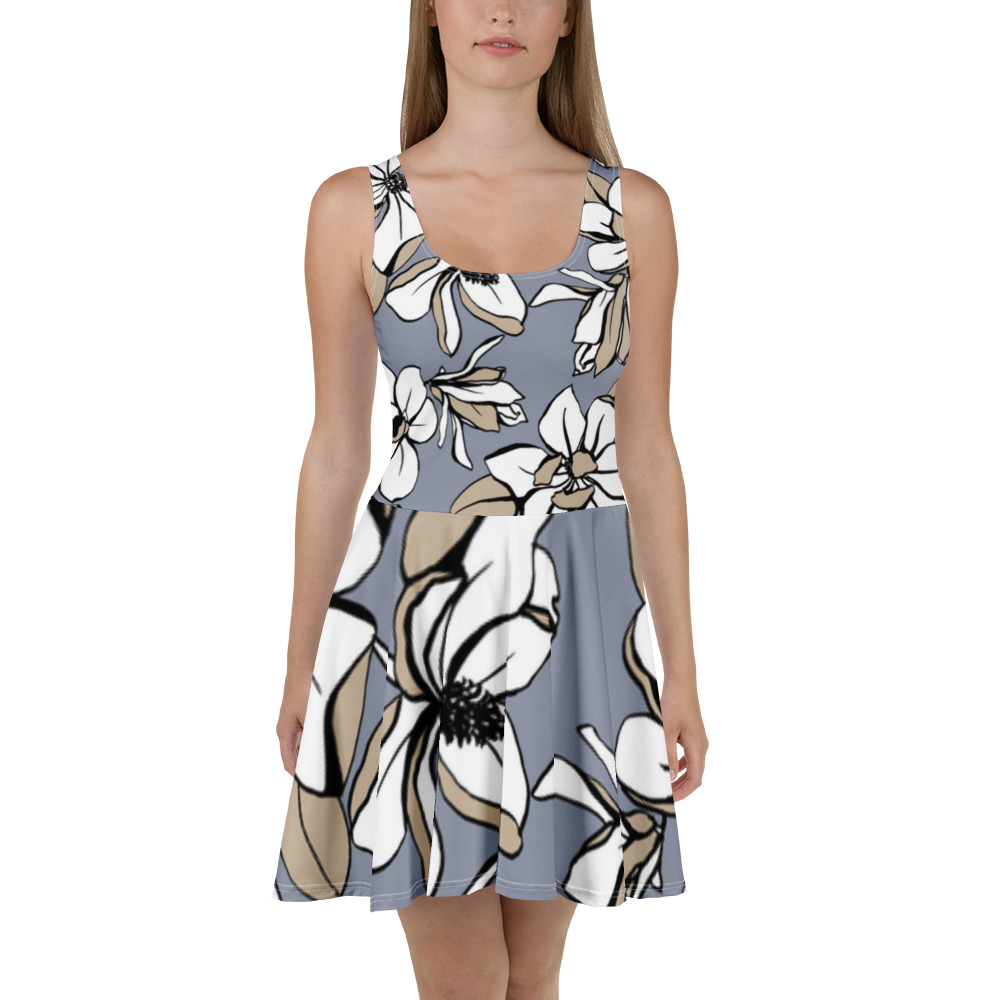Você vai arrasar na pista com esse vestido skater sem manga! O tecido macio e o corte largo dão um toque elegante que realça o design detalhado com uma bela vibe.