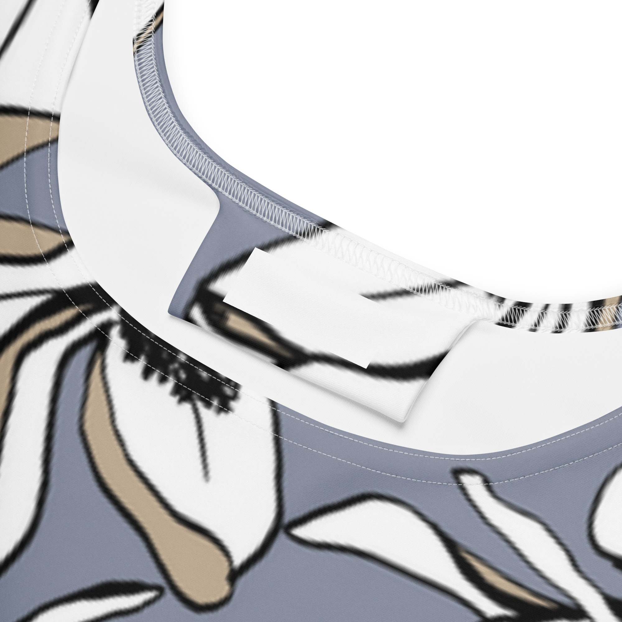 • Costuras em overloque, bainha com ponto de cobertura